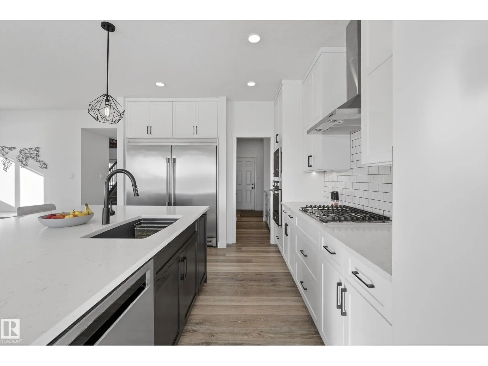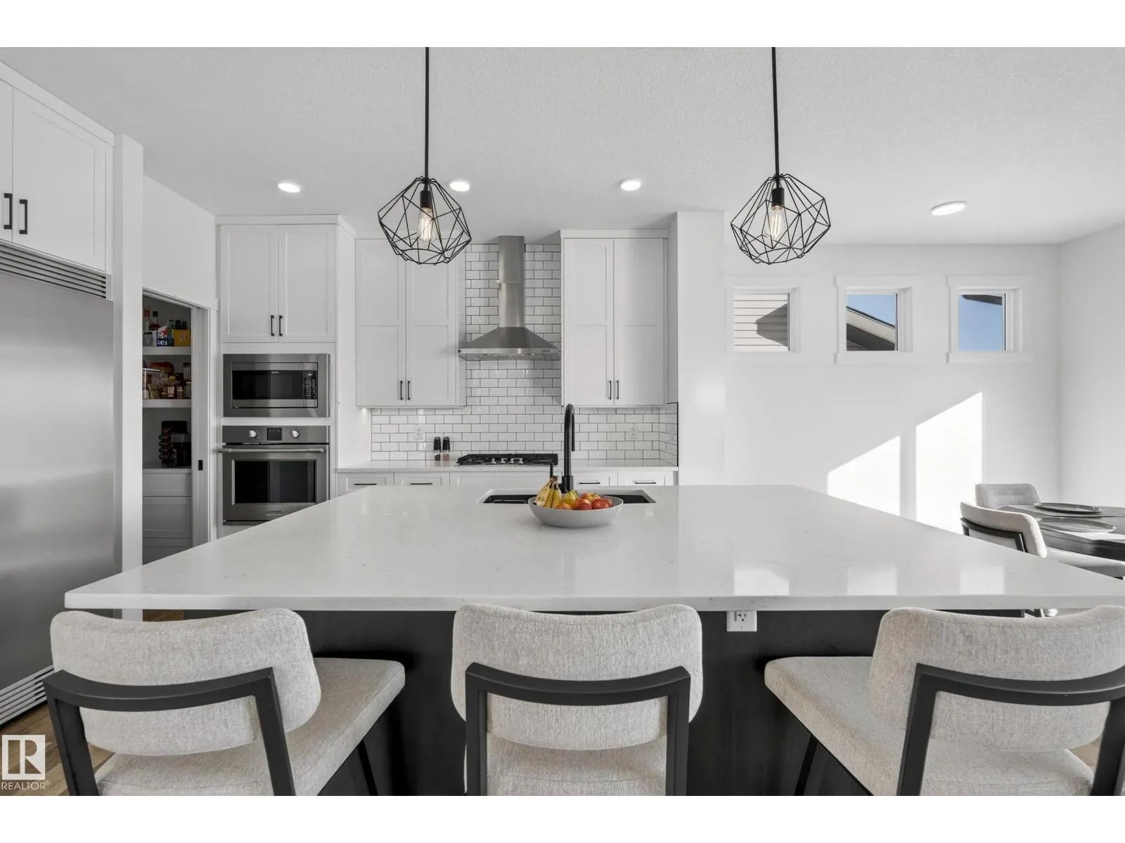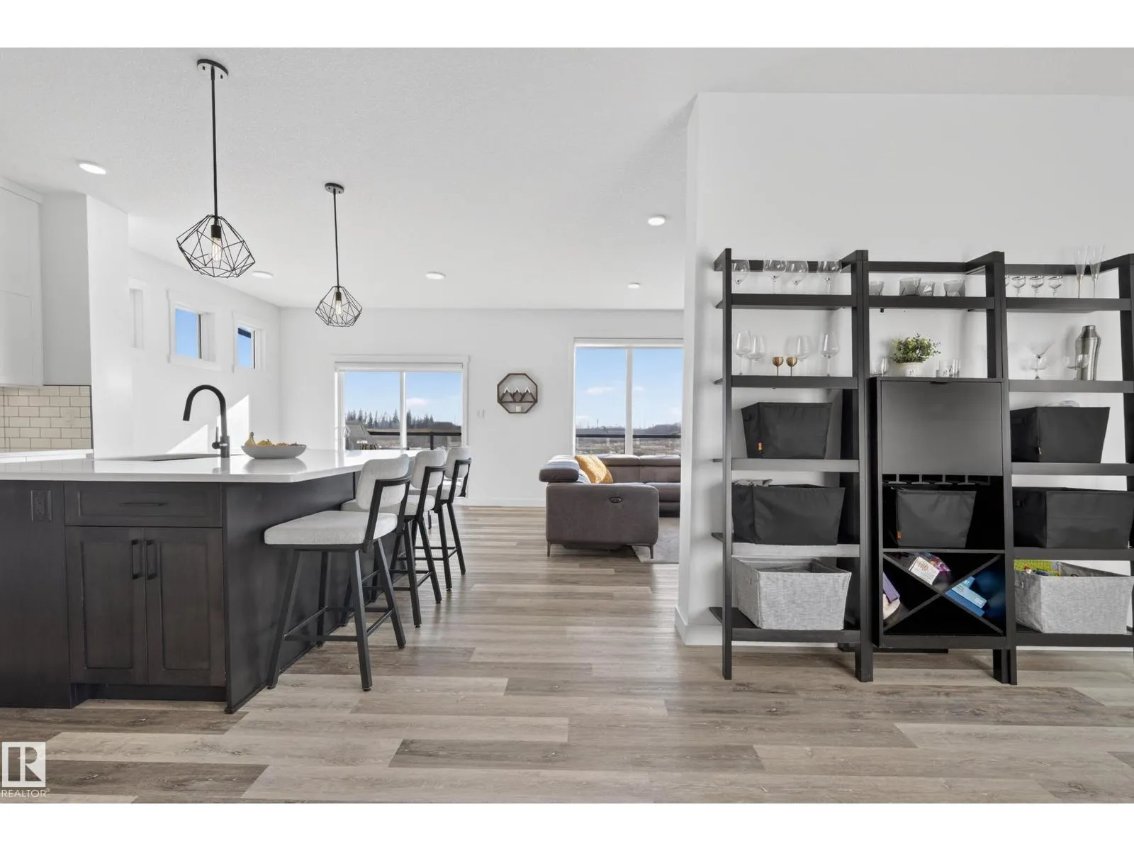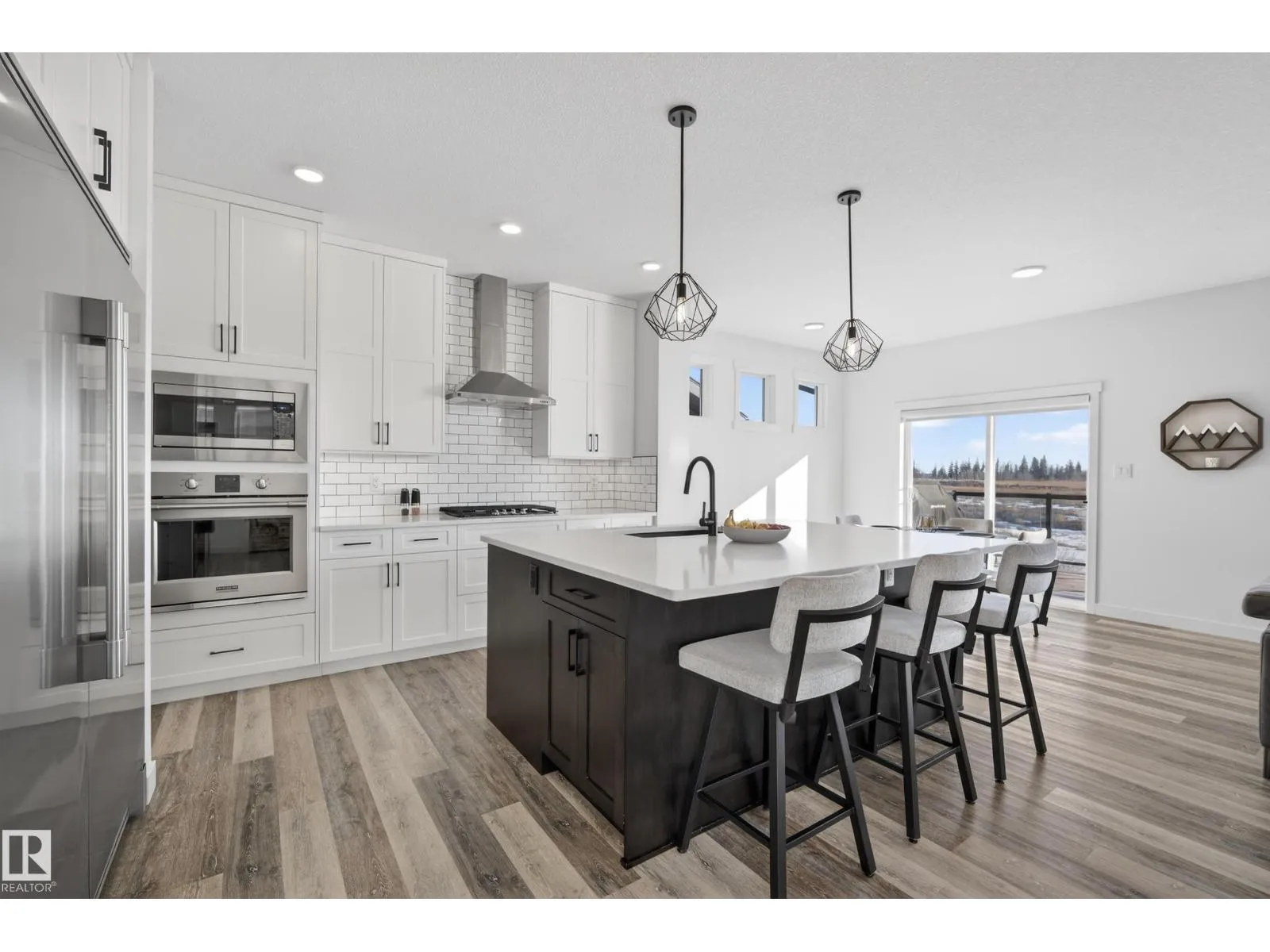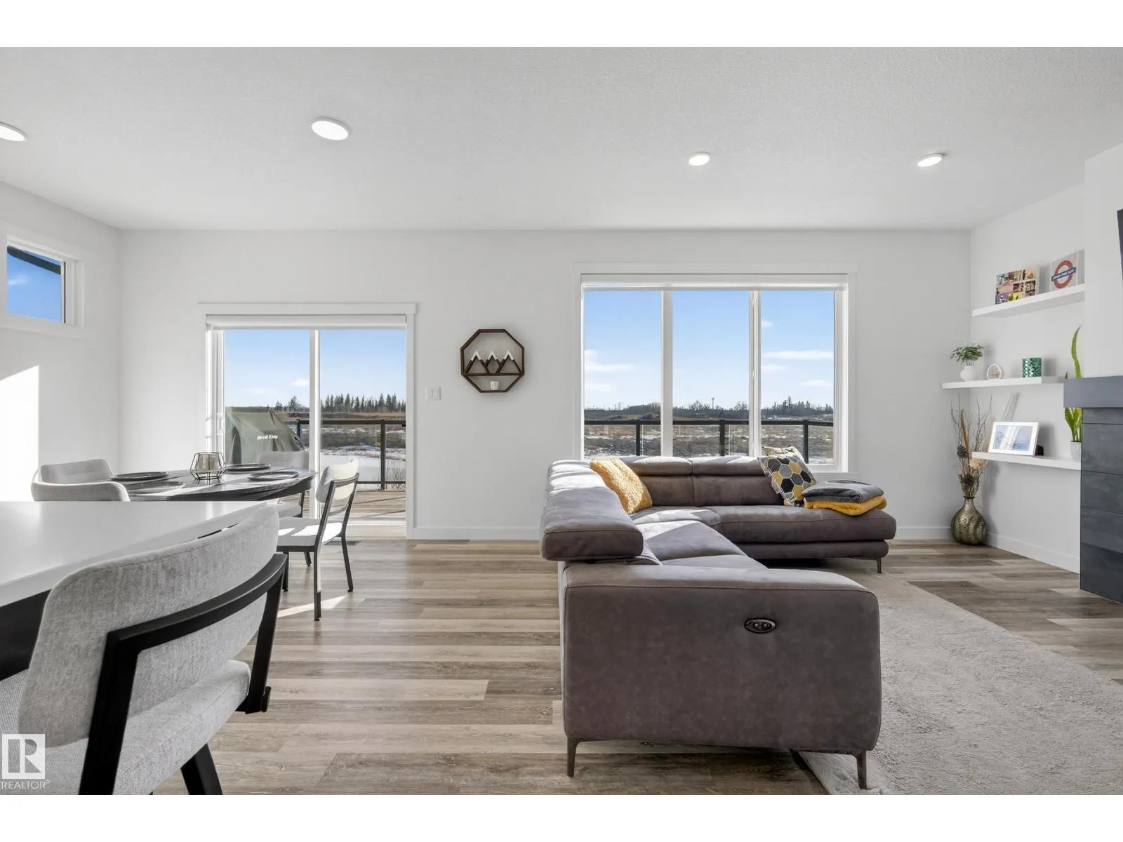 Rare pond-backing home on a quiet street with a walkout basement and double garage. The main floor features a beautiful kitchen with an oversized island, floor-to-ceiling cabinetry, butlerâs pantry, and massive 64-inch fridge/freezer. Just off kitchen is the impressive 10'x26' deck with glass railings, perfect for relaxing or entertaining while enjoying peaceful pond views and local wildlife. The inviting living room offers a cozy electric fireplace, while maple-stained railings lead upstairs to a bright vaulted bonus room. The upper level includes upgraded bathrooms with tile accents, quartz countertops, and floating cabinetry with under-cabinet lighting. The walkout basement with 9-ft ceilings adds a bedroom and great living space with a 90-inch projector screen for movie nights. Step outside to a 260 sq ft concrete patio with electrical roughed in for future hot tub and exterior stairs from the deck. Energy saving features include 6.2kW of solar panels and upgraded high-efficiency furnace and AC unit. (id:27476)