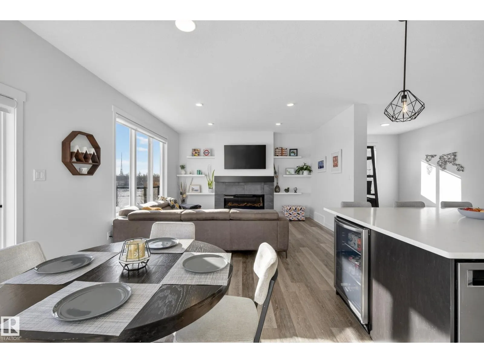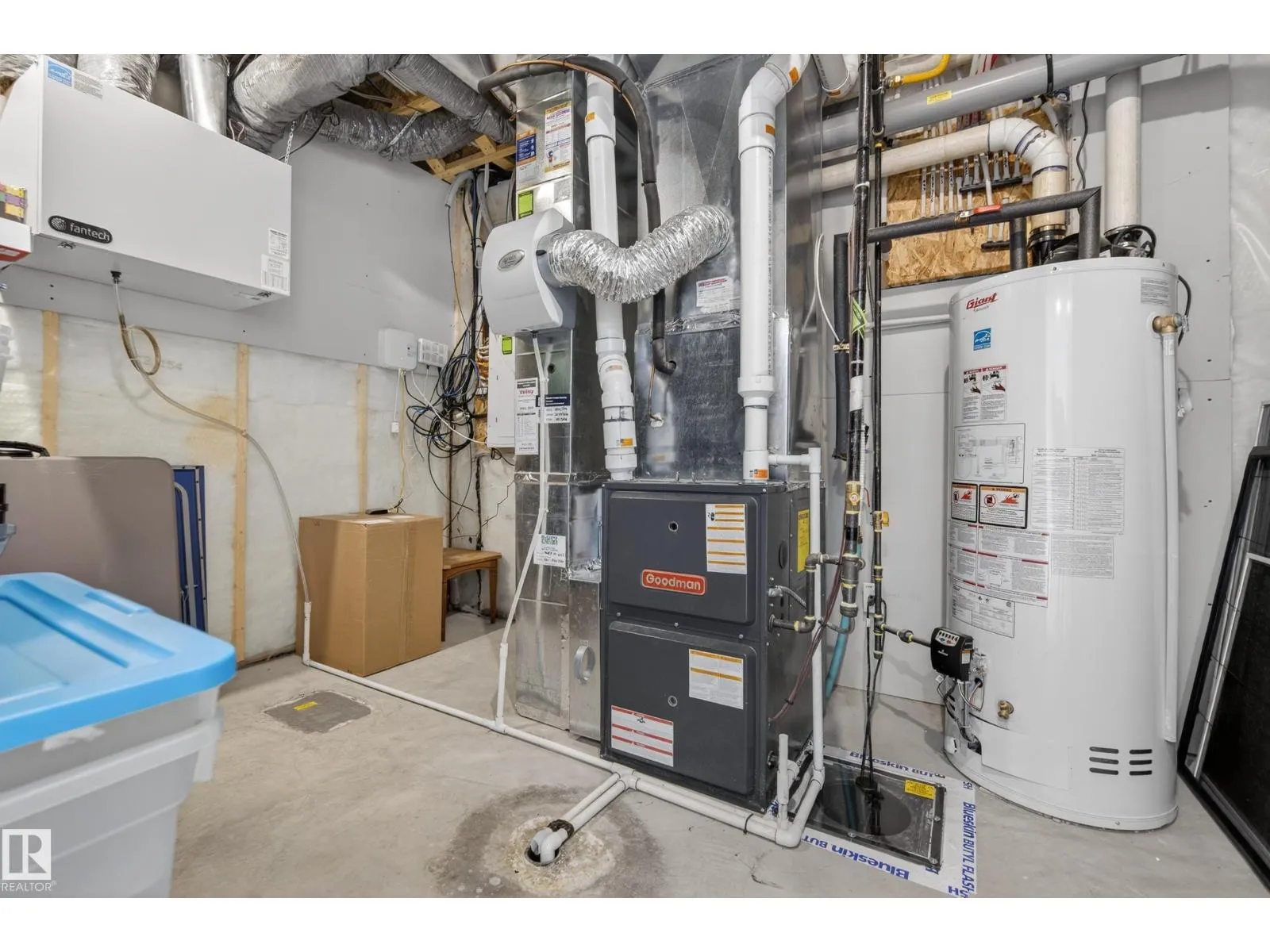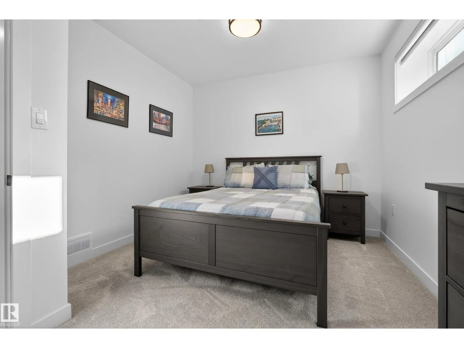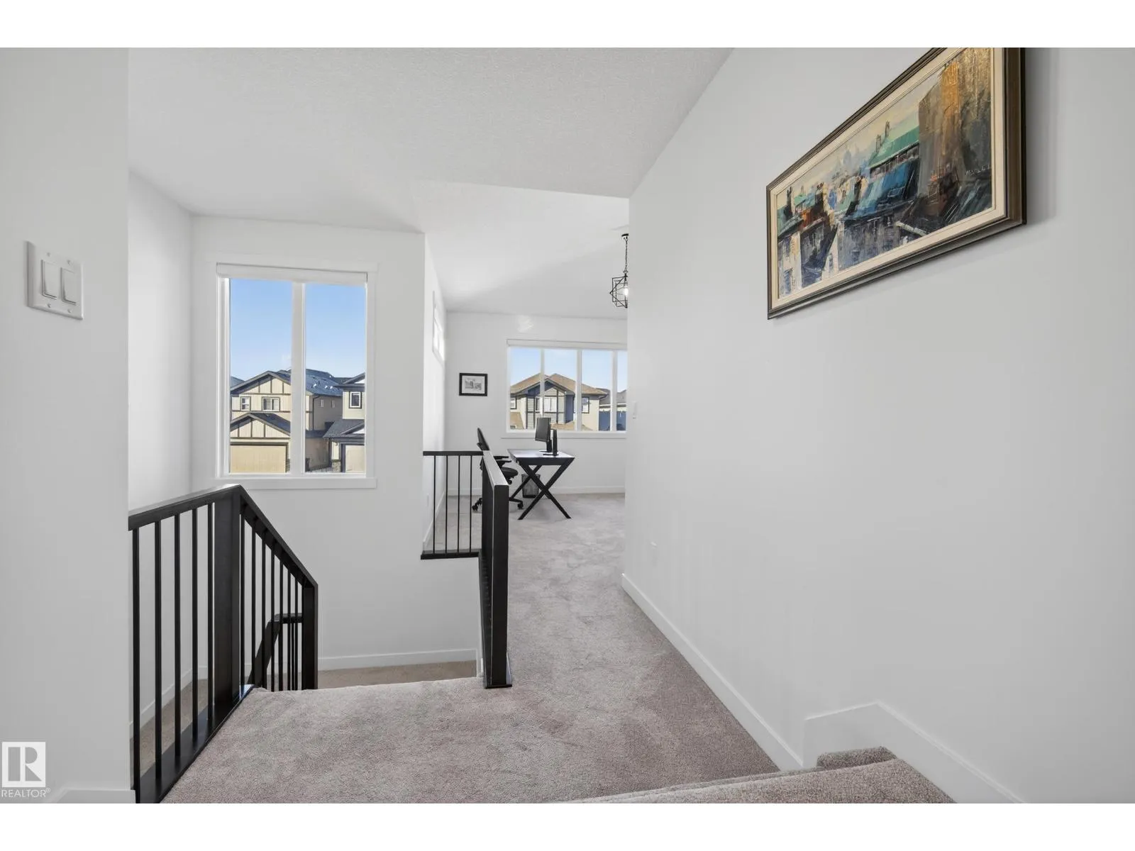 Rare pond-backing home on a quiet street with a walkout basement and double garage. The main floor features a beautiful kitchen with an oversized island, floor-to-ceiling cabinetry, butlerâs pantry, and massive 64-inch fridge/freezer. Just off kitchen is the impressive 10'x26' deck with glass railings, perfect for relaxing or entertaining while enjoying peaceful pond views and local wildlife. The inviting living room offers a cozy electric fireplace, while maple-stained railings lead upstairs to a bright vaulted bonus room. The upper level includes upgraded bathrooms with tile accents, quartz countertops, and floating cabinetry with under-cabinet lighting. The walkout basement with 9-ft ceilings adds a bedroom and great living space with a 90-inch projector screen for movie nights. Step outside to a 260 sq ft concrete patio with electrical roughed in for future hot tub and exterior stairs from the deck. Energy saving features include 6.2kW of solar panels and upgraded high-efficiency furnace and AC unit. (id:27476)