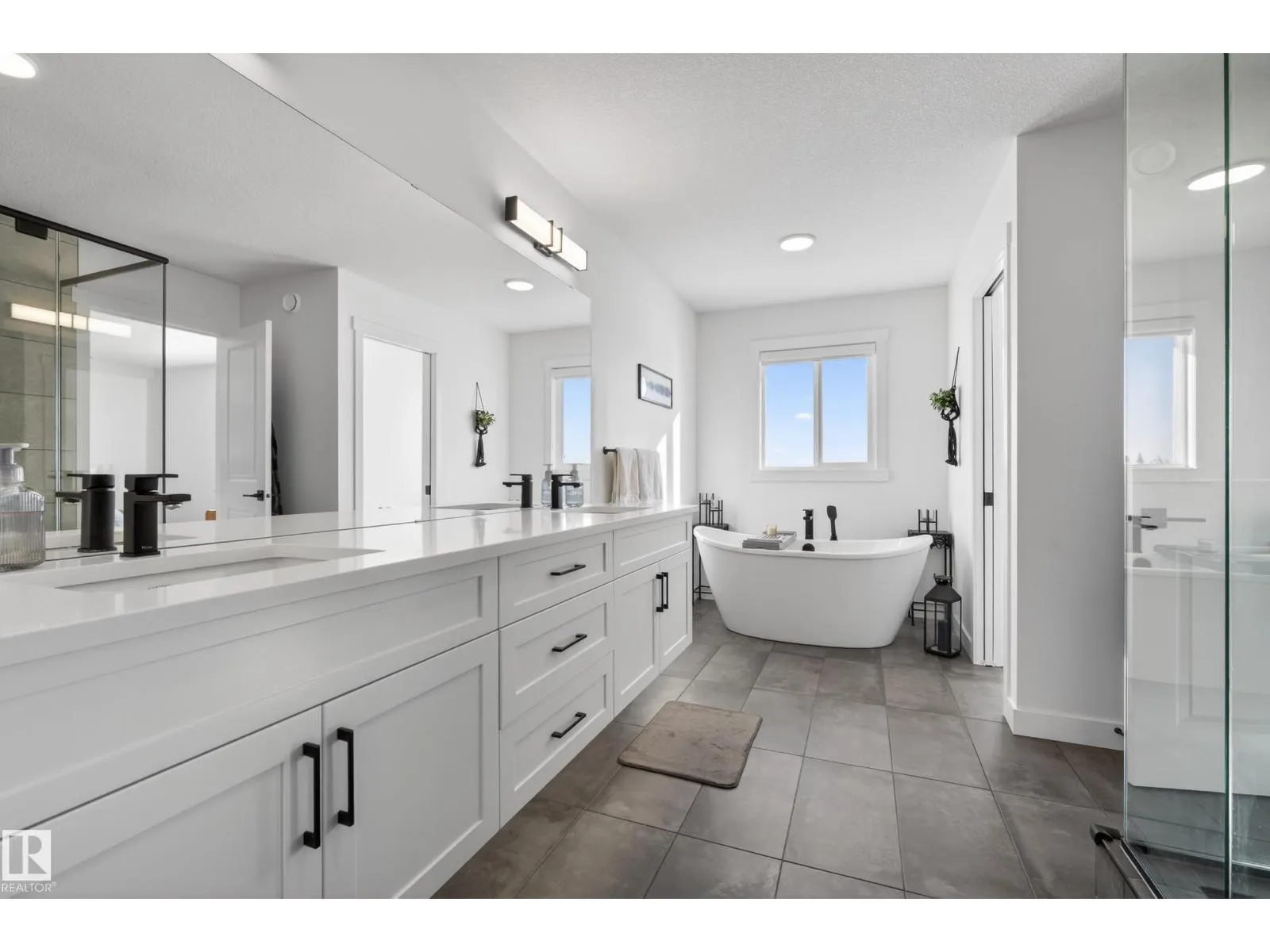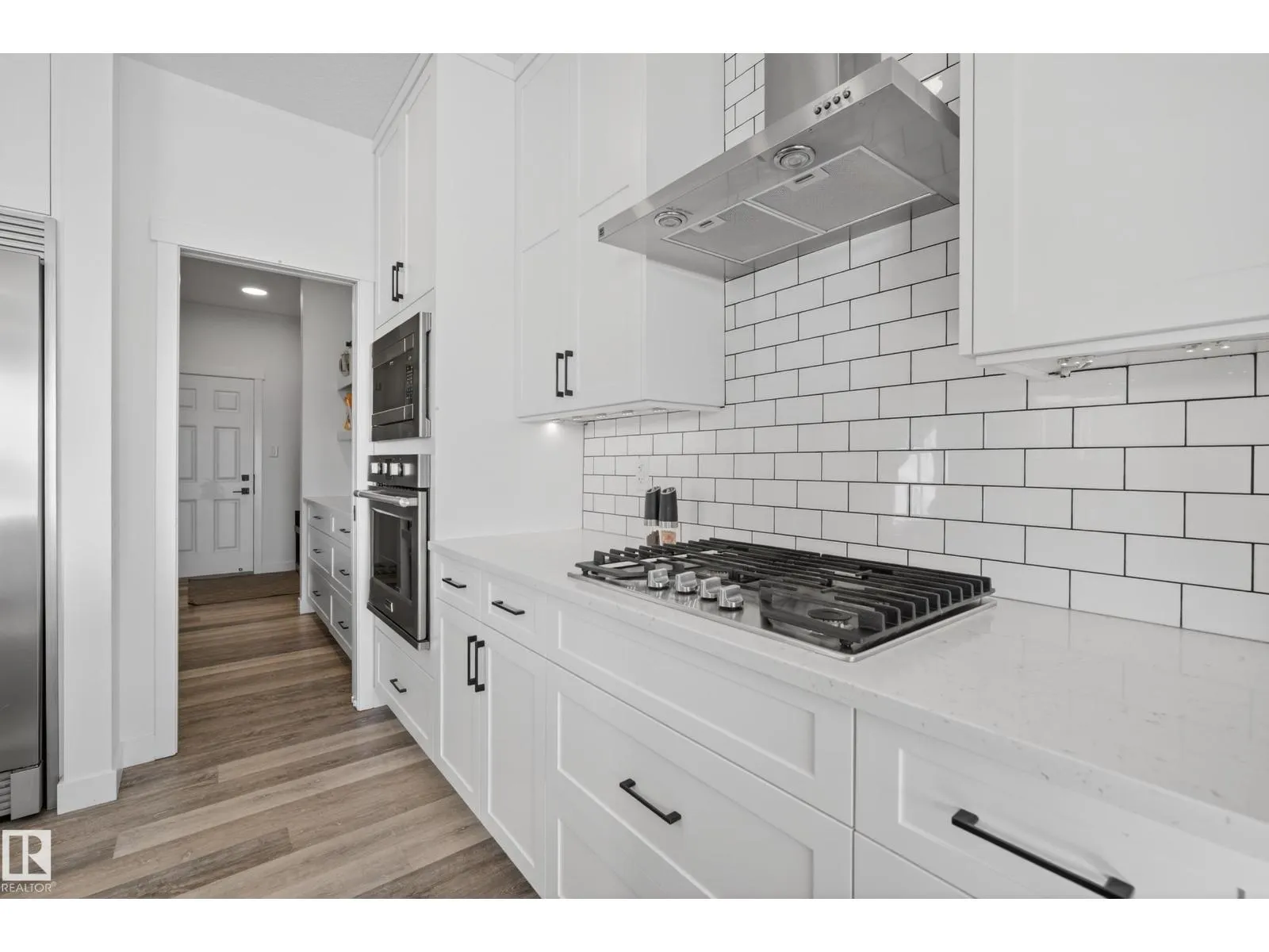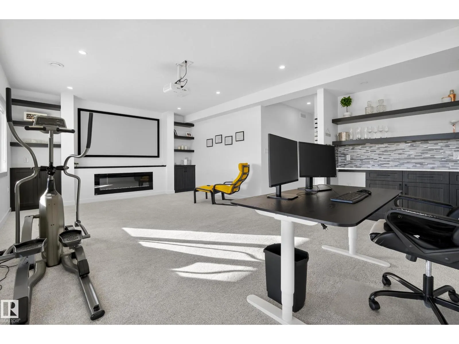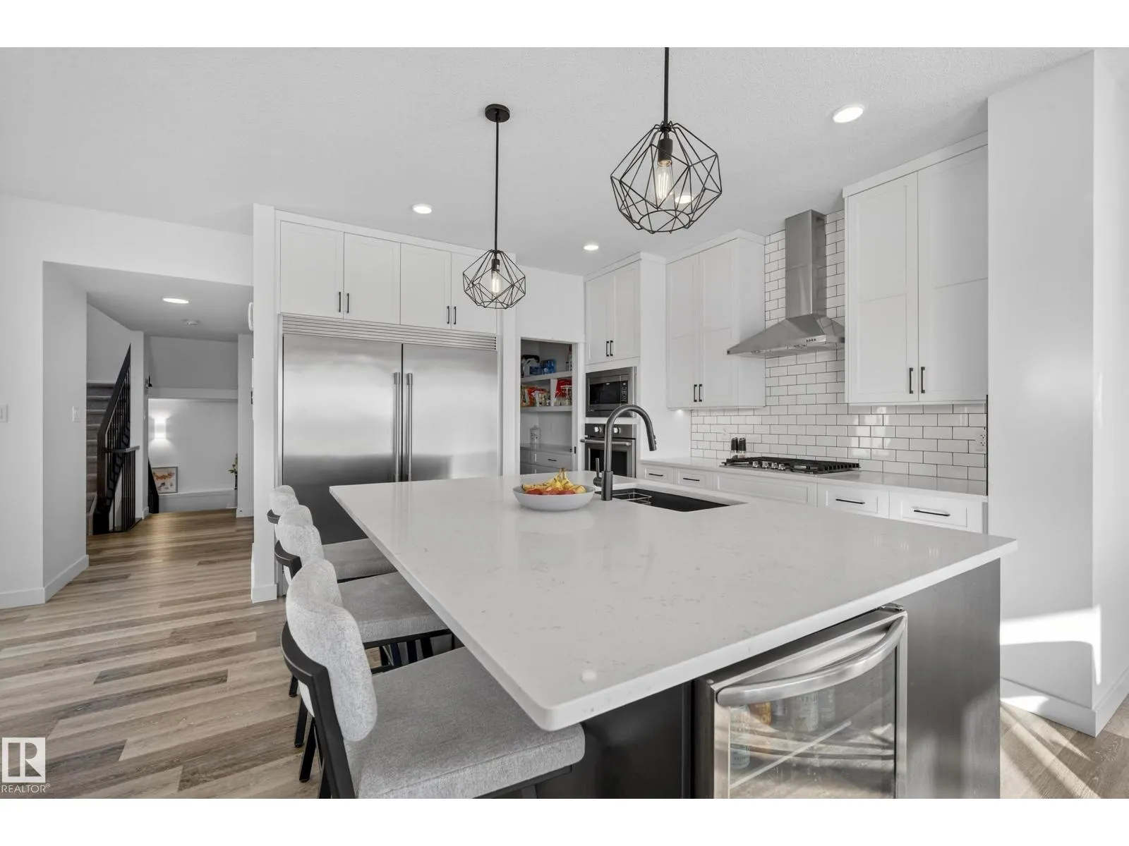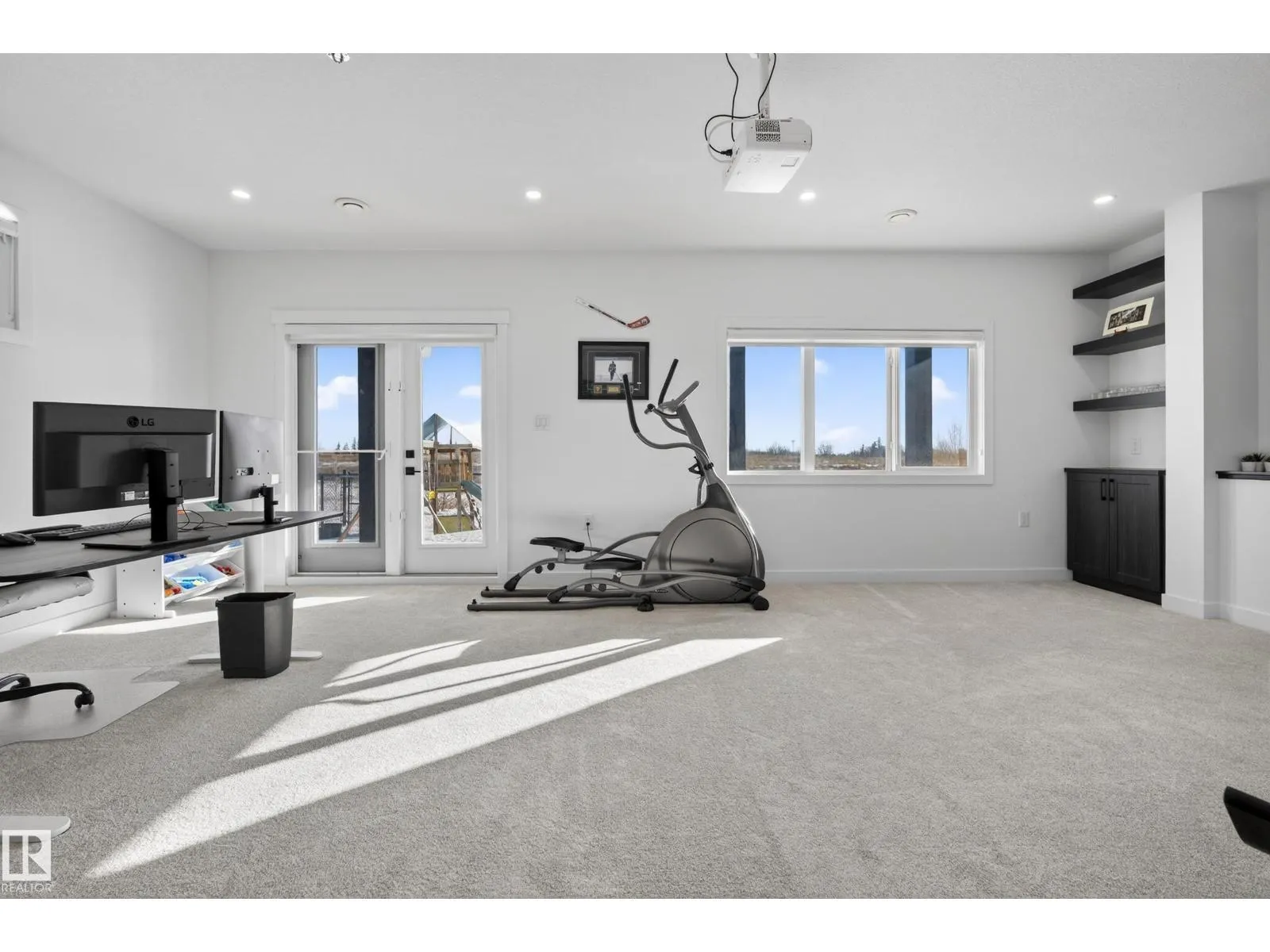 Rare pond-backing home on a quiet street with a walkout basement and double garage. The main floor features a beautiful kitchen with an oversized island, floor-to-ceiling cabinetry, butlerâs pantry, and massive 64-inch fridge/freezer. Just off kitchen is the impressive 10'x26' deck with glass railings, perfect for relaxing or entertaining while enjoying peaceful pond views and local wildlife. The inviting living room offers a cozy electric fireplace, while maple-stained railings lead upstairs to a bright vaulted bonus room. The upper level includes upgraded bathrooms with tile accents, quartz countertops, and floating cabinetry with under-cabinet lighting. The walkout basement with 9-ft ceilings adds a bedroom and great living space with a 90-inch projector screen for movie nights. Step outside to a 260 sq ft concrete patio with electrical roughed in for future hot tub and exterior stairs from the deck. Energy saving features include 6.2kW of solar panels and upgraded high-efficiency furnace and AC unit. (id:27476)