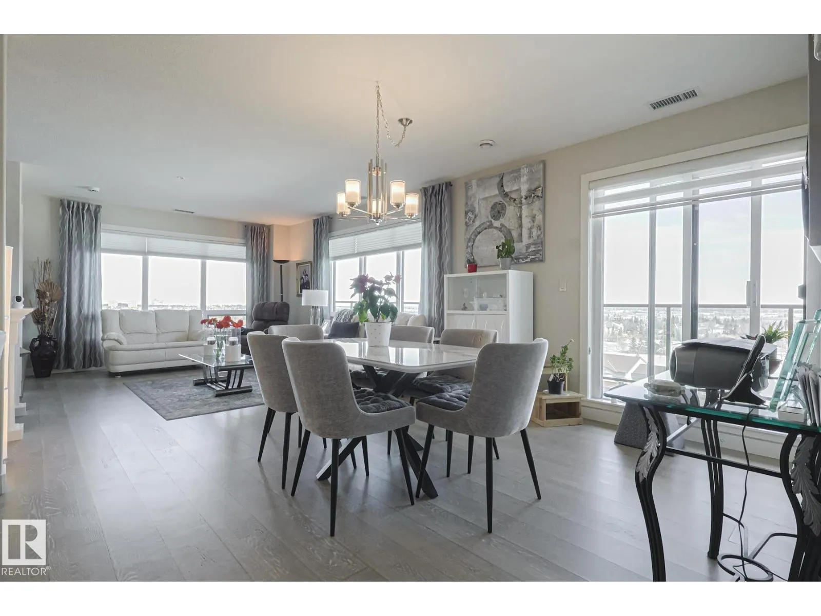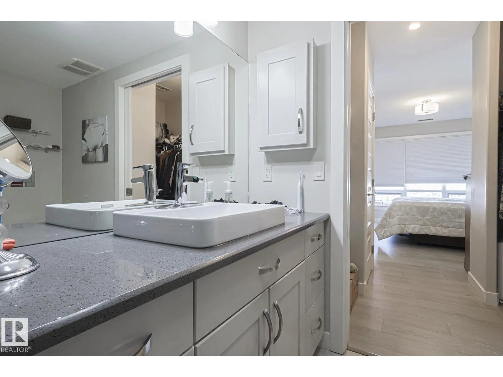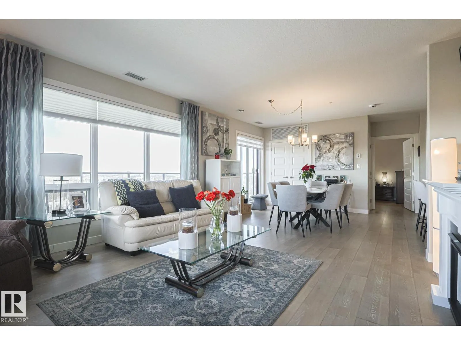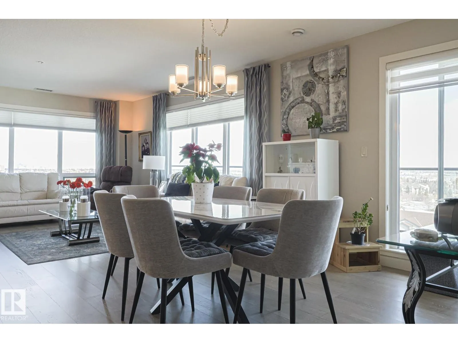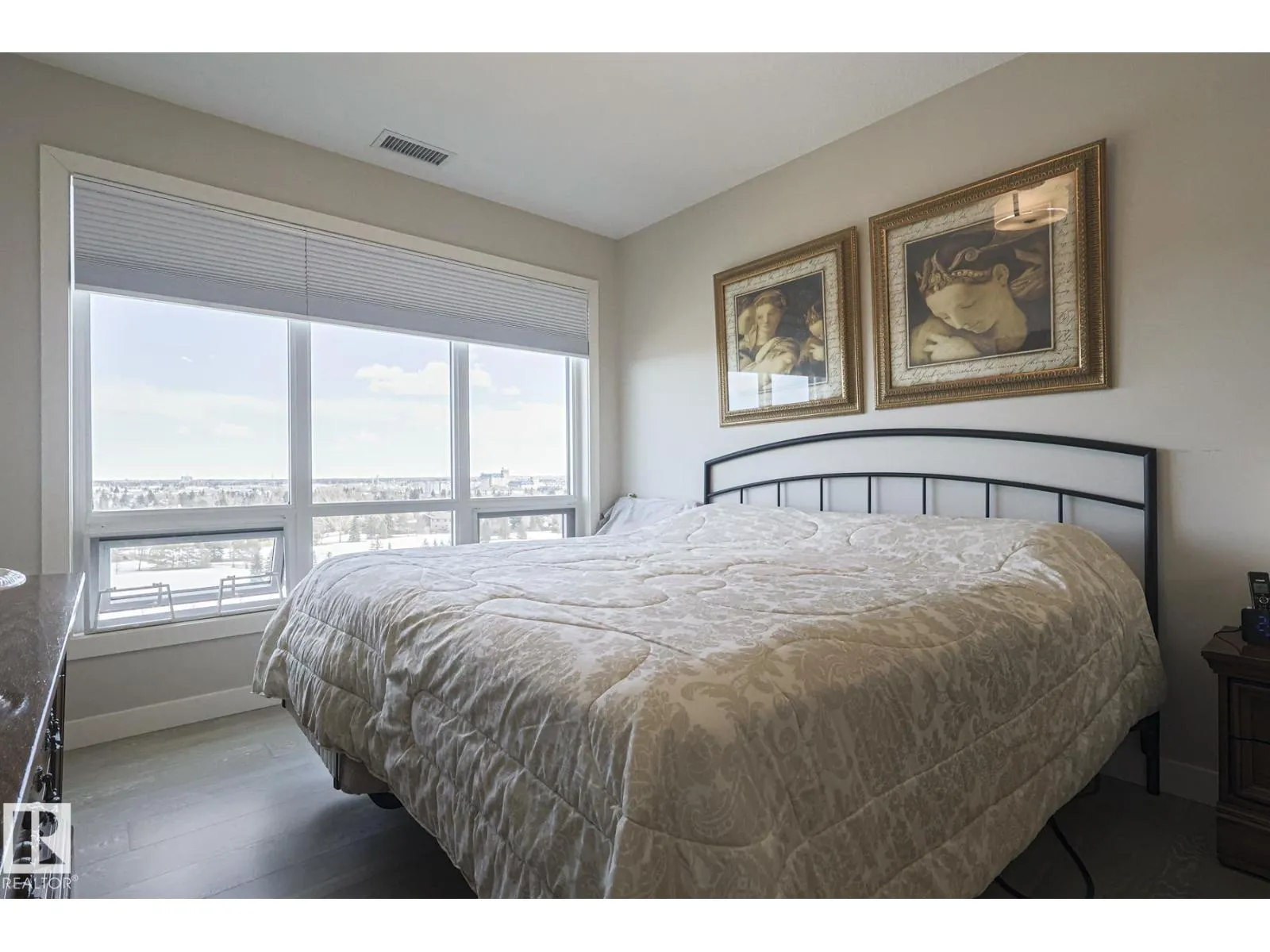 This impeccable 9th-floor unit offers a fantastic view & exceptional features.This unit is filled w/ abundant natural light w/open-concept layout.The kitchen is beautifully upgraded w/white cabinetry, stainless steel appliances, quartz countertops, & a large peninsula. High-end engineered hardwood flooring flows throughout, enhanced by large windows highlighing stunning views.Relax on the extensive private balcony & enjoy views onto a park to the east & the skyline of downtown to the north.The spacious living and dining areas are ideal for entertaining.The primary bedroom features a gorgeous view, a walk-through closet leading to a 4-piece bath w/a walk-in shower.The 2nd bedroom has a private 3-piece ensuite.This unit also offers central A/C, an underground parking & plenty storage spaces.Conveniently located near public transit(LRT) & w/easy access to shopping, dining & pharmacies.The building has so many unique amenities such as social room, restaurant, guest room, hair salon, car wash, workshop & more. (id:27476)