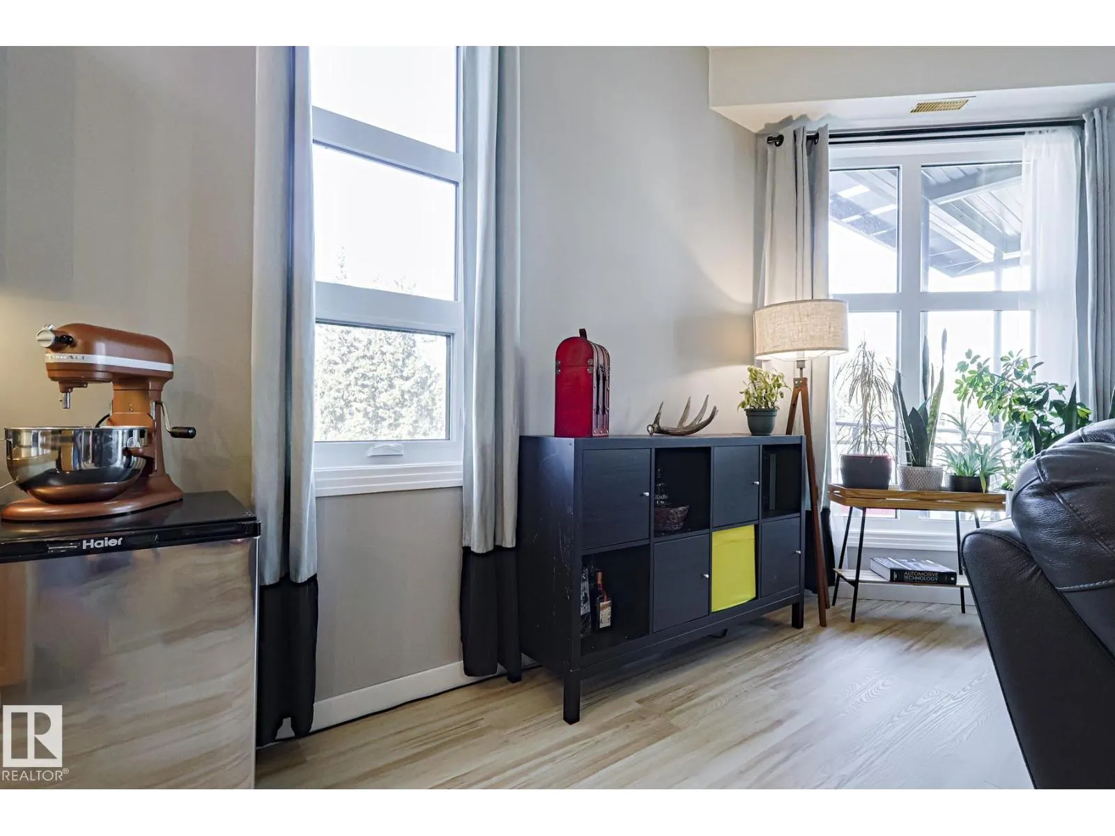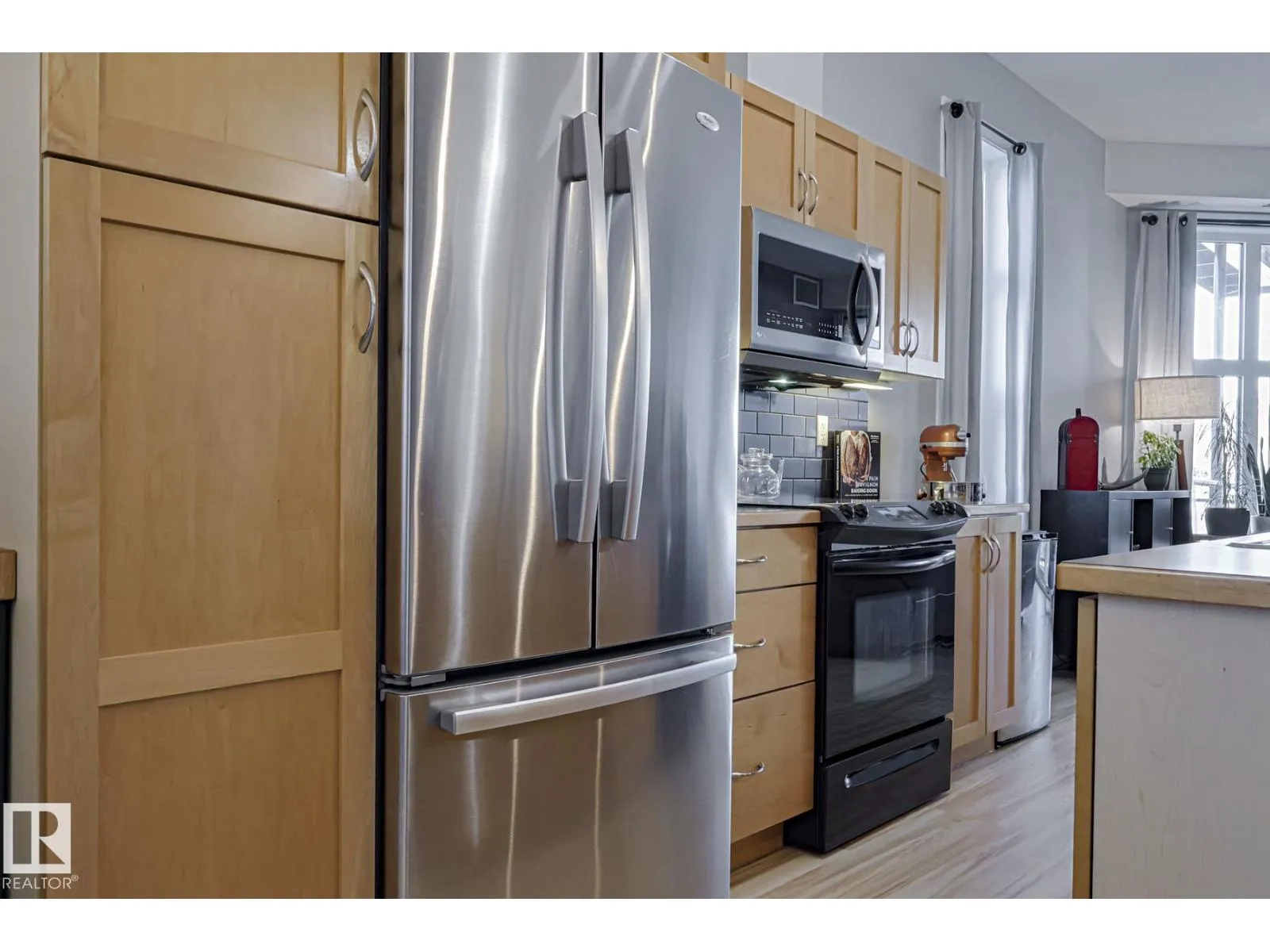 Welcome to Queen Mary Park and LOW CONDO FEES! This private end-unit corner suite at Gates on 117th offers 10â ceilings and windows on three sides, filling the open-concept kitchen, dining and living area with natural lightâperfect for entertaining. Featuring 2 spacious bedrooms, a 4-piece bath, in-suite laundry, new vinyl plank flooring and central AC. The large wrap-around balcony includes a natural gas BBQ hookup and city views. Enjoy heated underground parking with storage. This secure 4-storey building offers 2 elevators, fob entry, intercom and video surveillance. Walk to the Brewery District, 124 Street shops and dining, MacEwan University, Rogers Place and transit, plus future LRT expansion just one block away. Each unit has its own furnace and hot water tank so utilities are not included in the condo fees. Pet friendly building! (id:27476)