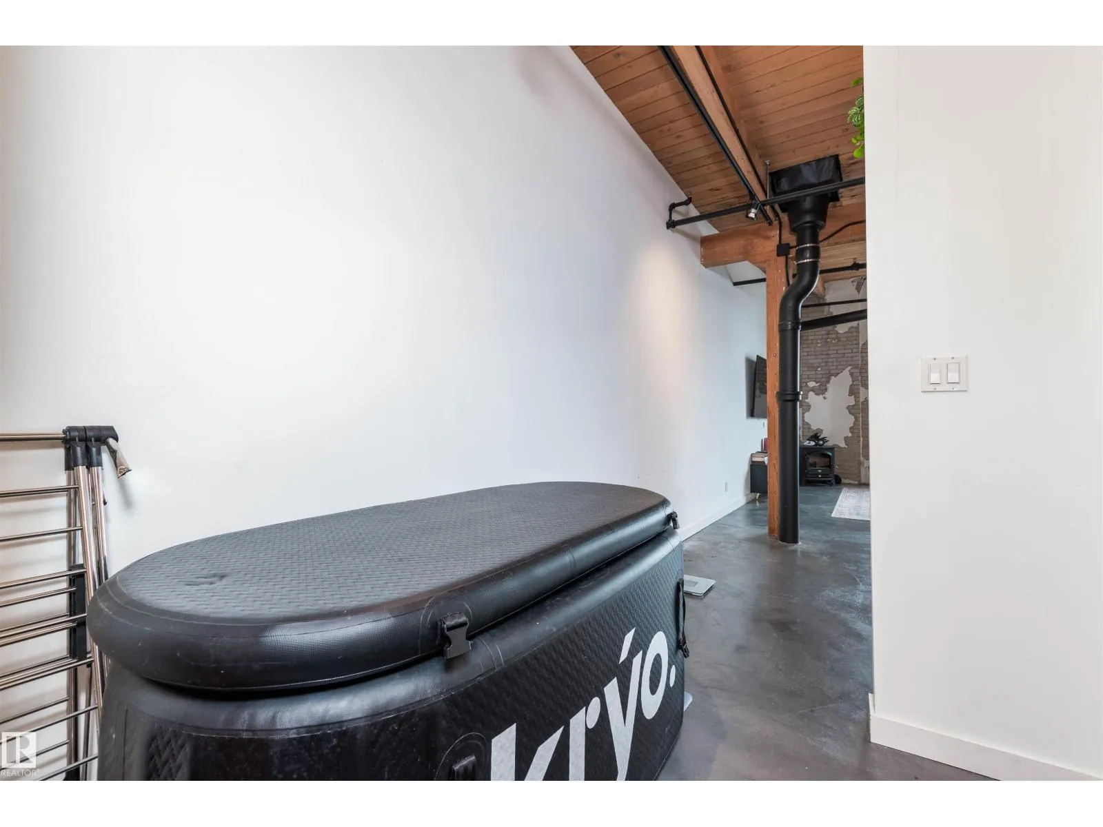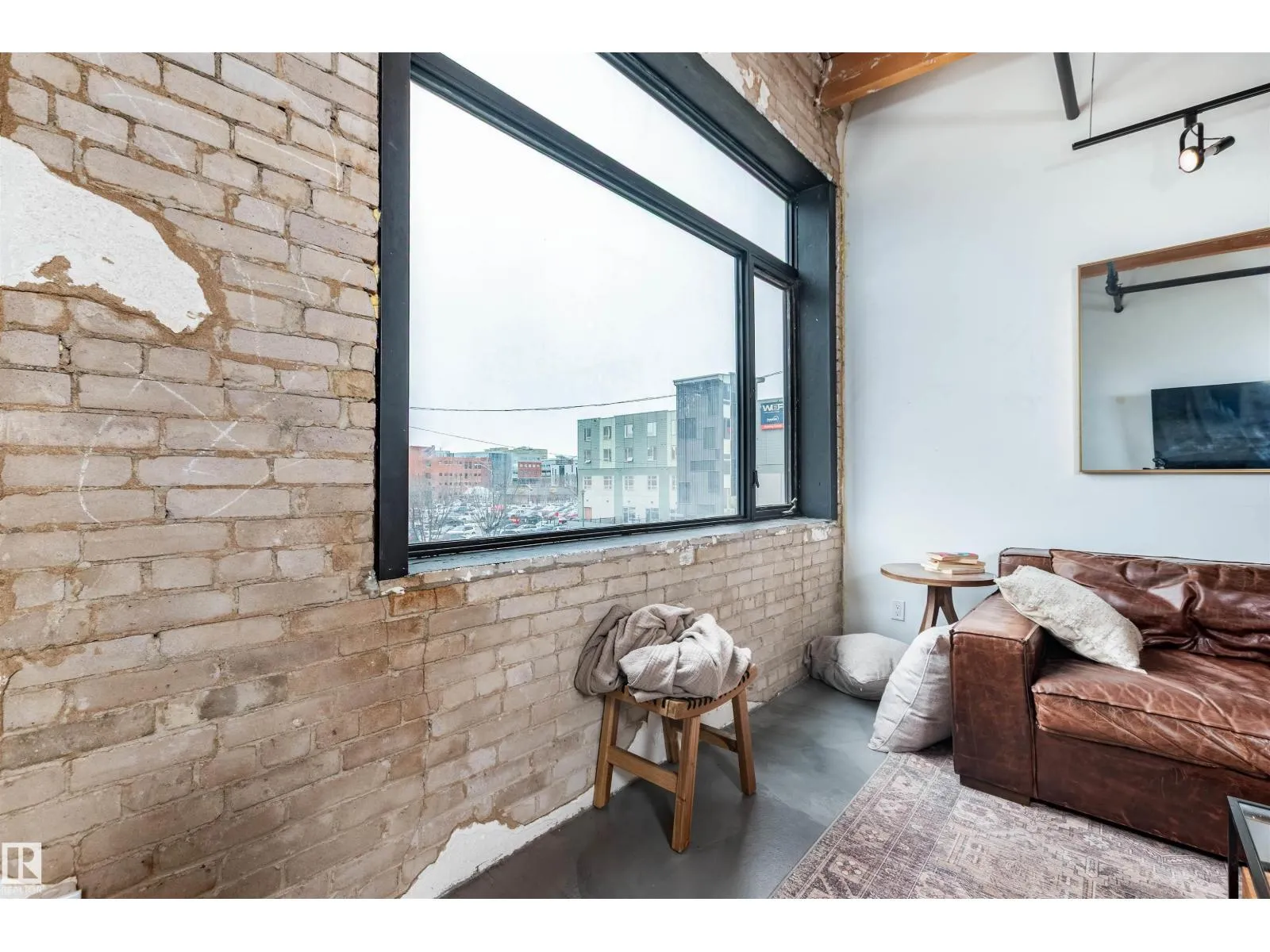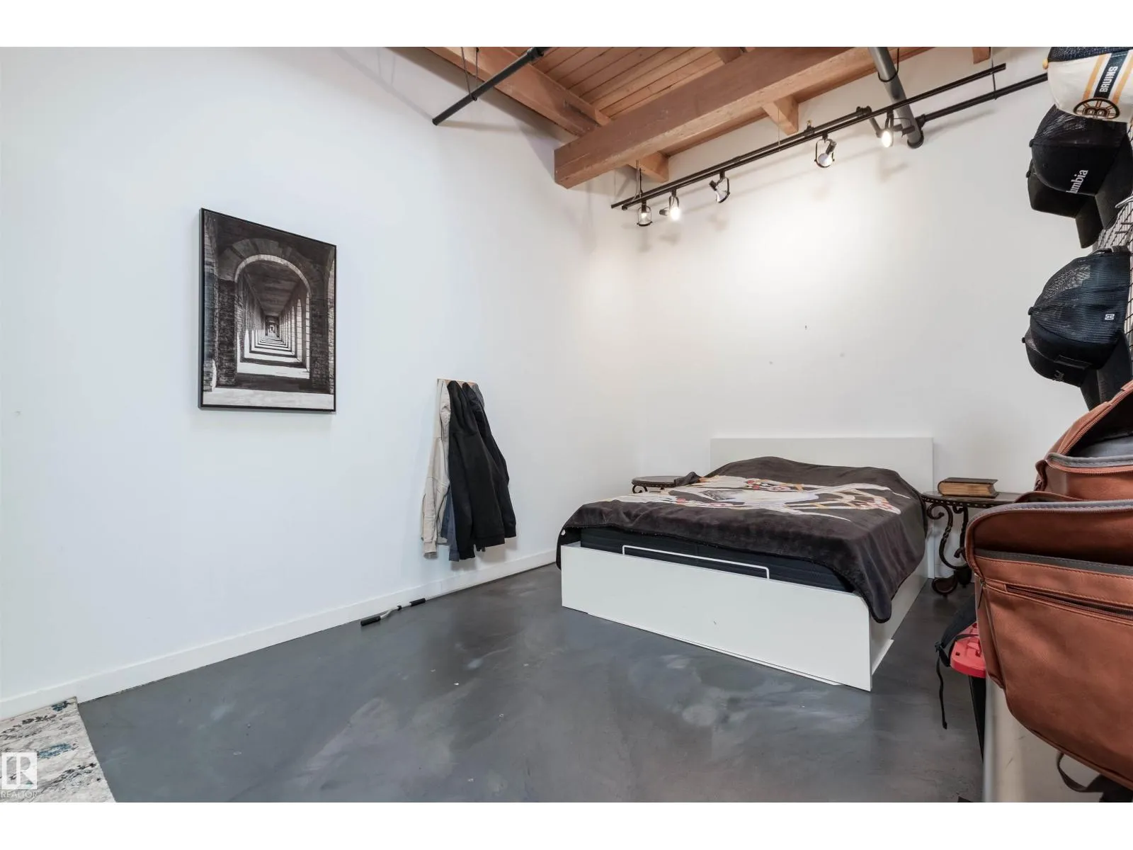 Welcome to Seventh Street Lofts and this stylish top-floor unit in the historic John Deere building, right in the heart of downtown Edmonton. Just steps to Grant MacEwan, Rogers Place, the LRT, shopping, dining, and transit, this unique loft blends industrial character with modern comfort. Renovated in 2018, it features updated appliances, concrete flooring, exposed beams and piping, a soaring 12-ft cedar ceiling, and an original brick feature wall. West-facing windows and a skylight in the bedroom fill the space with natural light. A rare loft layout places the bathroom between the bedroom and living area, offering added privacy and extra storage. This unit also includes in-suite laundry and an assigned parking stall. Airbnb-friendly building offers excellent flexibility and income-generating potential. (id:27476)