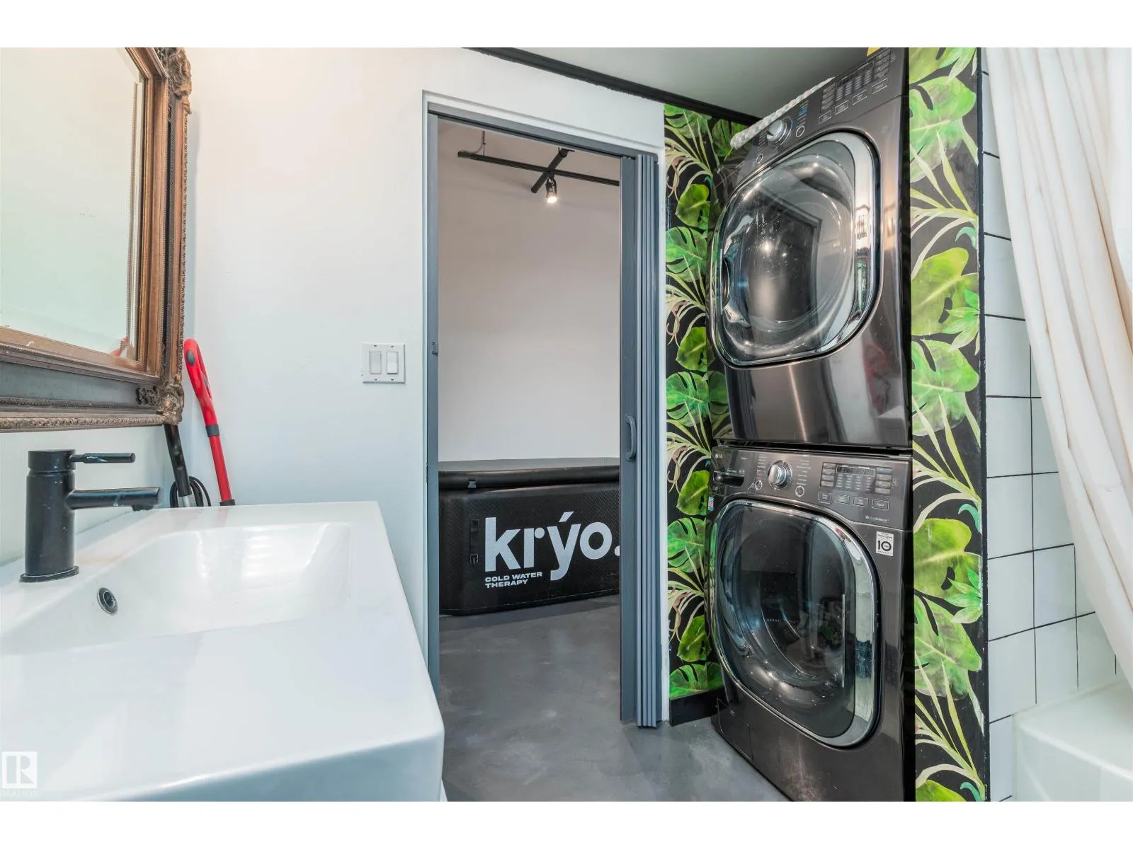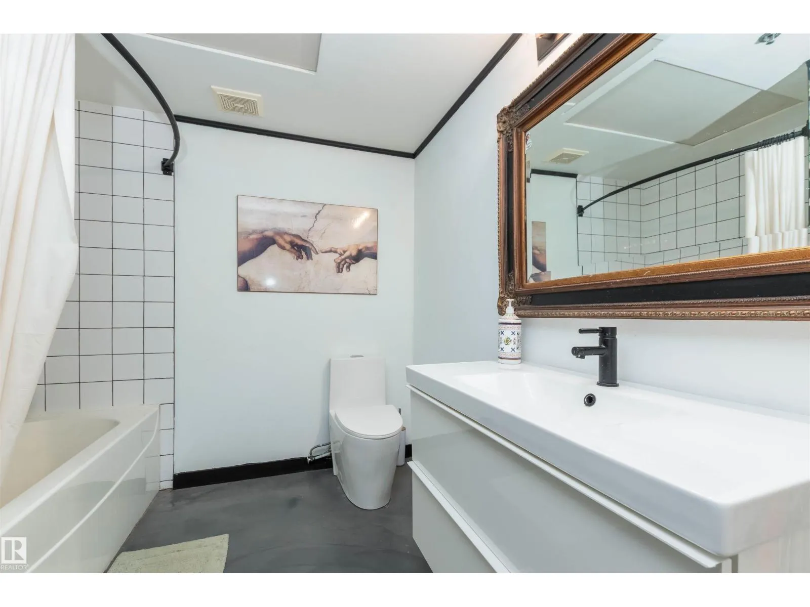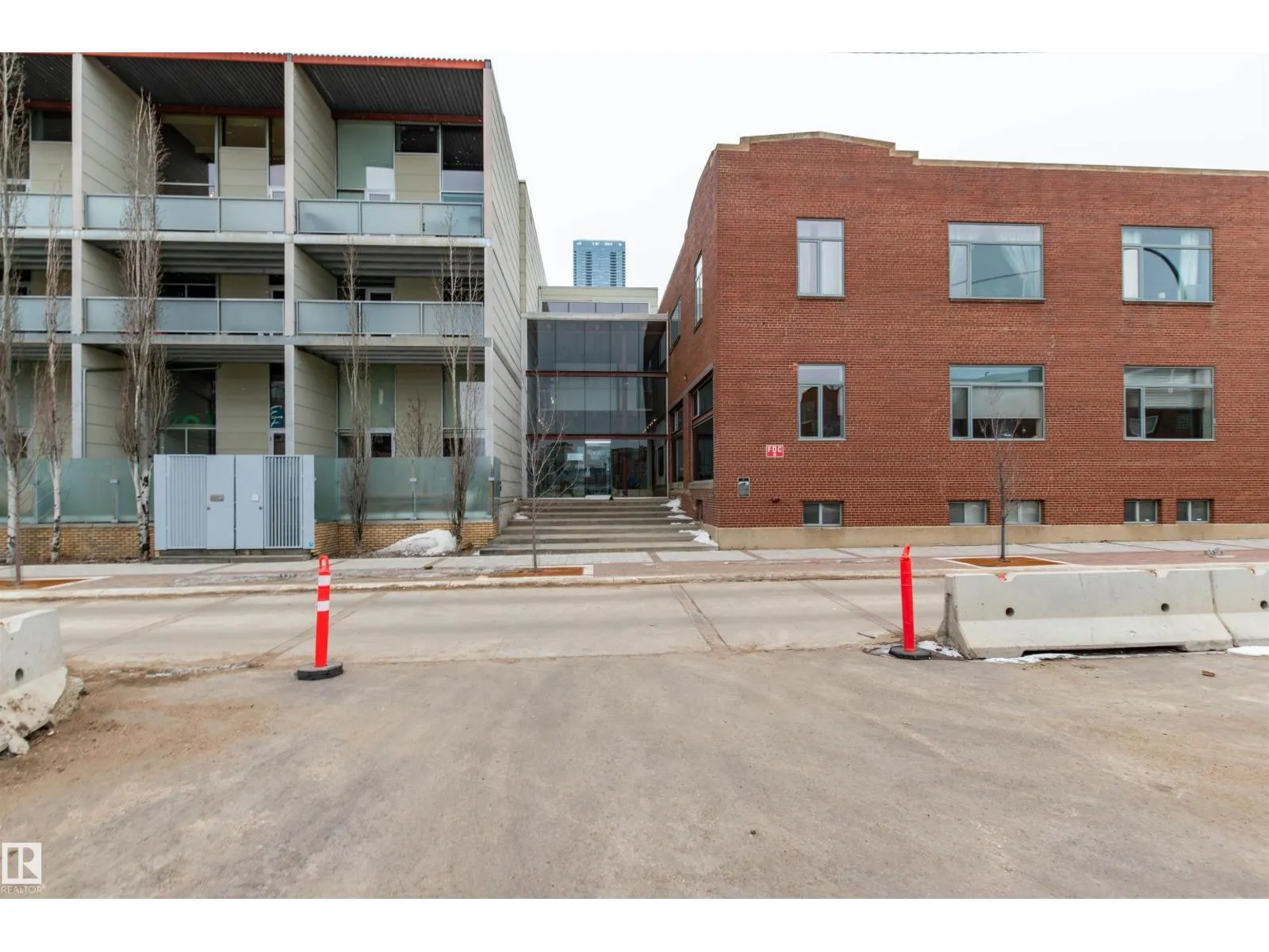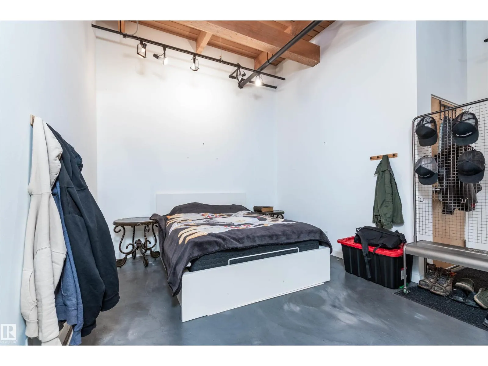 Welcome to Seventh Street Lofts and this stylish top-floor unit in the historic John Deere building, right in the heart of downtown Edmonton. Just steps to Grant MacEwan, Rogers Place, the LRT, shopping, dining, and transit, this unique loft blends industrial character with modern comfort. Renovated in 2018, it features updated appliances, concrete flooring, exposed beams and piping, a soaring 12-ft cedar ceiling, and an original brick feature wall. West-facing windows and a skylight in the bedroom fill the space with natural light. A rare loft layout places the bathroom between the bedroom and living area, offering added privacy and extra storage. This unit also includes in-suite laundry and an assigned parking stall. Airbnb-friendly building offers excellent flexibility and income-generating potential. (id:27476)