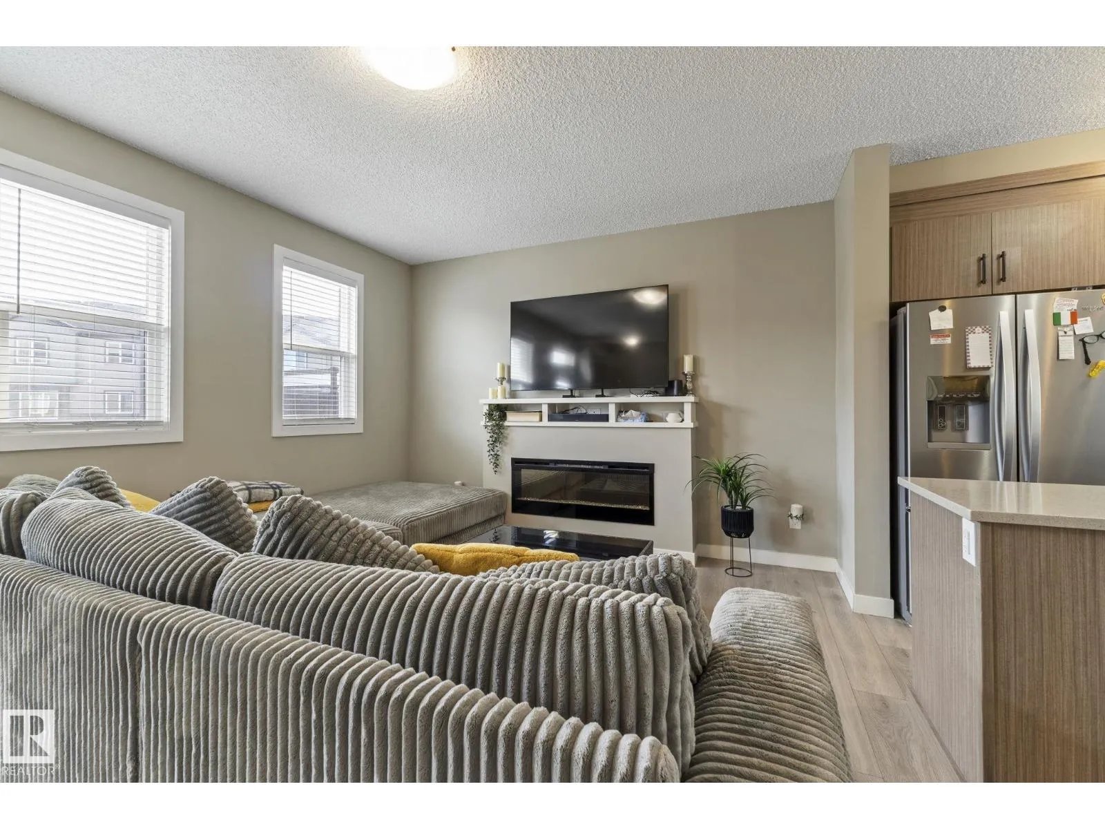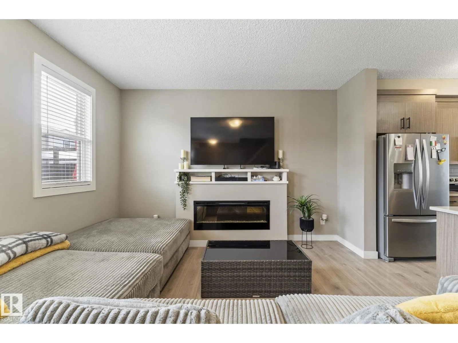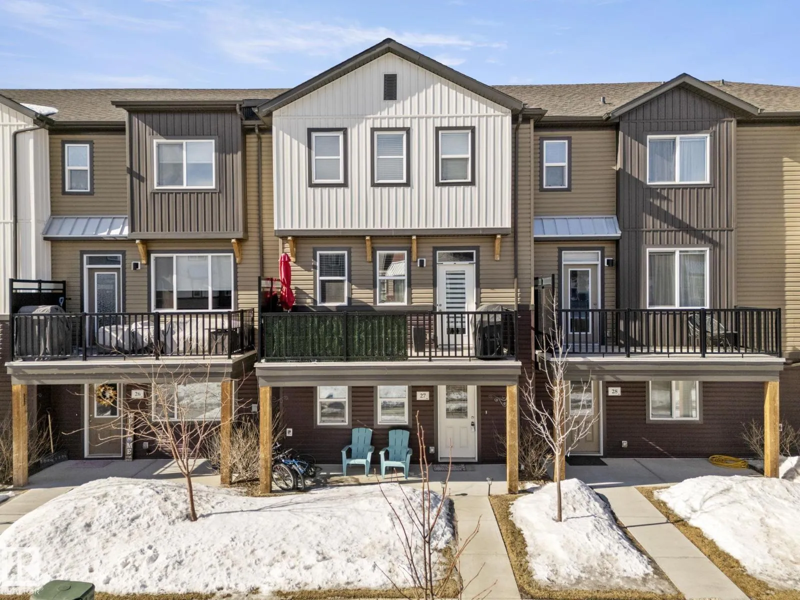 Welcome to Allentown in the desirable community of Schonsee. This modern home offers 3 bedrooms plus a den, 2.5 bathrooms, and a double attached garage. The bright main floor features a spacious living room with an electric fireplace and a stylish kitchen with upgraded cabinetry, quartz countertops, stainless steel appliances, and a large walk-in pantry. The dining area is filled with natural light, and the level is completed by convenient main floor laundry and a 2-piece bathroom. Step outside to a generous balcony, perfect for relaxing or entertaining. Upstairs features a spacious primary bedroom with a walk-in closet and 3-piece ensuite, plus two additional bedrooms and a 4-piece bathroom. The lower level offers a finished flex space ideal for a home office or den, with access to a concrete patio. Close to shopping, parks, schools, and quick access to Anthony Henday. (id:27476)