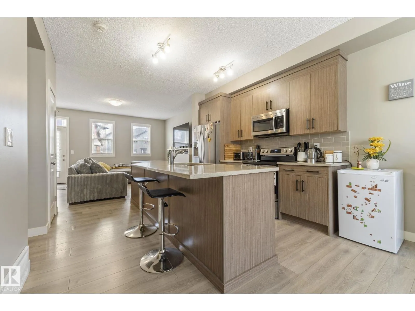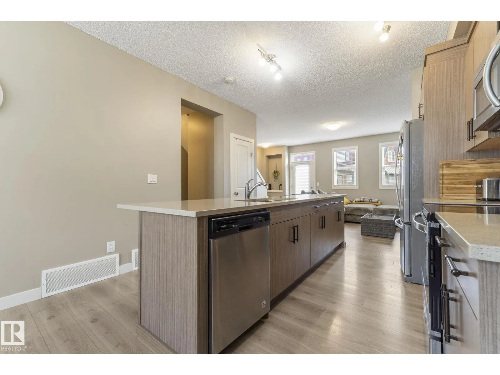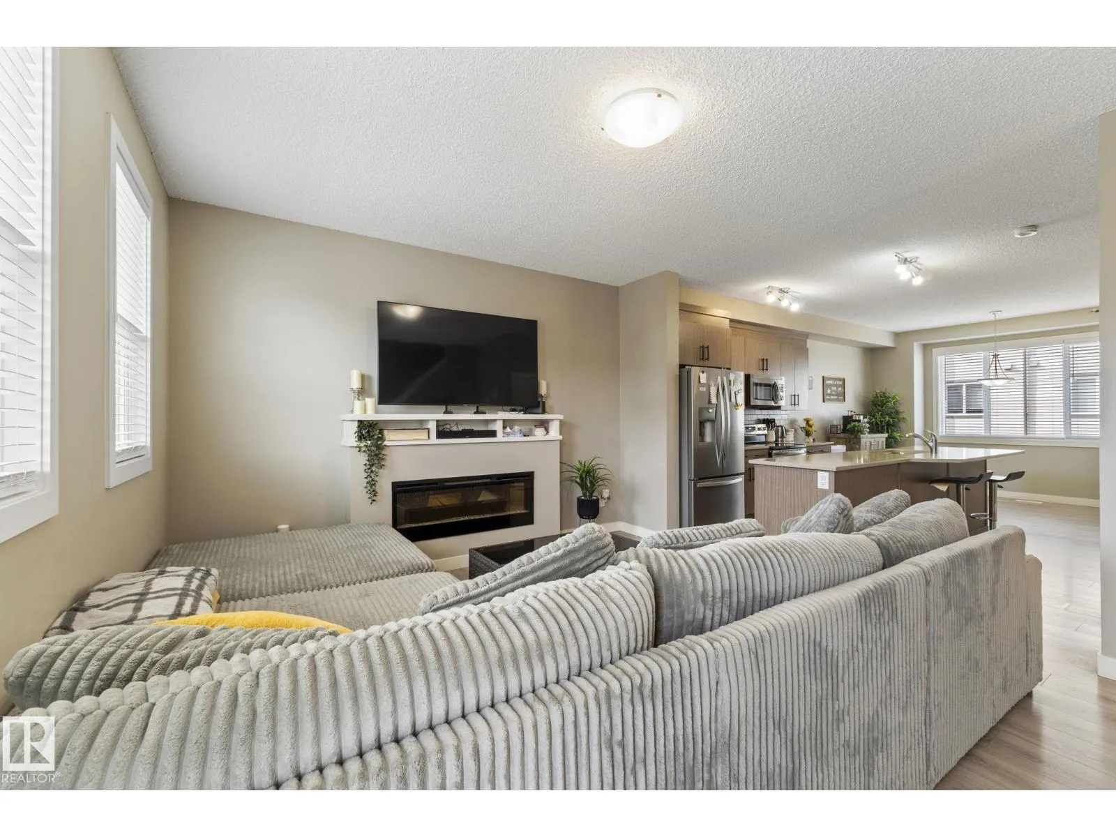 Welcome to Allentown in the desirable community of Schonsee. This modern home offers 3 bedrooms plus a den, 2.5 bathrooms, and a double attached garage. The bright main floor features a spacious living room with an electric fireplace and a stylish kitchen with upgraded cabinetry, quartz countertops, stainless steel appliances, and a large walk-in pantry. The dining area is filled with natural light, and the level is completed by convenient main floor laundry and a 2-piece bathroom. Step outside to a generous balcony, perfect for relaxing or entertaining. Upstairs features a spacious primary bedroom with a walk-in closet and 3-piece ensuite, plus two additional bedrooms and a 4-piece bathroom. The lower level offers a finished flex space ideal for a home office or den, with access to a concrete patio. Close to shopping, parks, schools, and quick access to Anthony Henday. (id:27476)