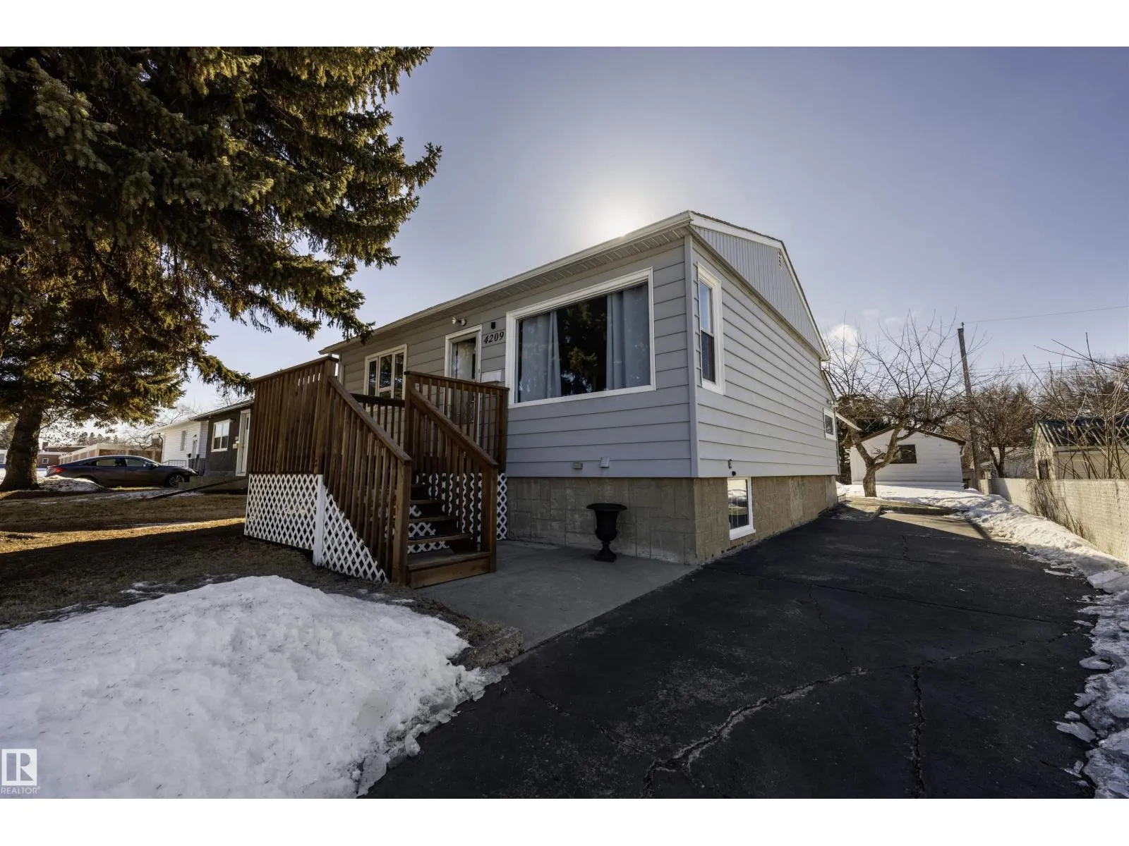 Well-cared-for 770 SqFt 2 + 2 Bungalow in Beverly Heights located on a quiet residential street & a ~6,000 SqFt lot. Features include paved front & rear driveway for multiple vehicles/RV, a landscaped yard with an updated front porch, & spacious living area with built-in wall unit. The kitchen offers stainless steel appliances, upgraded cabinets & eating nook with a south-facing window. The main floor includes 2 large bedrooms & full bath with walk-in bath/shower. The fully finished basement adds 2 more bedrooms, second full bath, newer LG SS Washer & Dryer, & reinforced windows. Upgrades include High-Efficiency Lennox Furnace, Central A/C, Tankless Hot Water, newer shingles & ADT security system. Enjoy a large (south-facing) landscaped backyard with concrete patio, planters, updated fencing, 2 sheds & a single detached garage. In a mature neighbourhood and 10 min drive to shopping, downtown, Yellowhead Trail, & Anthony Henday Drive. Walking distance to Public Transit (~2 mins) & River Valley (~10 mins) (id:27476)