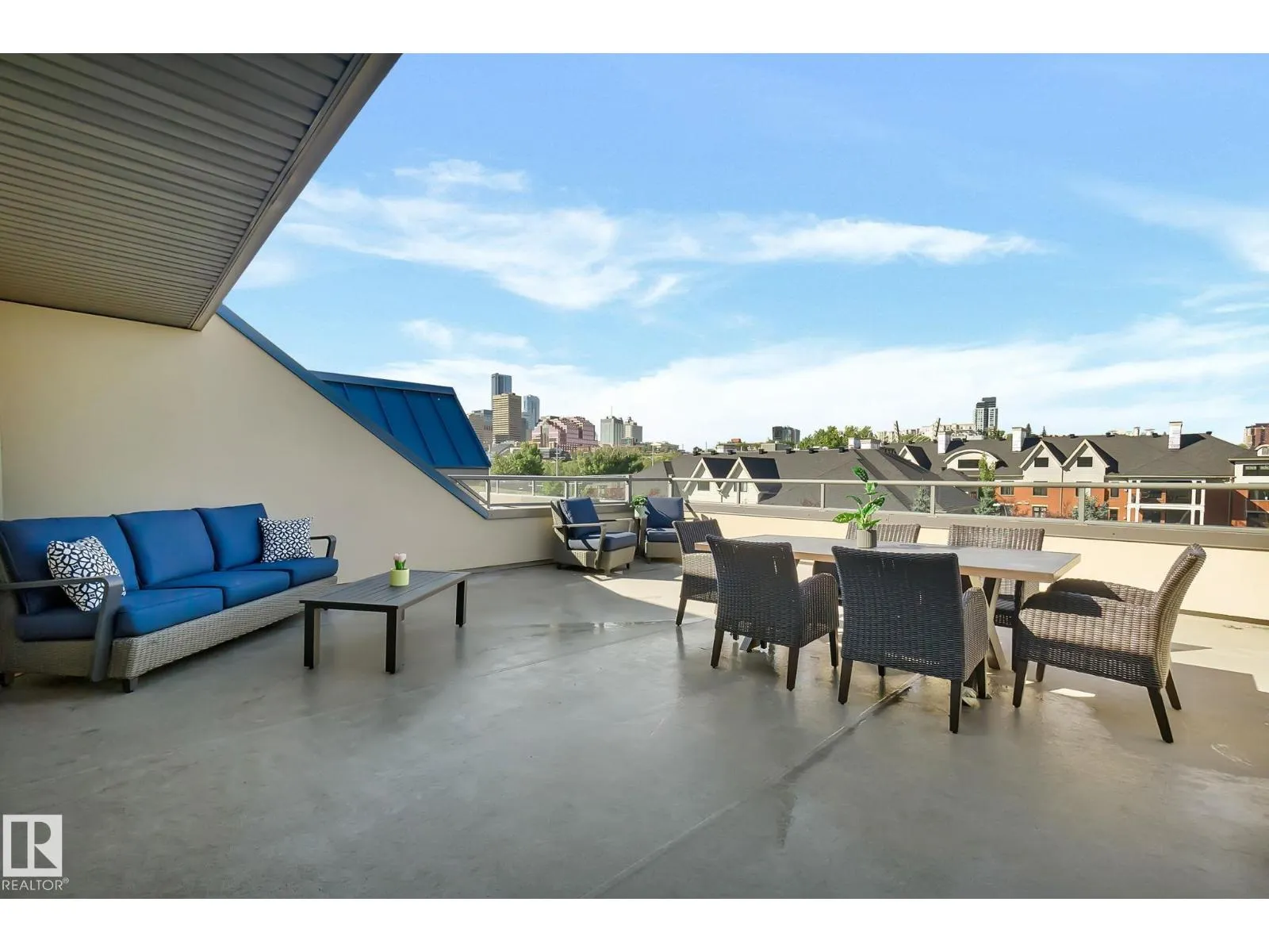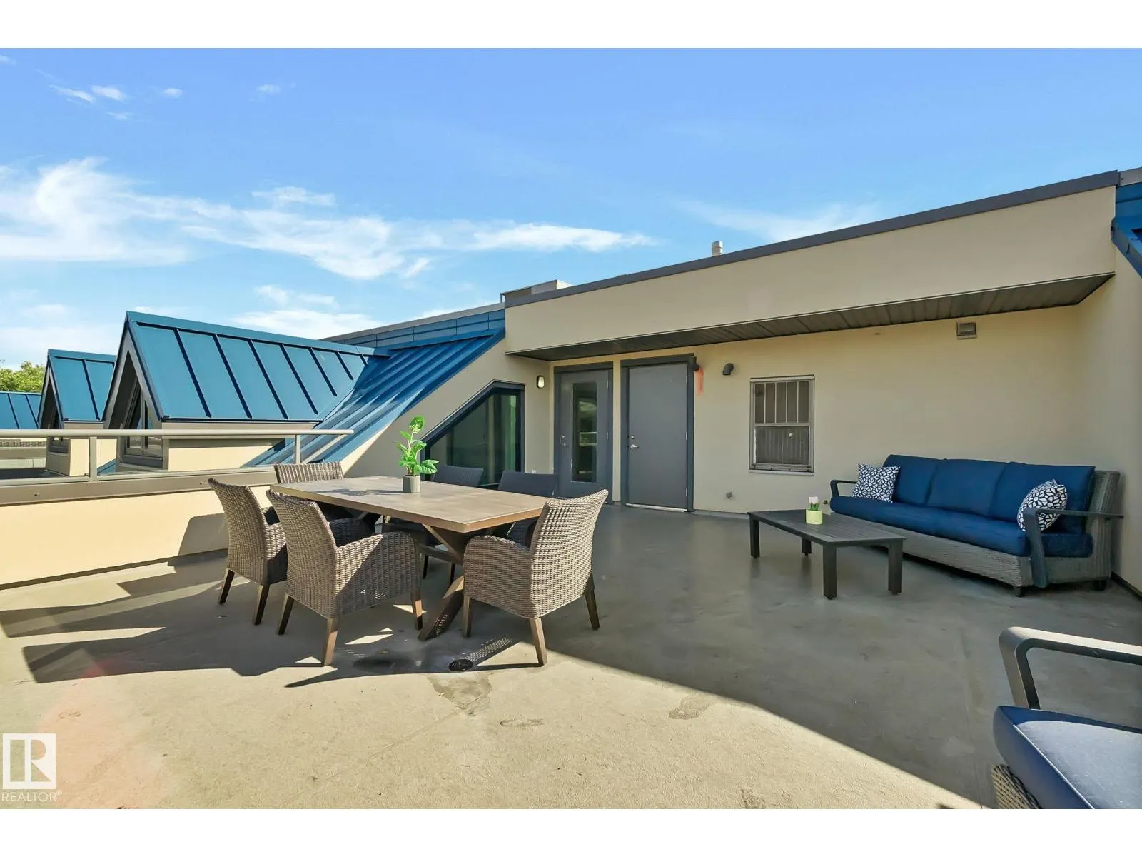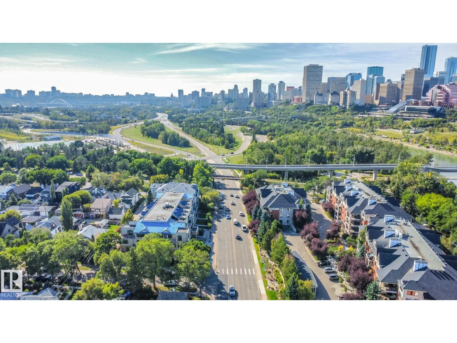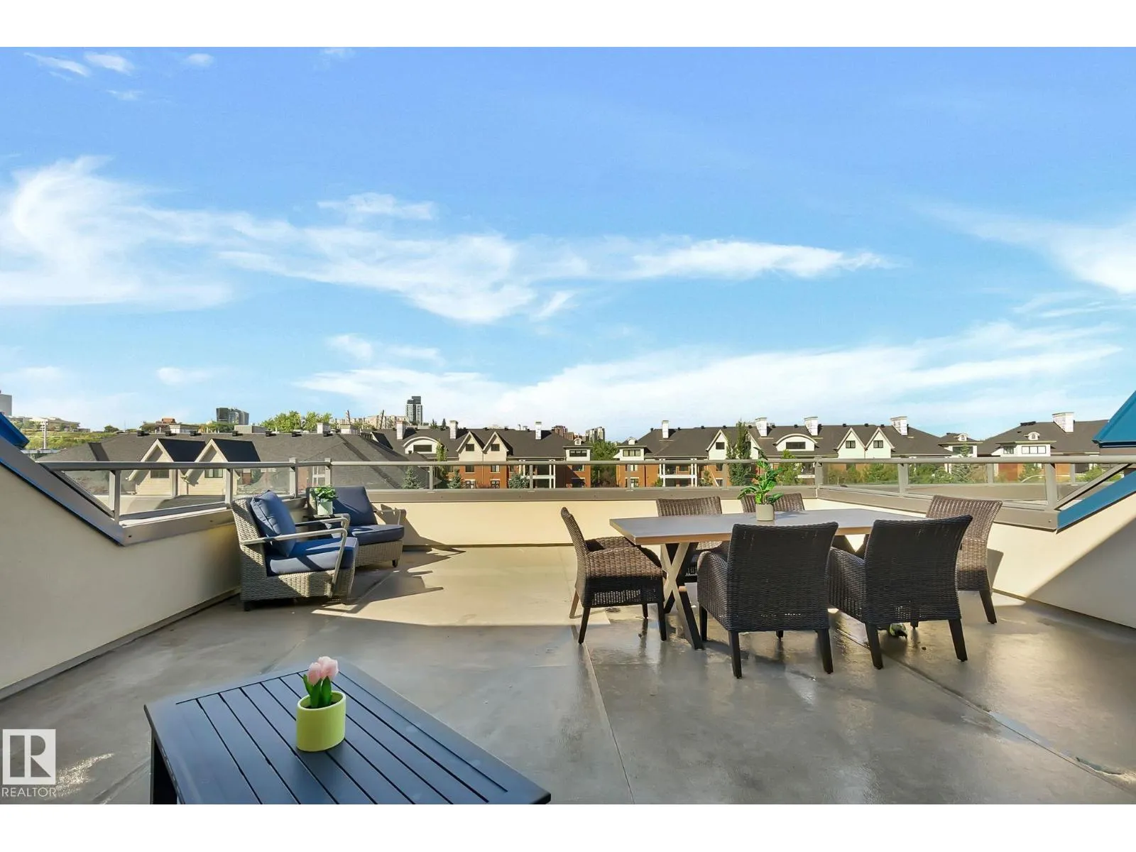 Experience elevated city living in this stylish 2-bedroom executive condo with flexible loft space and spectacular rooftop patio overlooking the Edmonton skyline. Ideally located just steps from the LRT, Muttart Conservatory, the North Saskatchewan River Valley, walking trails, parks, and downtown, this home offers the perfect blend of urban convenience and outdoor lifestyle. The main level features two spacious bedrooms, two full bathrooms, in-suite laundry, and a sleek modern kitchen with granite countertops & stainless steel appliances. Upstairs, the versatile loft provides the perfect space for a home office, fitness area, or additional lounge. The PRIVATE ROOFTOP PATIO is a true highlight, offering an incredible setting to relax or entertain while taking in panoramic city views. Upstairs, the large storage room has been converted into a high-end walk-in closet, ideal for clothing, shoes, and seasonal storage. One titled heated underground parking stall included. This property has it all! (id:27476)