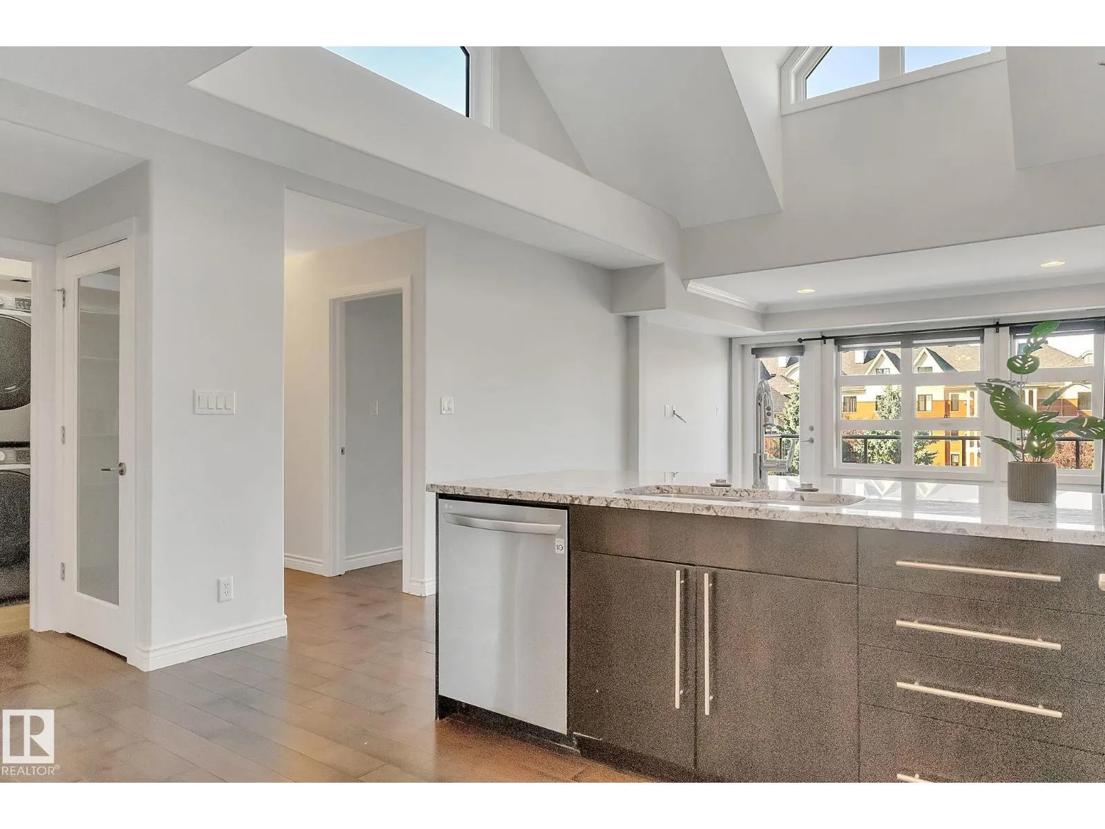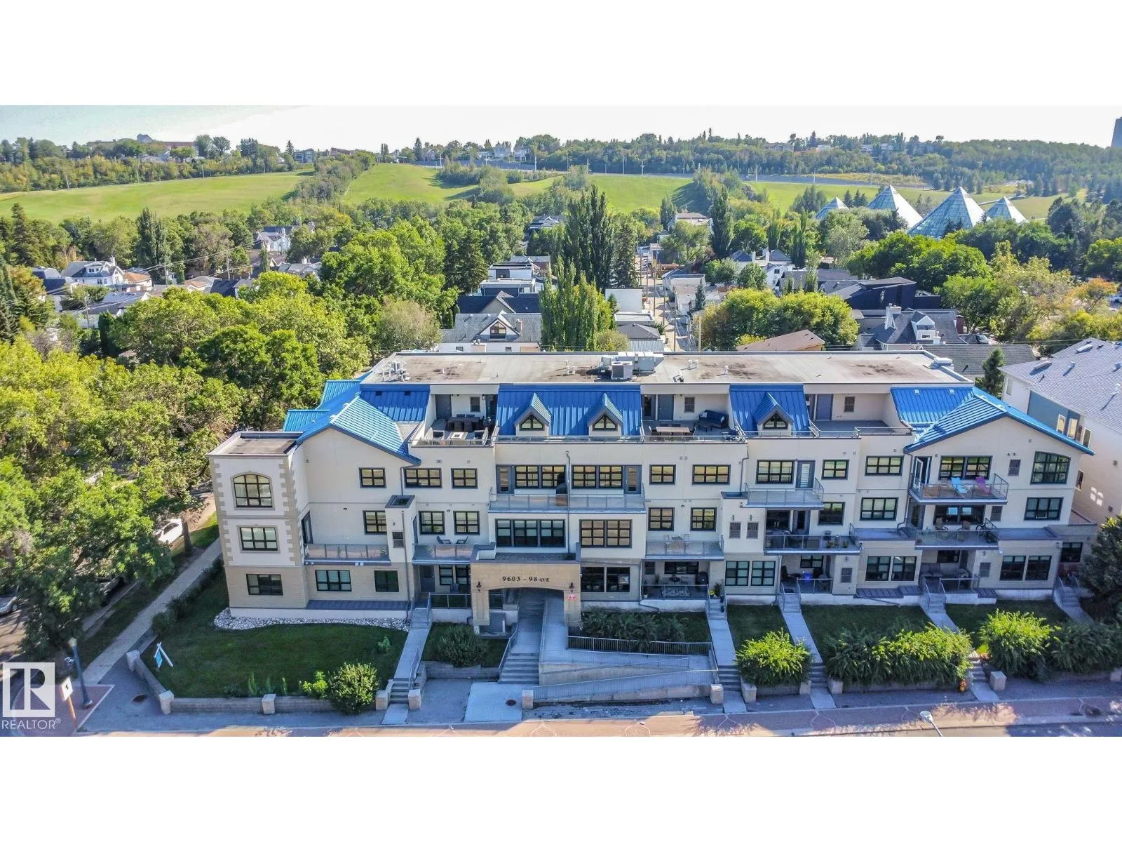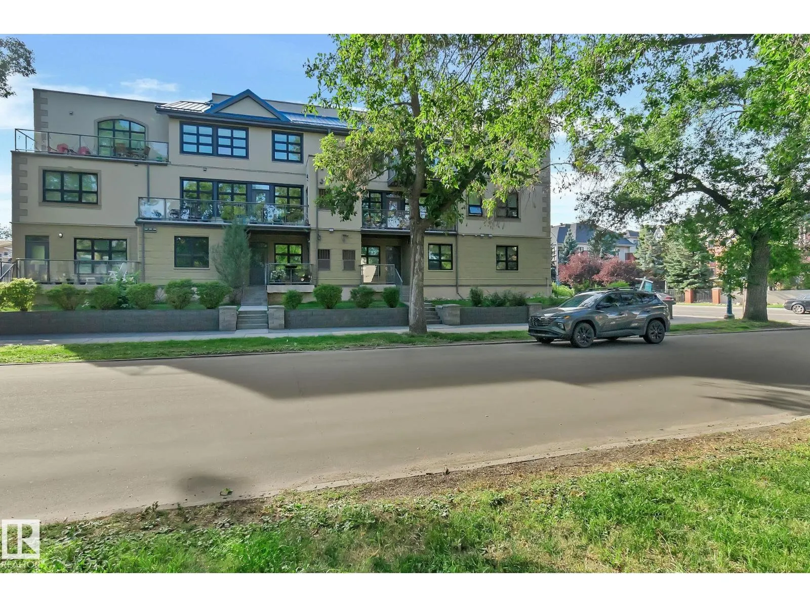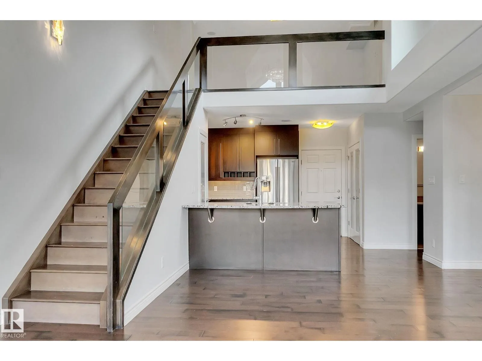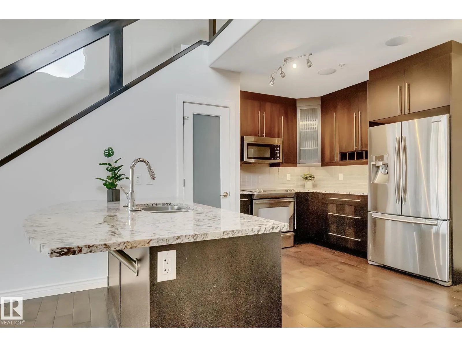Experience elevated city living in this stylish 2-bedroom executive condo with flexible loft space and spectacular rooftop patio overlooking the Edmonton skyline. Ideally located just steps from the LRT, Muttart Conservatory, the North Saskatchewan River Valley, walking trails, parks, and downtown, this home offers the perfect blend of urban convenience and outdoor lifestyle. The main level features two spacious bedrooms, two full bathrooms, in-suite laundry, and a sleek modern kitchen with granite countertops & stainless steel appliances. Upstairs, the versatile loft provides the perfect space for a home office, fitness area, or additional lounge. The PRIVATE ROOFTOP PATIO is a true highlight, offering an incredible setting to relax or entertain while taking in panoramic city views. Upstairs, the large storage room has been converted into a high-end walk-in closet, ideal for clothing, shoes, and seasonal storage. One titled heated underground parking stall included. This property has it all! (id:27476)