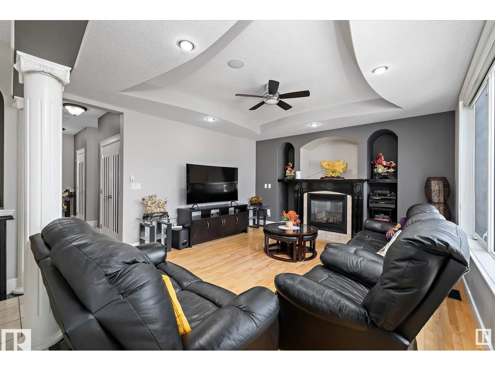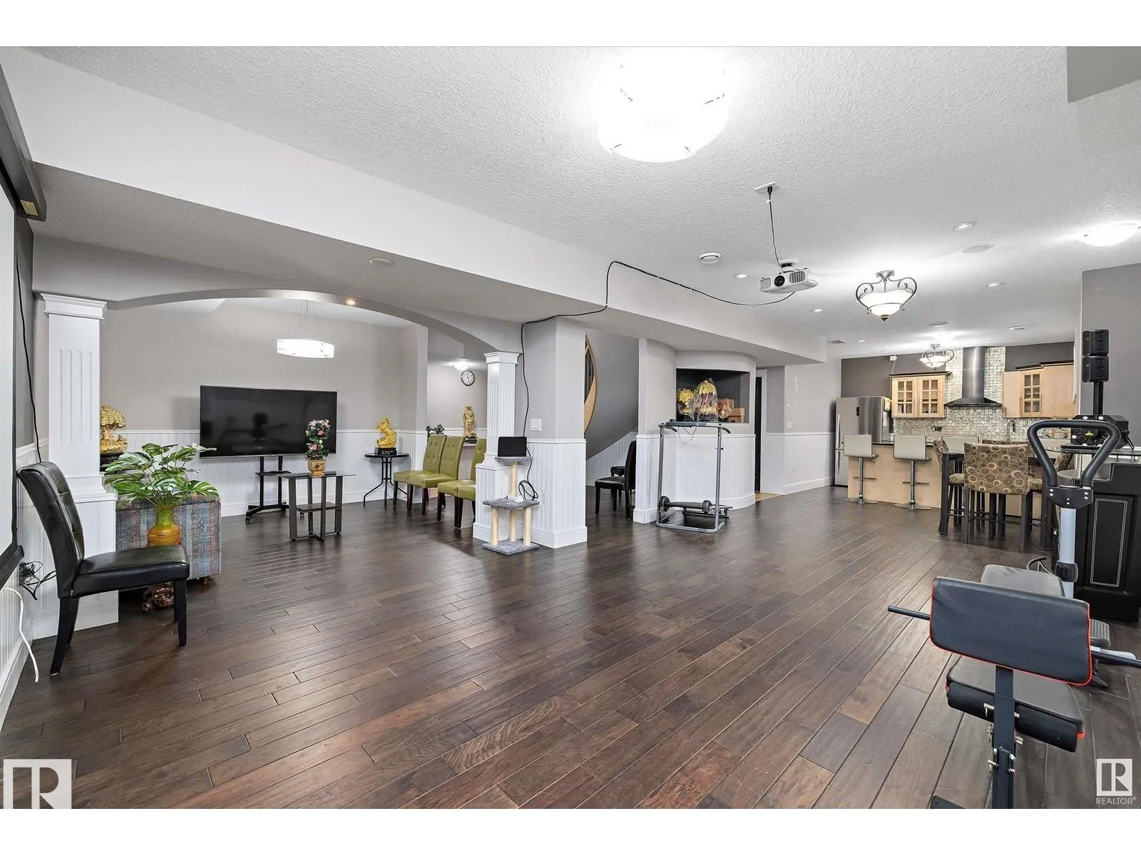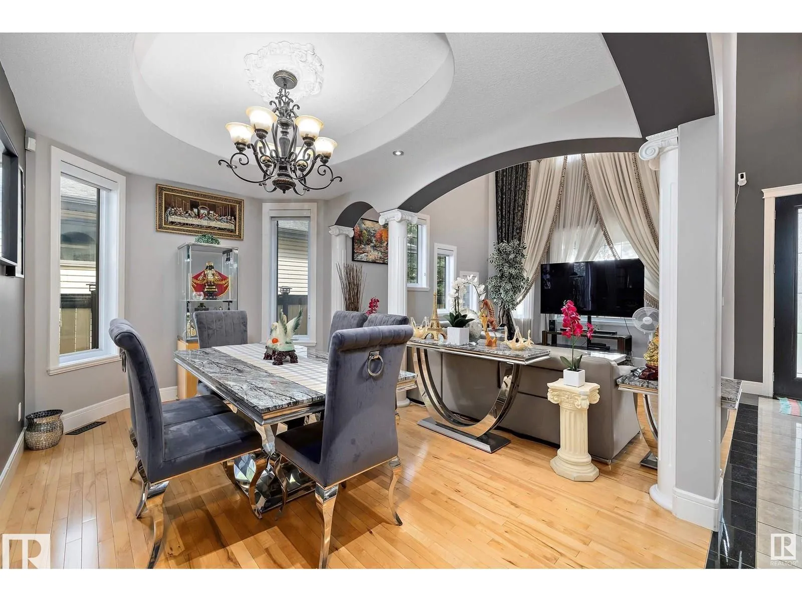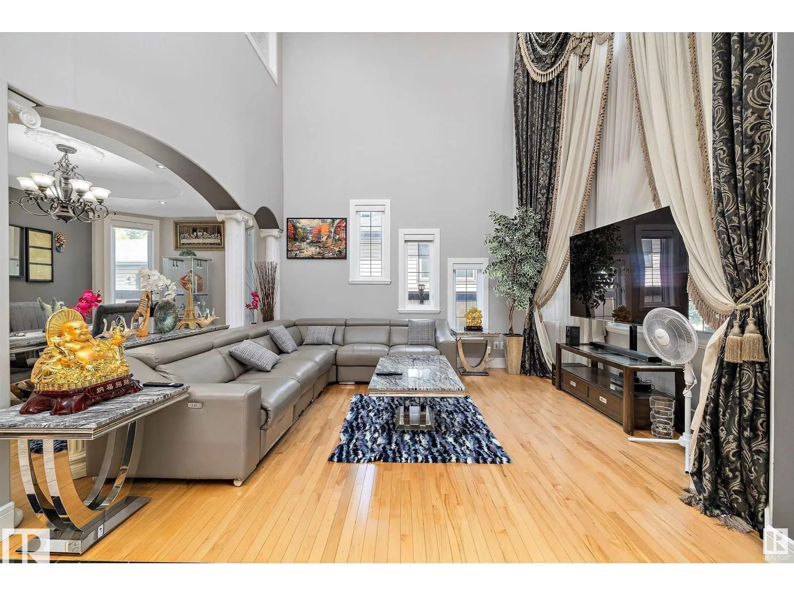 Welcome to this stunning 2-storey home with TRIPLE CAR GARAGE offering nearly 3,100 sq ft of luxurious living space, located just minutes from Downtown Edmonton and West Edmonton Mall. This spacious home features 7 bedrooms and 4.5 full bathrooms, perfect for large or extended families. A grand foyer and curved staircase create a striking first impression with an open-to-below design that elevates the space. The main floor offers a den, engineered hardwood, upgraded tile flooring, a gourmet kitchen with quartz countertops, gas stove, SS appliances, and a spice kitchenâideal for preparing your favorite meals and entertaining guests. Upstairs, youâll find 4 large bedrooms and 3 full bathrooms, including a massive primary suite with a luxurious 5-piece ensuite and walk-in closet. Each room feels generously sized and thoughtfully designed. The fully finished basement features a Separate Entrance, second kitchen, 2 bedrooms, a 3-piece bath, and a spacious living room . (id:27476)
