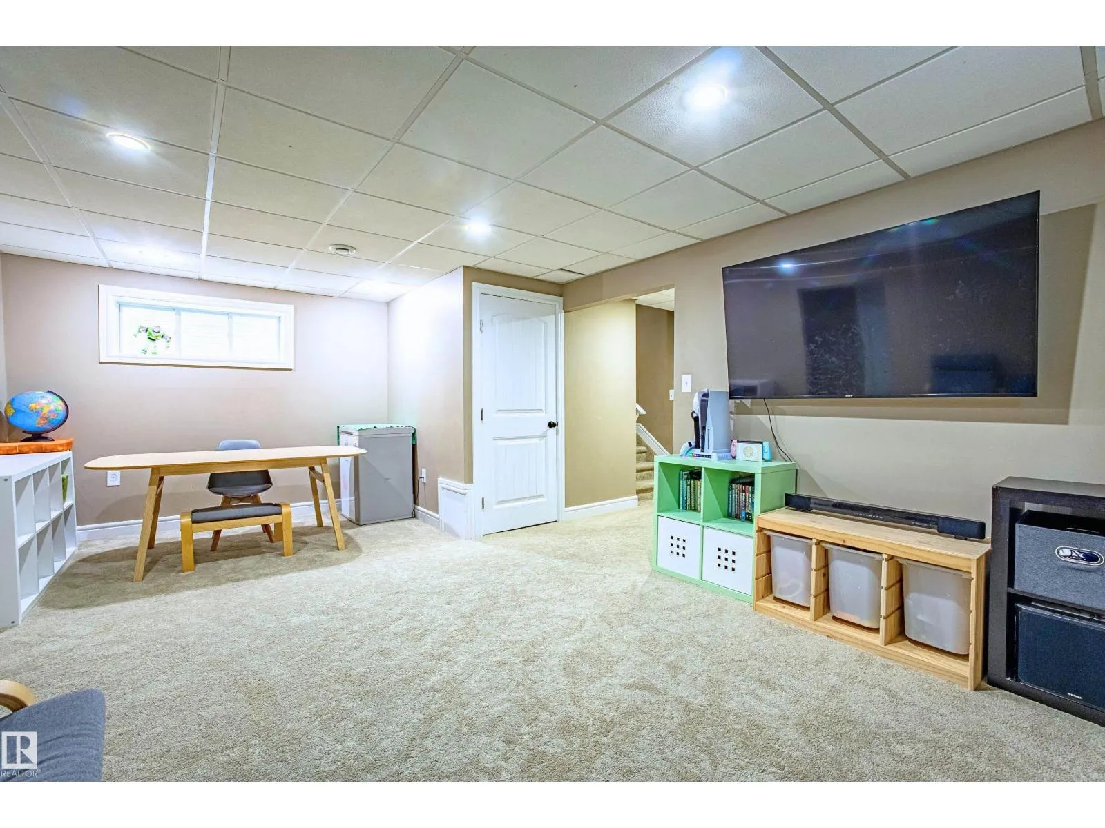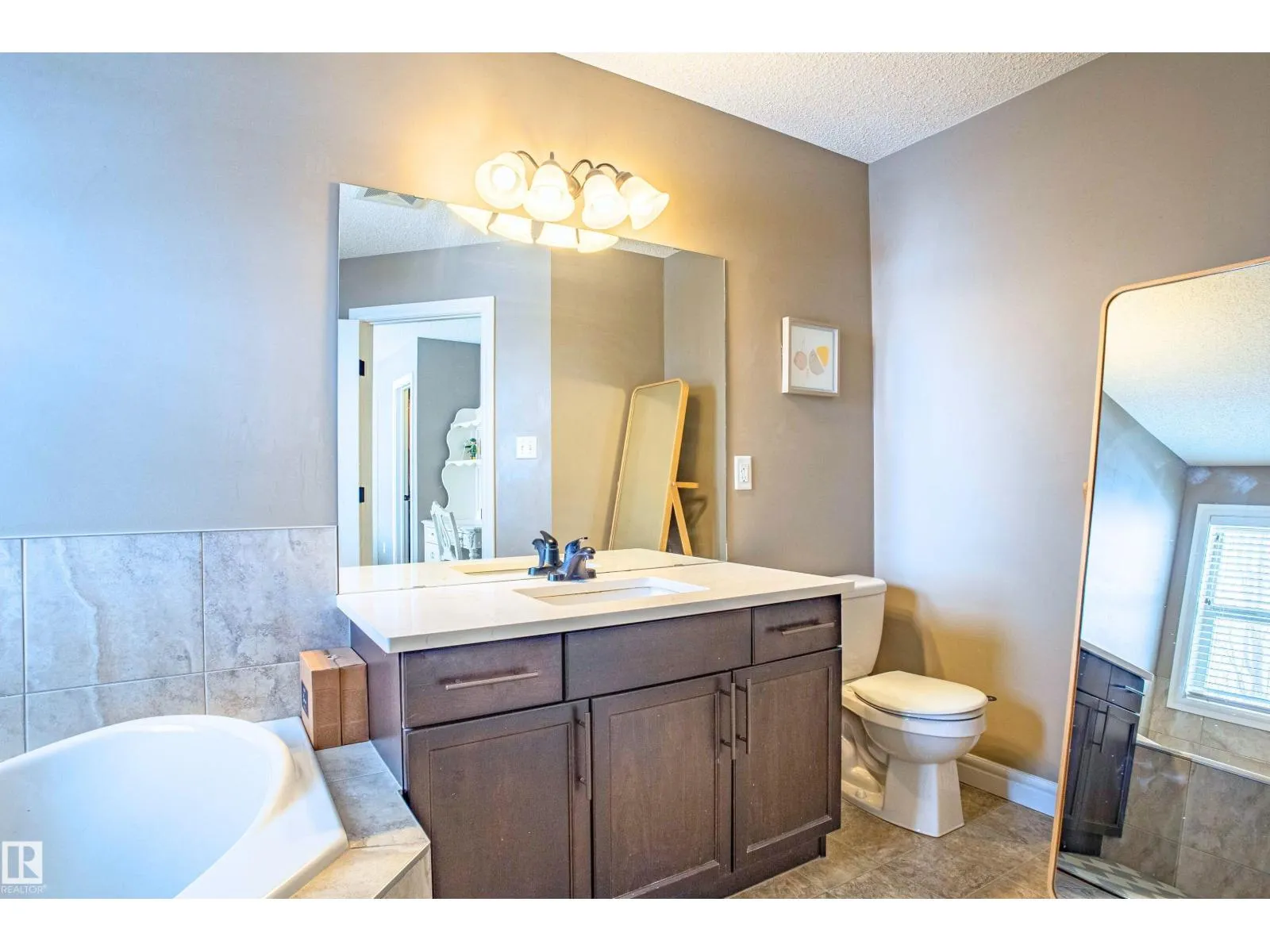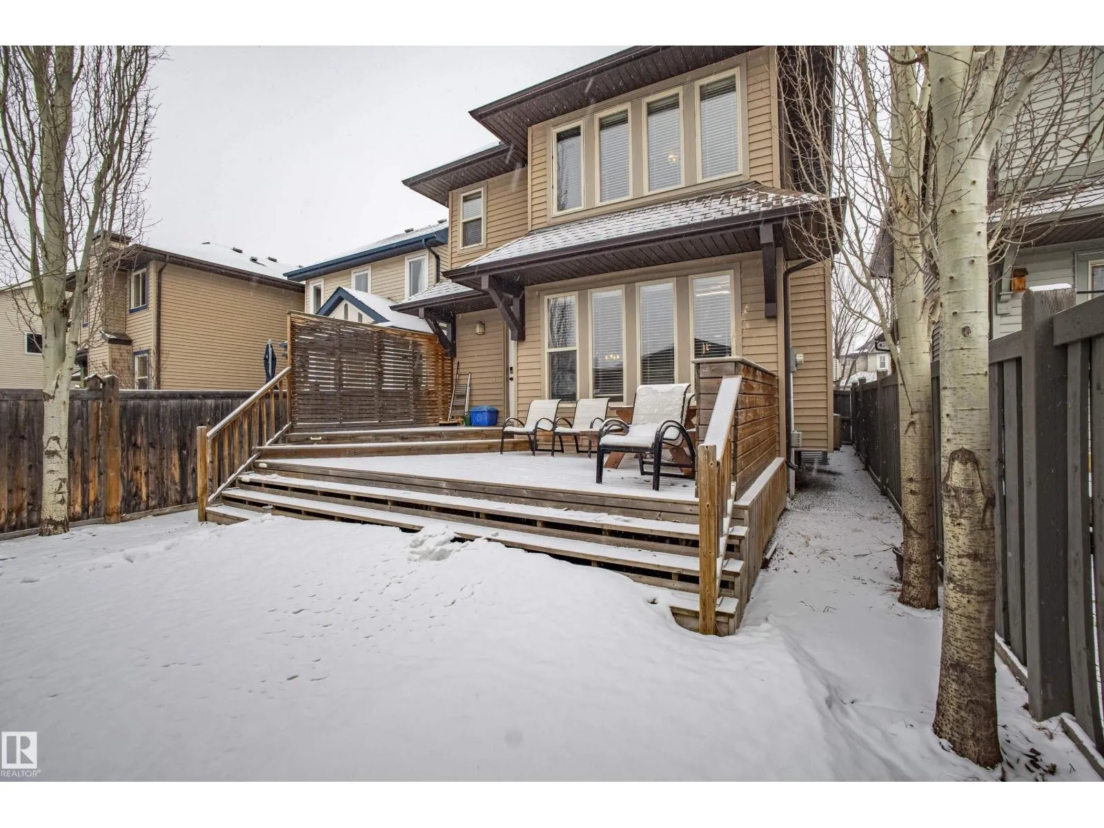 Welcome to this beautifully designed 2-storey home in the highly sought-after community of Ambleside! Offering 2,344 sq ft of total living space, this home features a bright open-concept main floor with a front flex room, spacious living area with a cozy gas fireplace, and a stylish kitchen complete with stainless steel appliances, quartz countertops (2022), large island, and corner pantry. Upstairs offers 3 generous bedrooms, including a stunning primary suite with double French doors, walk-in closet, and a 4-pc ensuite with soaker tub and separate shower. The fully finished basement adds a large rec room, additional bedroom, 3-pc bath, and laundry with sink. Recent upgrades include vinyl plank flooring, dishwasher (2022), refrigerator (2024), washer/dryer (2024), and upgraded landscaping. Enjoy the huge deckâperfect for entertaining! Conveniently located close to parks, schools, walking trails, and Currents of Windermere. (id:27476)
