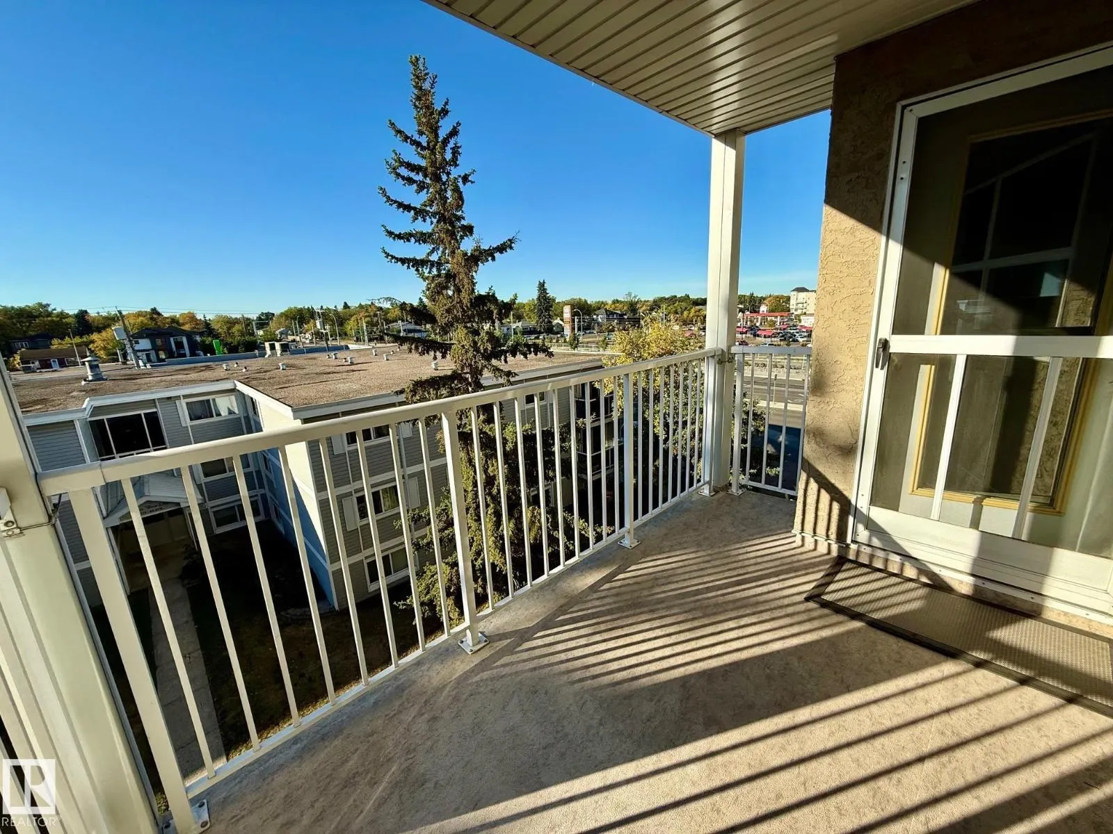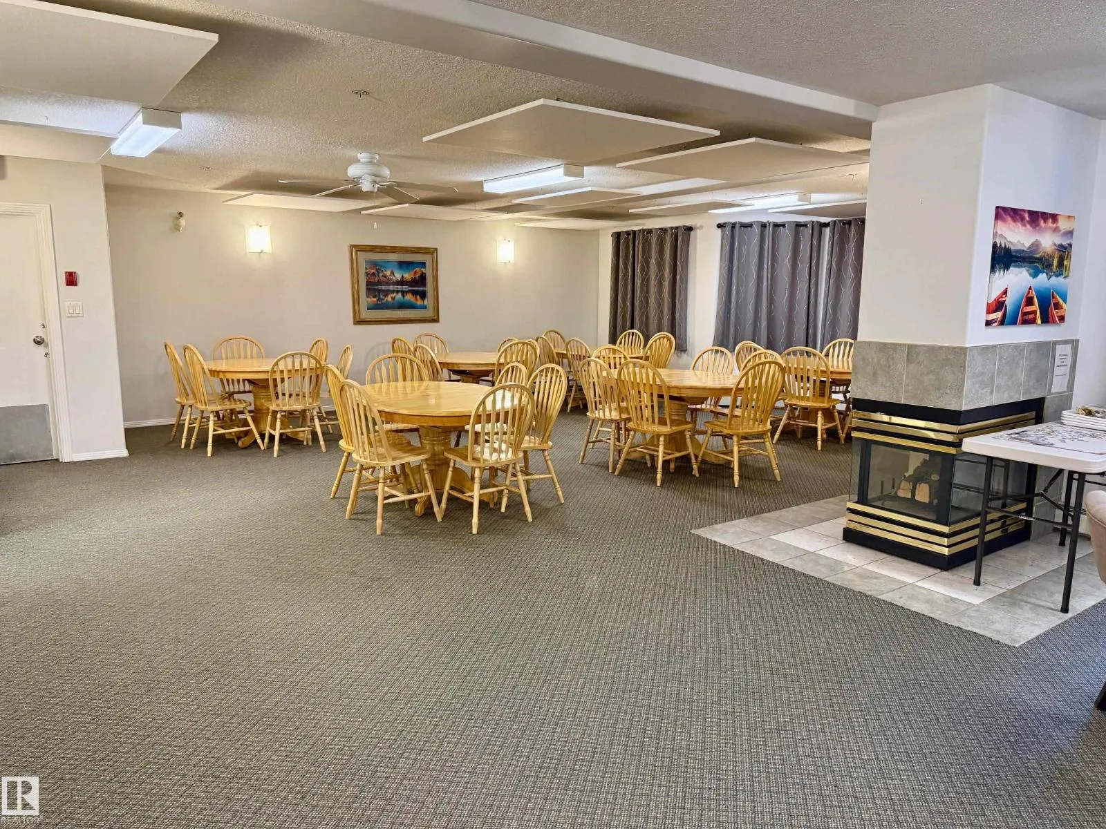 Welcome to this bright and updated 1-bedroom, 1-bathroom condo offering 663 sq. ft. of comfortable living space in a 55+ adult building. The home features brand new carpets, fresh paint, and laminate flooring throughout. The functional layout includes a spacious in-suite laundry room, a kitchen with built-in dishwasher, and a living room with corner gas fireplace and tiled surround. Large south-facing windows provide plenty of natural light and access to a private balcony. This well-maintained building includes an elevator, social room with kitchen, and heated underground parking with personal storage cage. Condo fees cover heat, water, building insurance for common areas, and exterior maintenance. Conveniently located directly across from Bonnie Doon Shopping Centre, with easy access to bus routes, the new LRT line, Bonnie Doon Leisure Centre, and Idylwylde Public Library. (id:27476)
