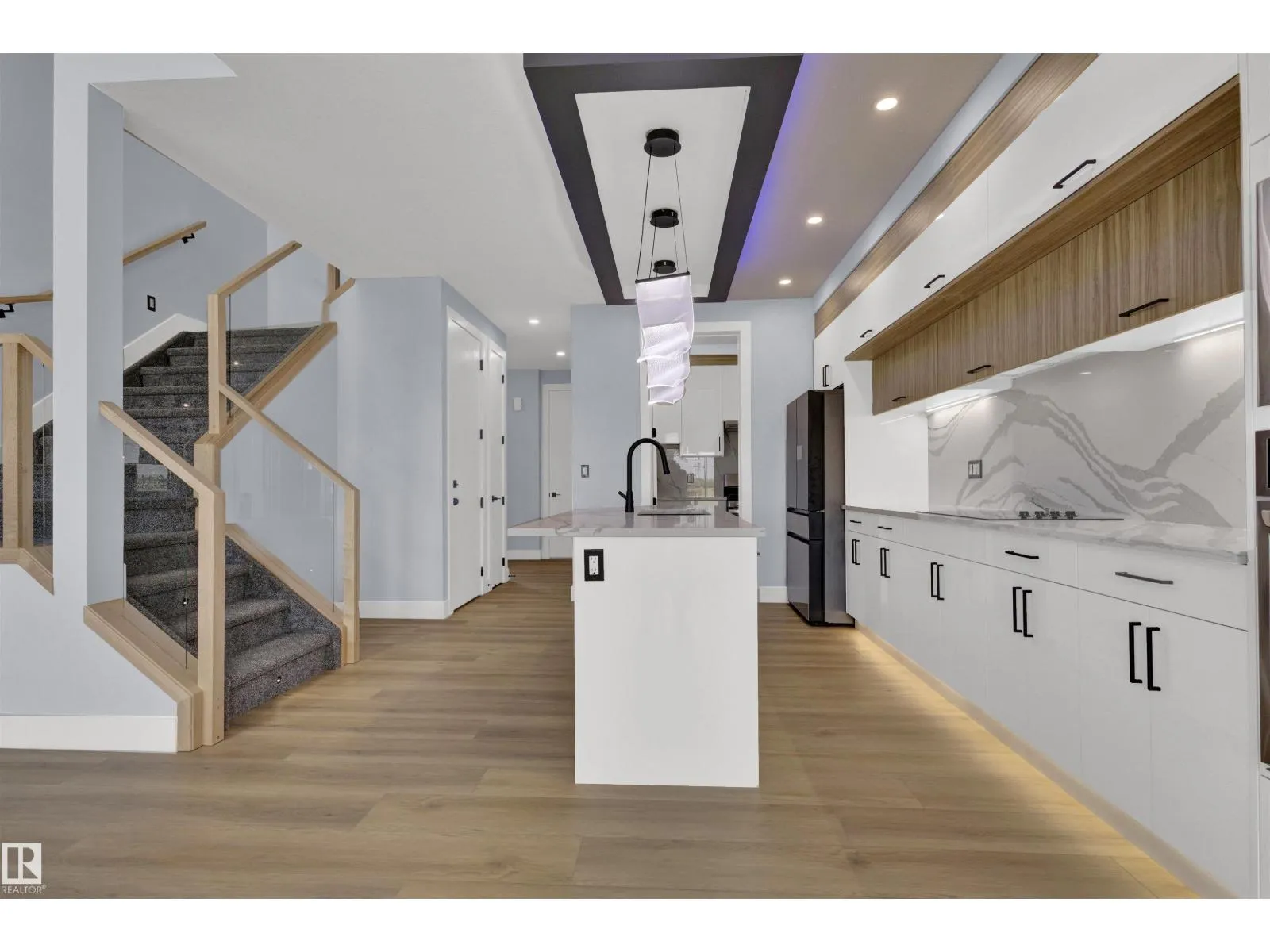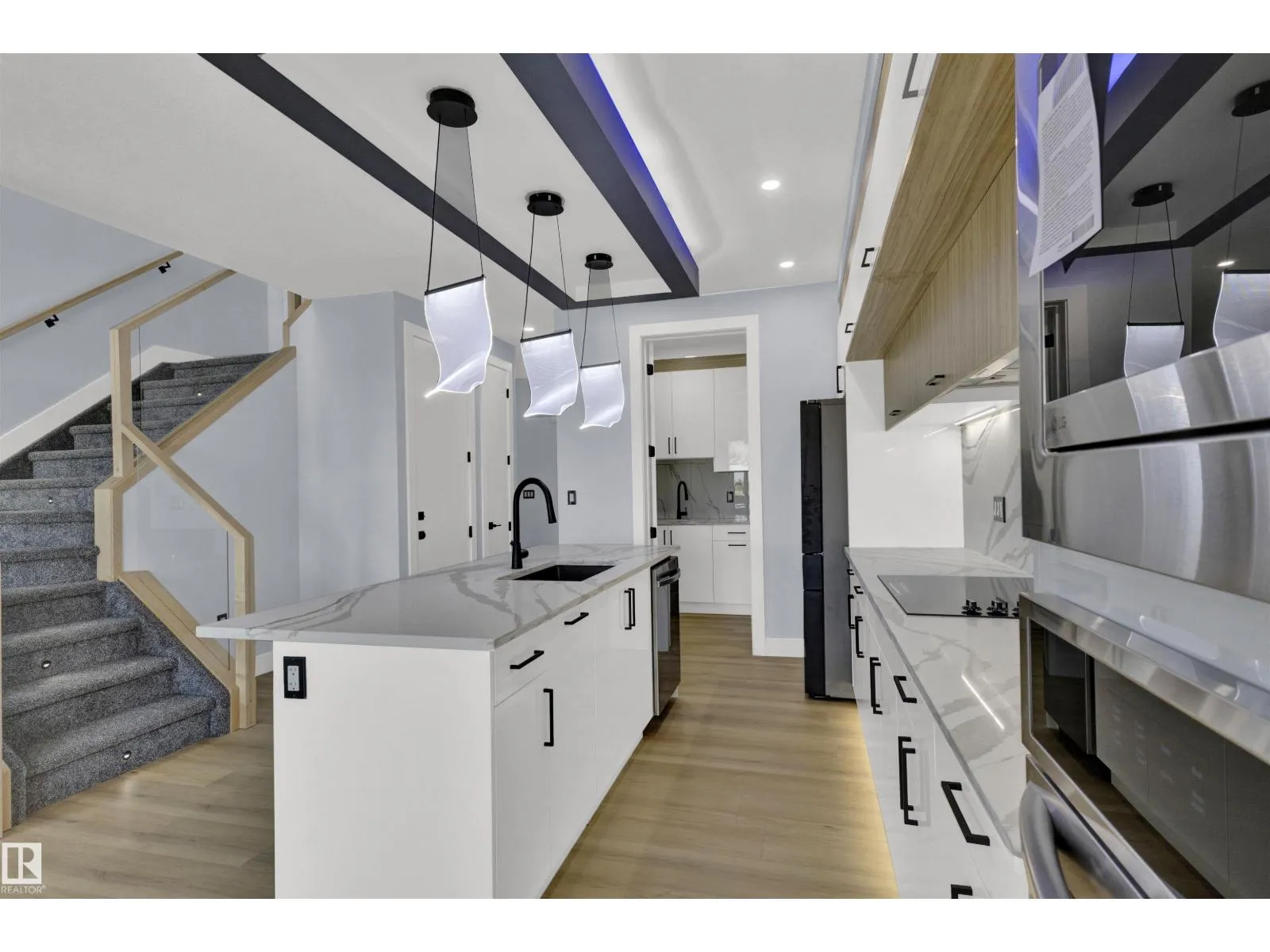 Welcome to this fully customized semi-detached home in the sought-after Gorman community of Edmonton! This stunning property features an open-to-below ceiling in the living room, a gourmet kitchen plus a separate spice kitchen, and a stylish half bath on the main floor. Upstairs, the spacious primary bedroom boasts a private balcony, walk-in closet, and luxurious 5pc ensuite. Youâll also find a versatile bonus room, two additional bedrooms, and convenient upstairs laundry. The finished basement offers a 2-bedroom legal suiteâperfect for extended family or rental income. Enjoy the completed deck, perfect for outdoor relaxation. Plus easy access to Anthony Henday Drive and nearby grocery stores, making daily life a breeze. This home blends comfort, elegance, and functionality in a prime locationâdonât miss it! (id:27476)