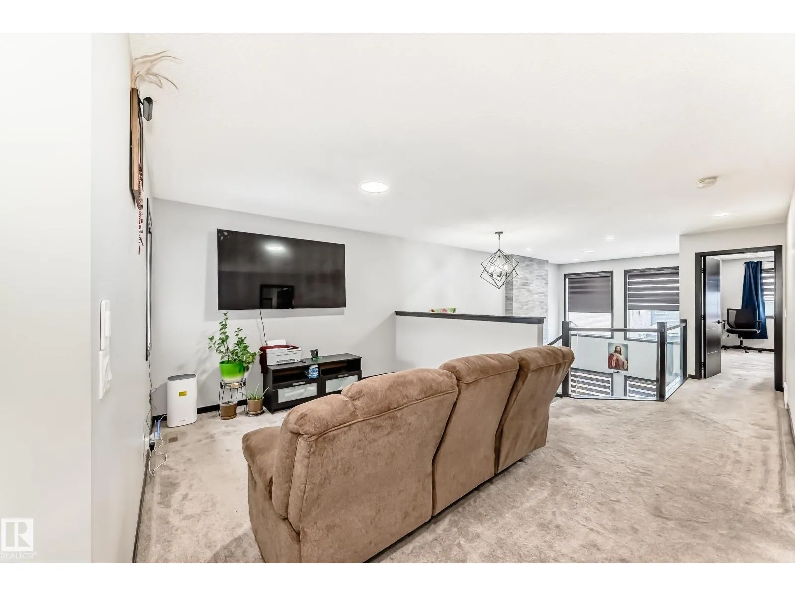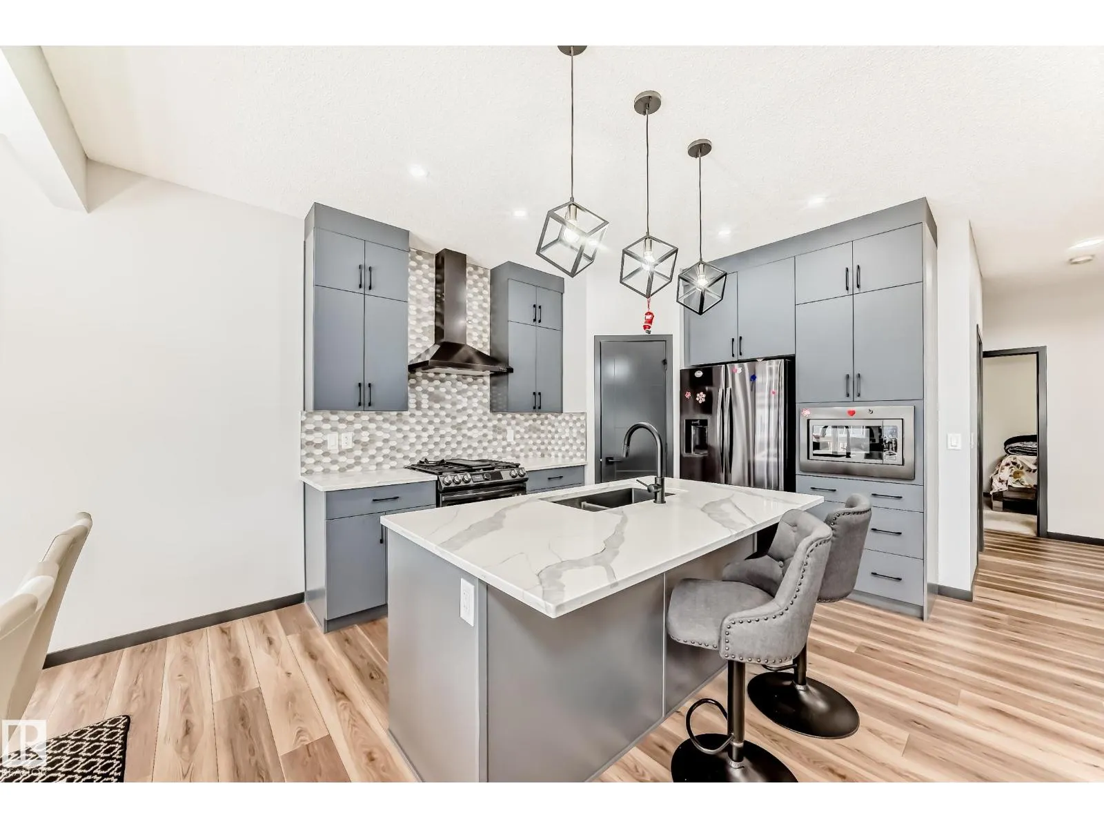 Welcome to this gorgeous single family home tucked away on a quiet street in the vibrant community of WALKER in Southwest Edmonton. The main floor features a large living room with OPEN TO BELOW design, designer kitchen with black appliances, bedroom and a full bathroom. The upper floor features a spacious bonus room, primary bedroom with 5pc ensuite, two other bedrooms, common bath and laundry. This home offers many upgrades CENTRAL AIRCONDITIONING, GLASS RAILING, HIGH END APPLIANCES, CULLUGHAN WATER PURIFIER, QUARTZ THROUGHT and much more. The basement with a SEPARATE ENTRANCE is ready for your future development plans. The beautiful backyard with a large deck is ideal for enjoying the evenings. This property is conveniently located to shopping, public transportation, schools, Anthony Henday and all other amenities. (id:27476)