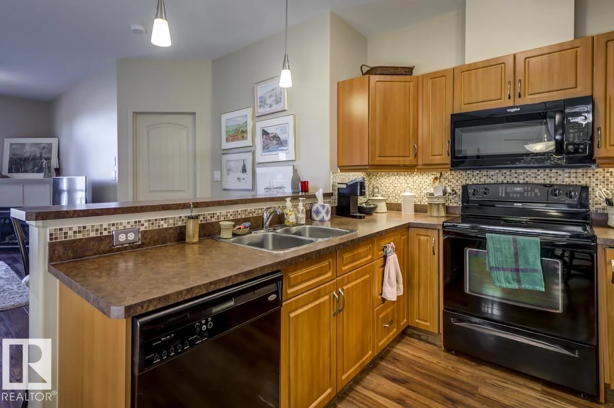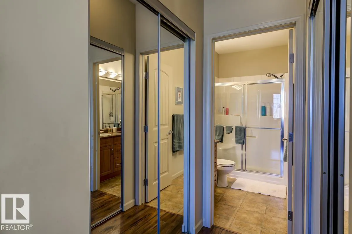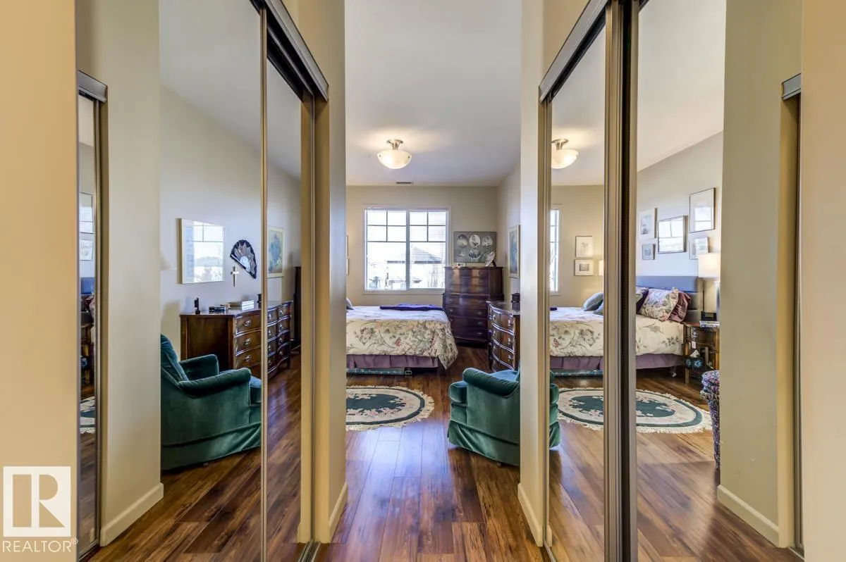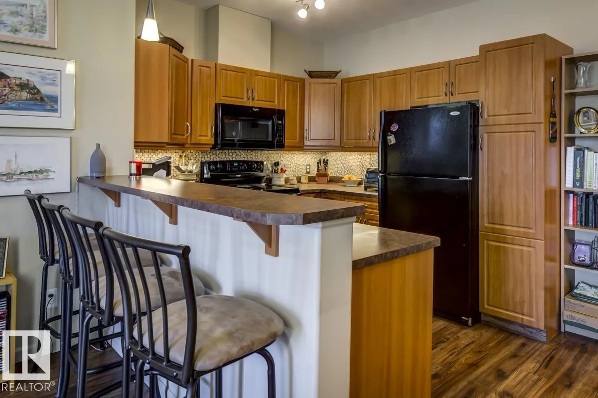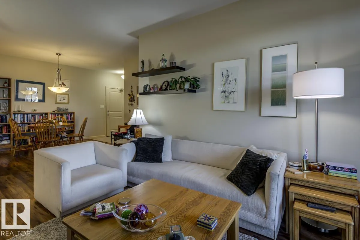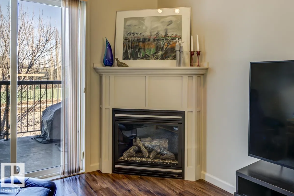Discover stylish, low-maintenance living in this beautifully maintained 2-bedroom condo offering 970 sq ft in Tradition at Riverside in sought-after Haddow. Located on the 2nd floor, this bright, inviting home features 9' ceilings, air conditioning, and a spacious open-concept layout perfect for relaxing or entertaining. The generous primary suite offers a 3-pc ensuite and ample closet space, while the second bedroom and full 4-pc bath provide flexibility for guests, family, or a home office. The kitchen includes an eating bar and abundant cabinetry. Enjoy the convenience of in-suite laundry and a titled underground parking stall. Step onto your private patio with gas lineâideal for summer BBQs or quiet evenings outdoors. Residents enjoy fantastic amenities including a fitness centre, guest suite, social rooms, and car wash. Condo fees include heat, water/sewer, and professional management. Perfectly located near the Terwillegar Rec Centre, schools, shopping, and transitâan exceptional place to call home! (id:27476)