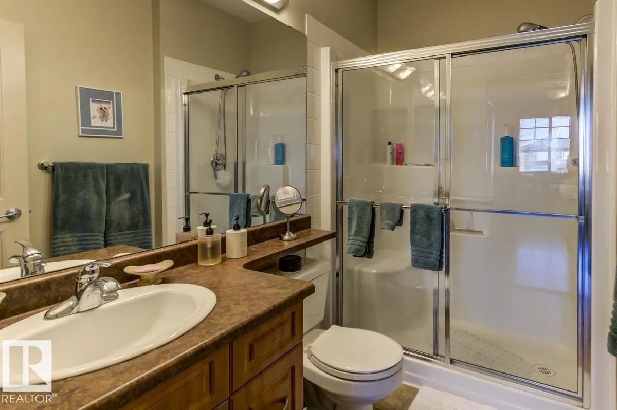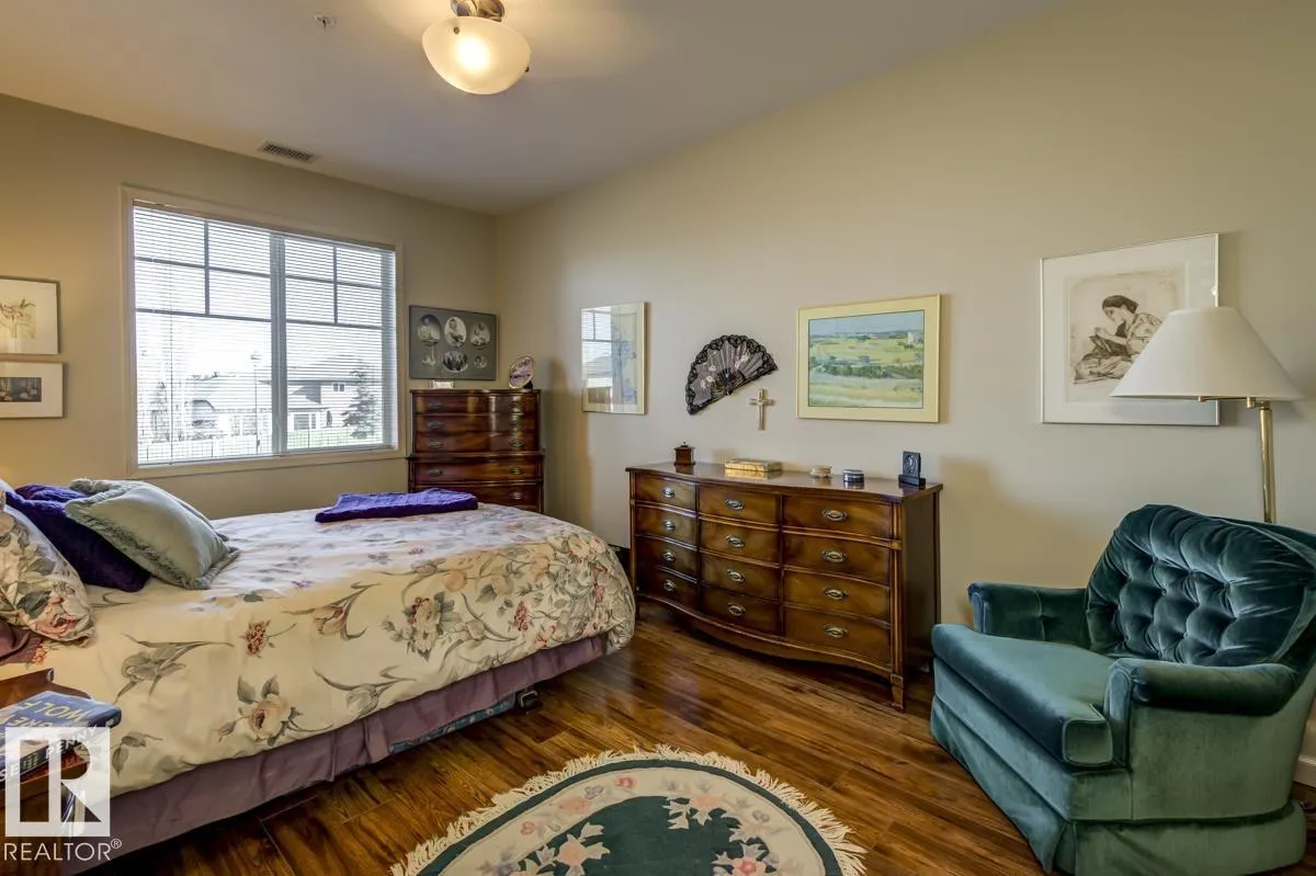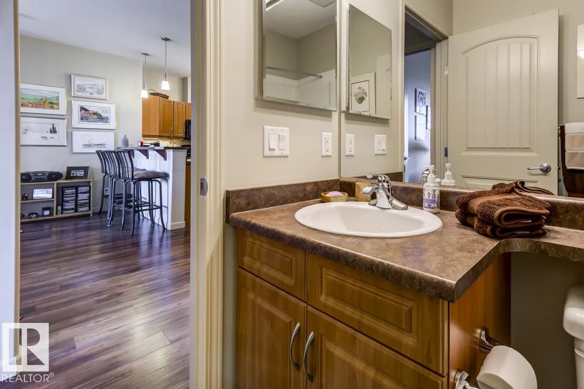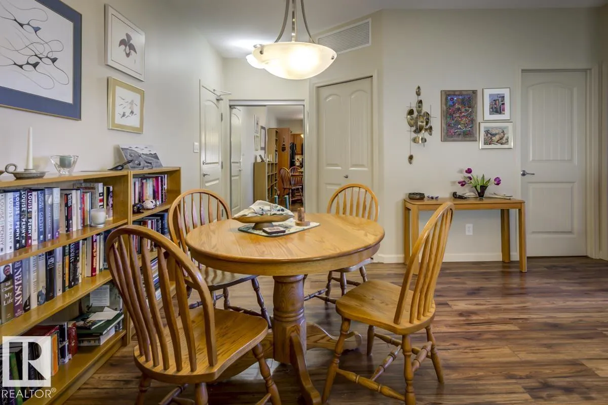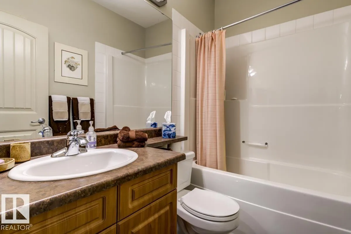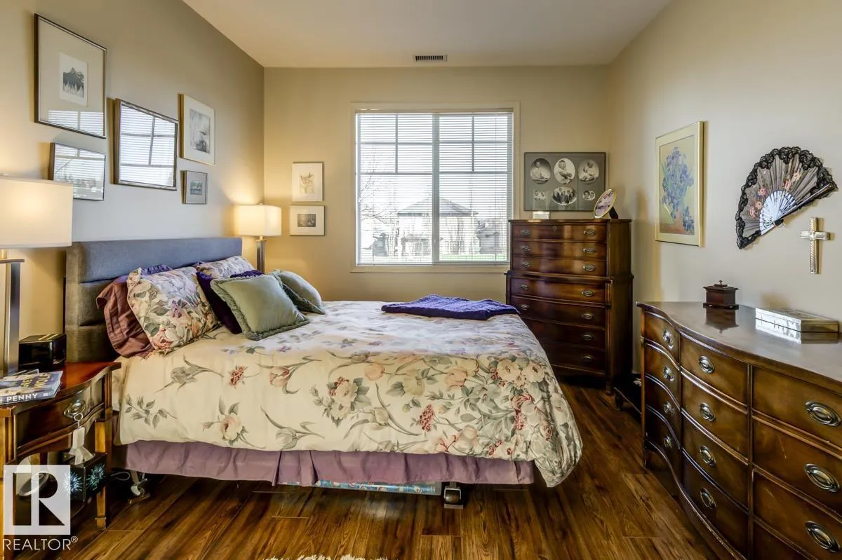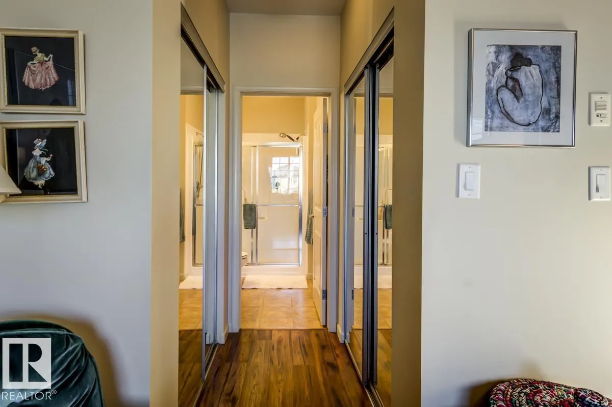 Discover stylish, low-maintenance living in this beautifully maintained 2-bedroom condo offering 970 sq ft in Tradition at Riverside in sought-after Haddow. Located on the 2nd floor, this bright, inviting home features 9' ceilings, air conditioning, and a spacious open-concept layout perfect for relaxing or entertaining. The generous primary suite offers a 3-pc ensuite and ample closet space, while the second bedroom and full 4-pc bath provide flexibility for guests, family, or a home office. The kitchen includes an eating bar and abundant cabinetry. Enjoy the convenience of in-suite laundry and a titled underground parking stall. Step onto your private patio with gas lineâideal for summer BBQs or quiet evenings outdoors. Residents enjoy fantastic amenities including a fitness centre, guest suite, social rooms, and car wash. Condo fees include heat, water/sewer, and professional management. Perfectly located near the Terwillegar Rec Centre, schools, shopping, and transitâan exceptional place to call home! (id:27476)