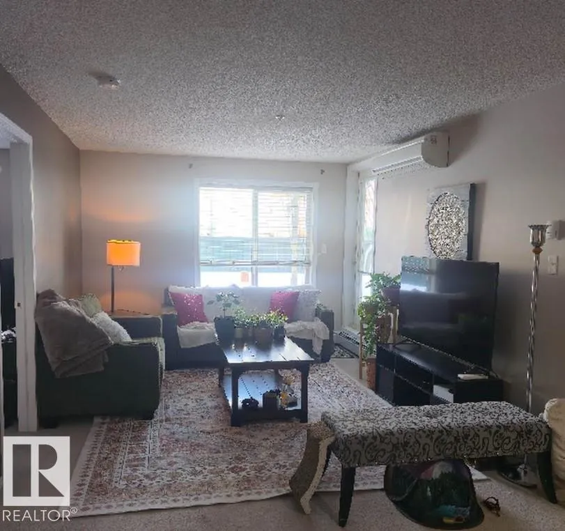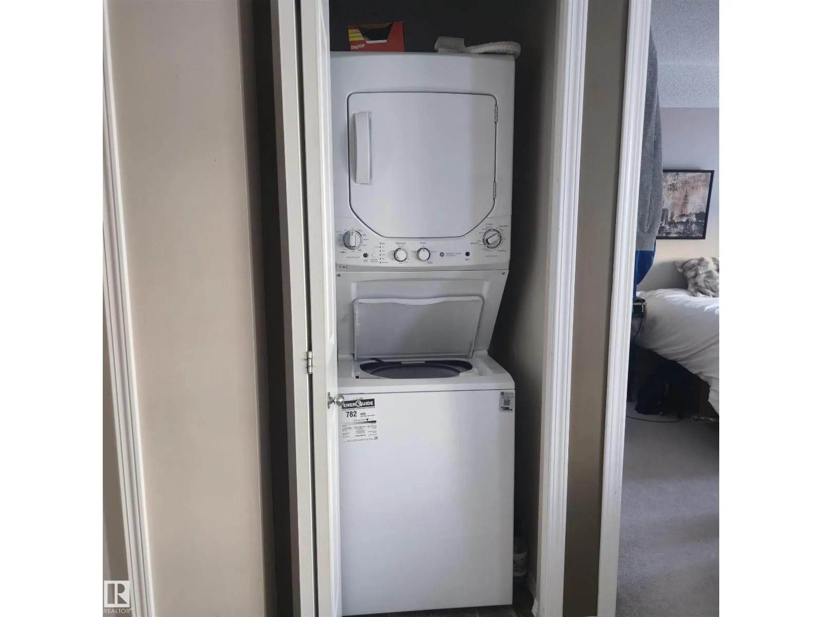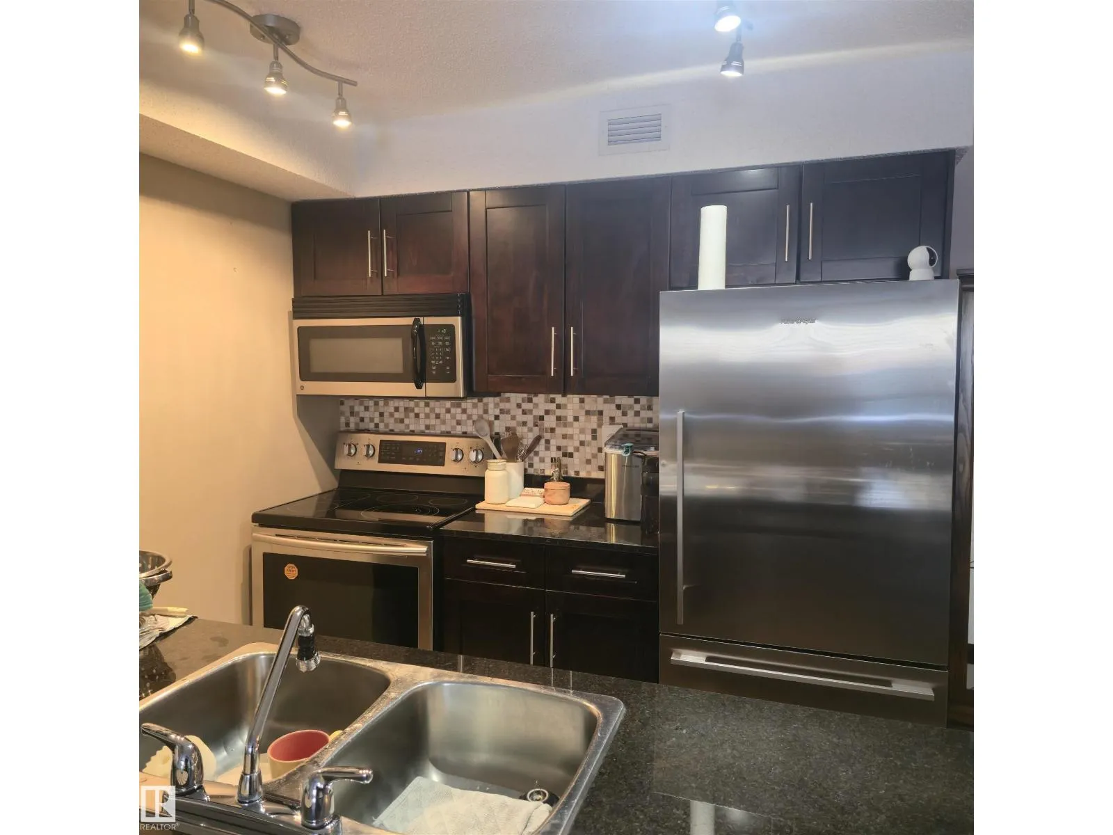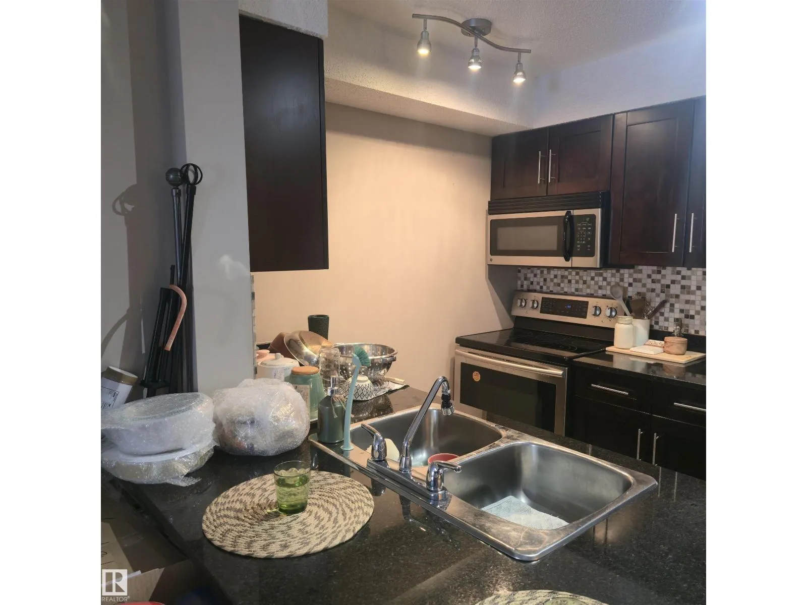 Perfect SW location in Rutherford for this amazing 2 bed, 2 bath PLUS den and underground parking. Walk to Superstore, Leopold's Pub, Starbucks, McDonalds, Shoppers Drug Mart and all the other amazing amenities that Heritage Valley Town Center has to offer. Open concept with bedrooms on either side of the living room creating privacy. Spacious modern kitchen with sit up island. Primary suite is fully equipped with walk through closet into a 4 piece ensuite bath. 2nd bedroom is a good size. 4 piece bathroom and in suite laundry. Flex room/den off of the kitchen could be used as an office making this one of the best units in the building. TWO parking stalls PLUS extra storage. AIR CONDITIONING is a PLUS for summer and the patio leads to a green space making it easy to walk your dog - yes, PETS are PERMITTED with board approval. Walking trails, parks, schools, , transit and daycare are are steps away. LOW CONDO FEES include heat and water. EXCELLENT VALUE for prime SW Edmonton! Quick possession! (id:27476)