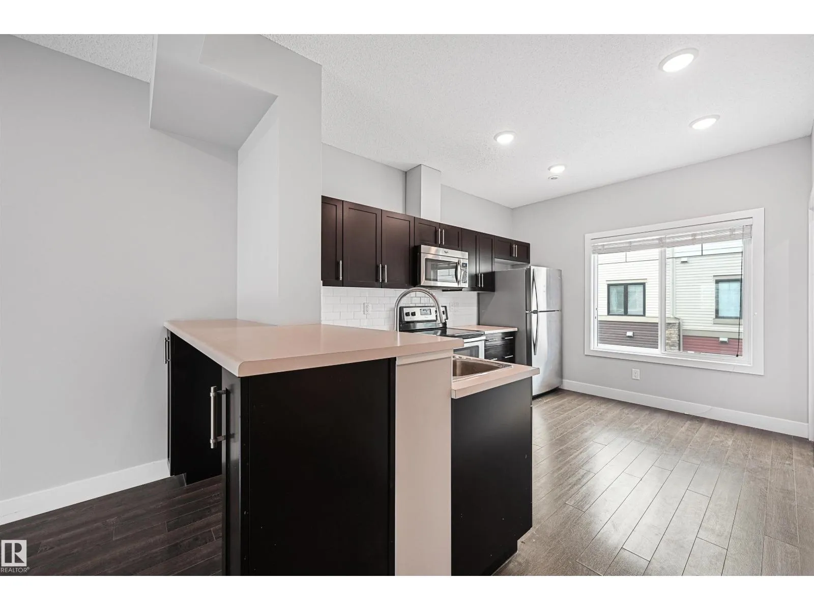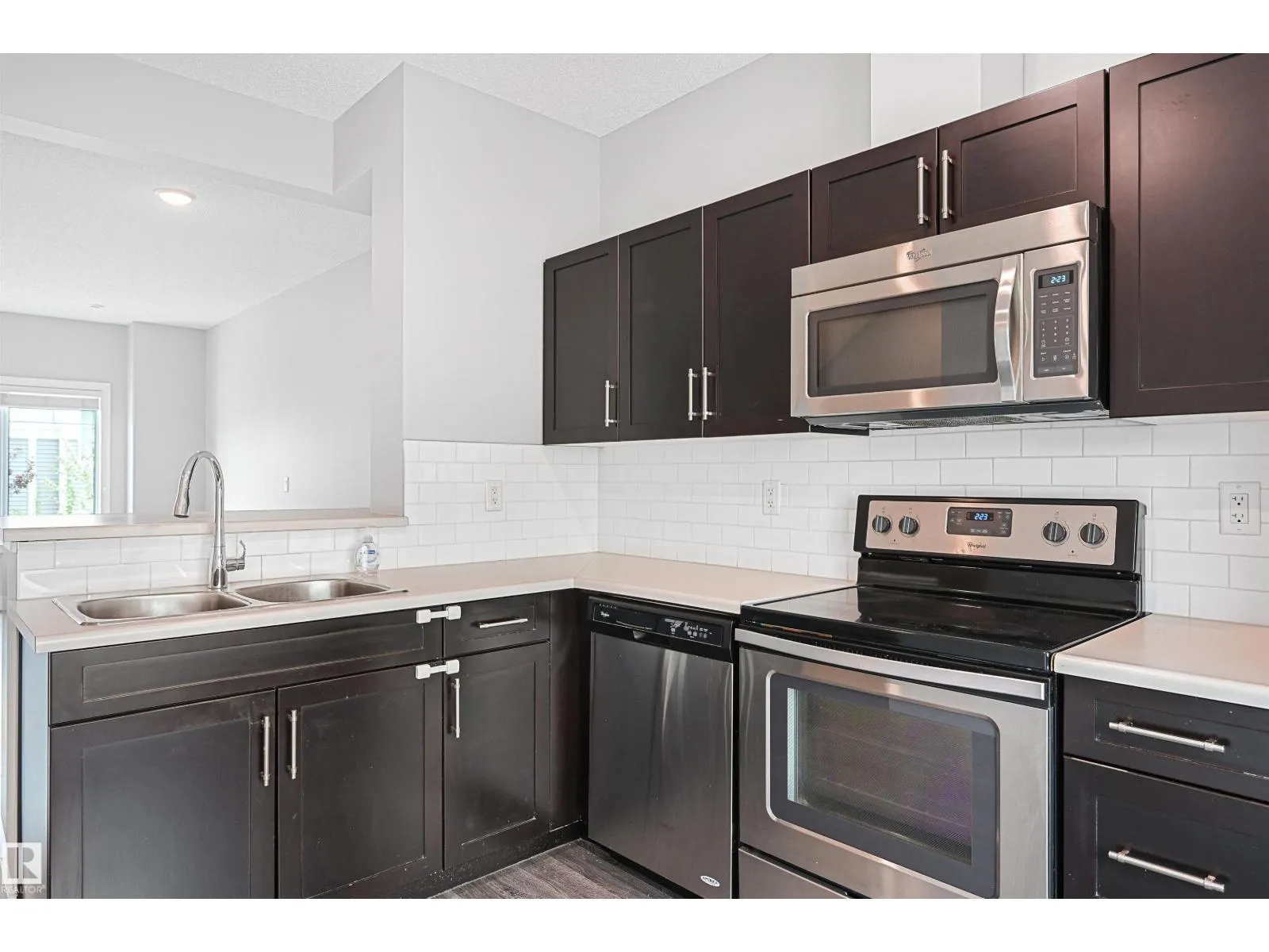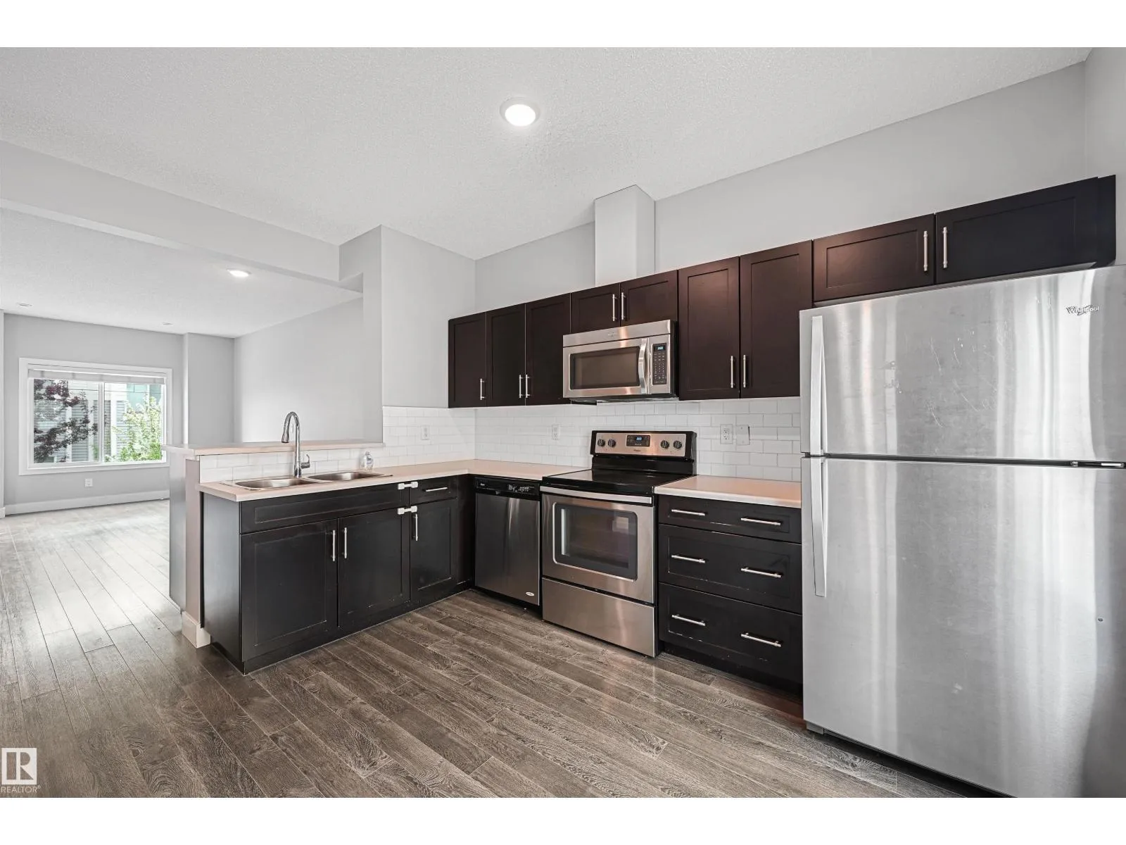 Well maintained and spacious 2 bedroom/2.5 bath townhome in desirable Walker. Main floor boasts 9' ceilings & quality finishings. The gorgeous kitchen has SS appliances, walk-in pantry & eating bar. Living room features an attached balcony to enjoy the fresh air & green space. The main level is equipped with a 2.5 bath & vinyl flooring. Upper level boasts 2 well-sized bedrooms. Primary bedroom has 3pc ensuite & walk in closet. Plus 2nd 4pc bathroom upstairs & laundry. Other features include a single attached garage, a flex room for office or play room, plenty of storage, energy-efficient mechanical including tankless hot water for a lower utility bill. This well maintained complex offers visitor parking & is conveniently located close to shopping, walking trails & lake. Quick proximity to Anthony Henday, South Common, schools & public transportation. A must see! (id:27476)