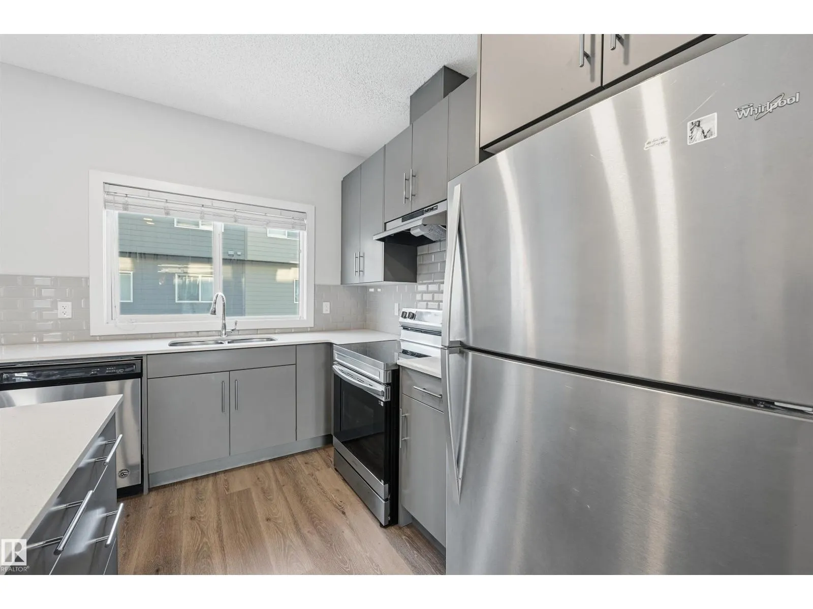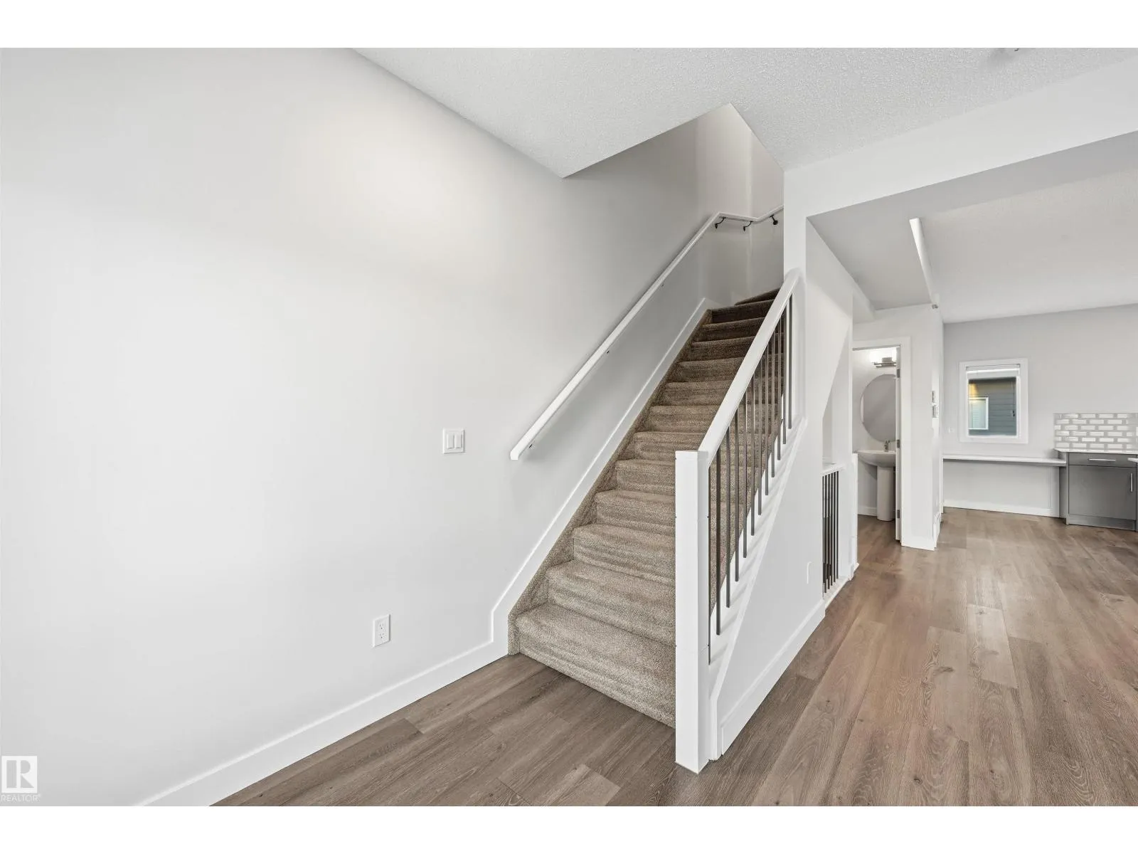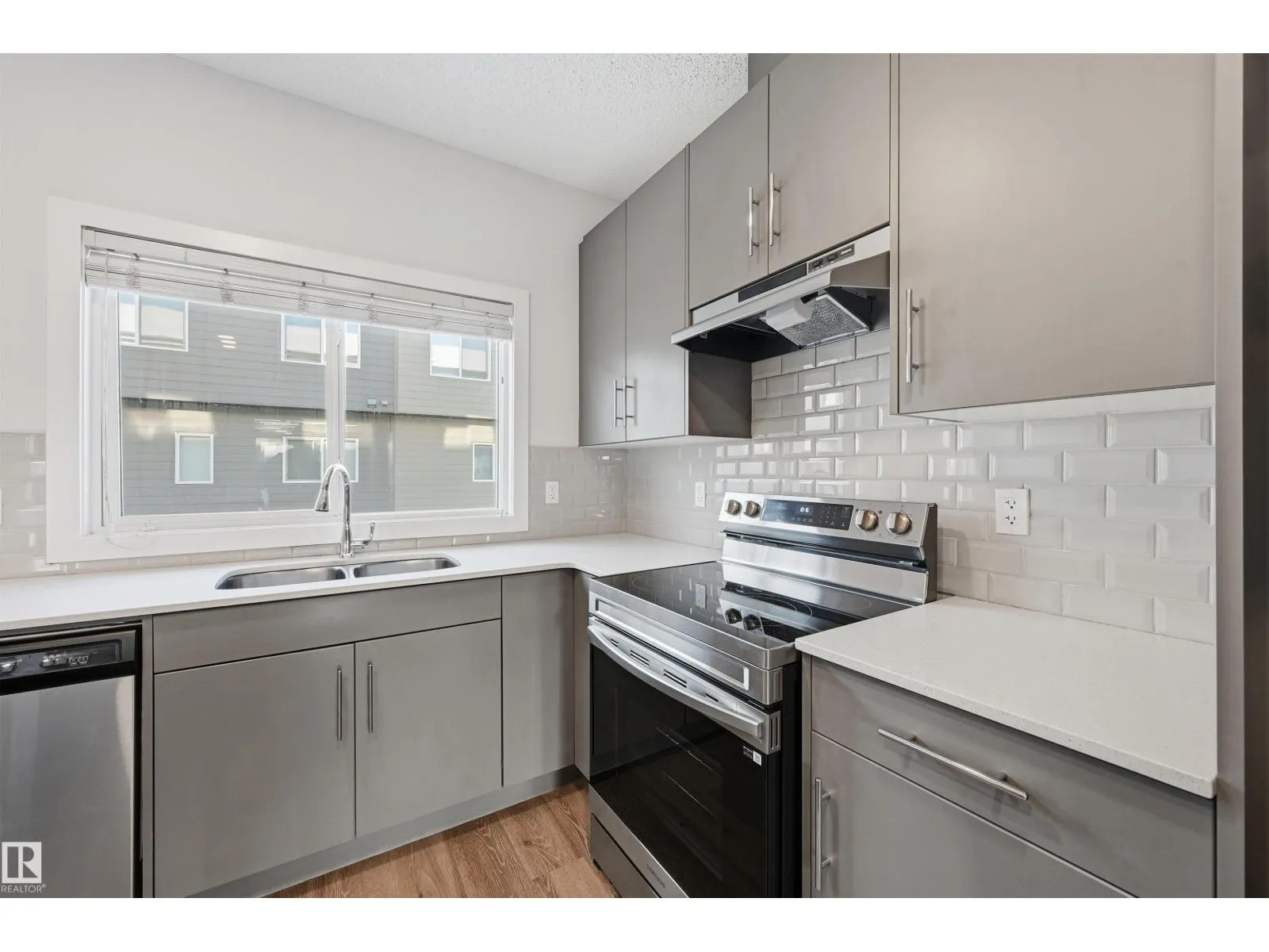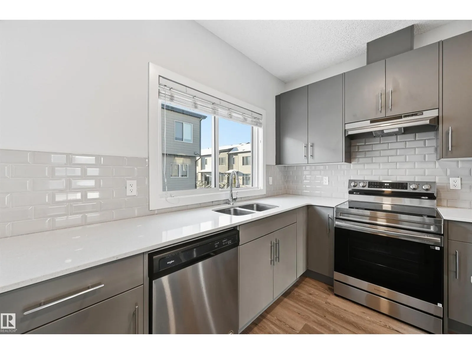 Bright, modern & spacious 3 bed/2.5 bath townhouse w/ double attached garage in the desirable Walker neighborhood. 1600 sf total living space. Perfect for 1st time home owners or investors! Main floor features 9' ceilings, vinyl plank floors & a roomy living rm filled with natural light. Kitchen offers a functional layout, stainless steel appliances, quartz countertops, tons of counter space, walk-in pantry, eating bar, & built in desk. Upper level also has 9' ceilings & large primary bedrm w/ 3pc ensuite & walk in closet. Two other well sized bedrms, 4 pc main bath & laundry complete this level. Ground floor flex room w/ large window is perfect for an office, play rm, exercise area, or extra storage space! Energy-efficient mechanical including HRV & tankless hot water for a lower utility bill. This well maintained complex offers visitor parking and nearby walking trails & lake. Conveniently close to shopping, schools & public transit. Quick access to commuter routes incl Henday! (id:27476)
