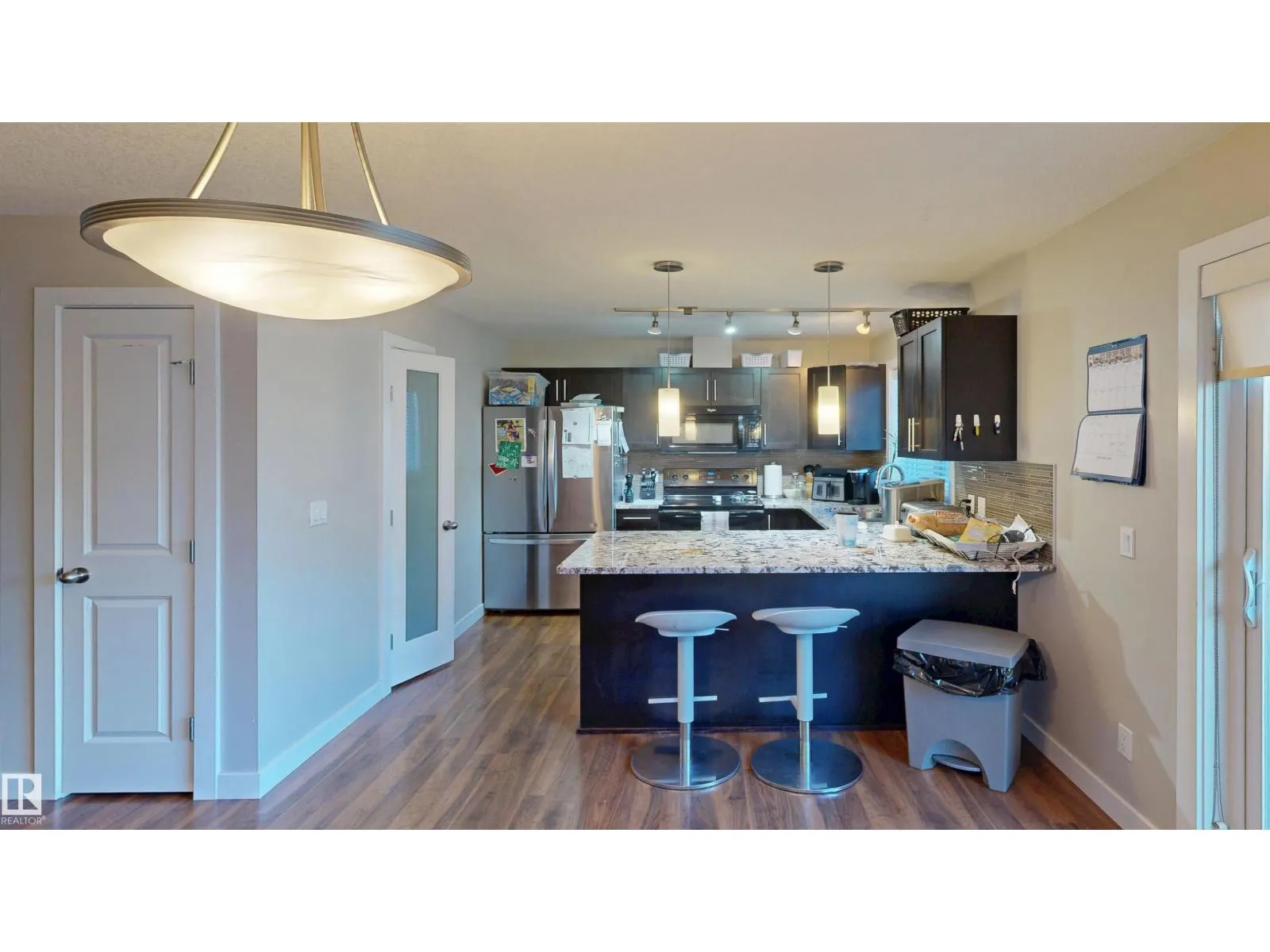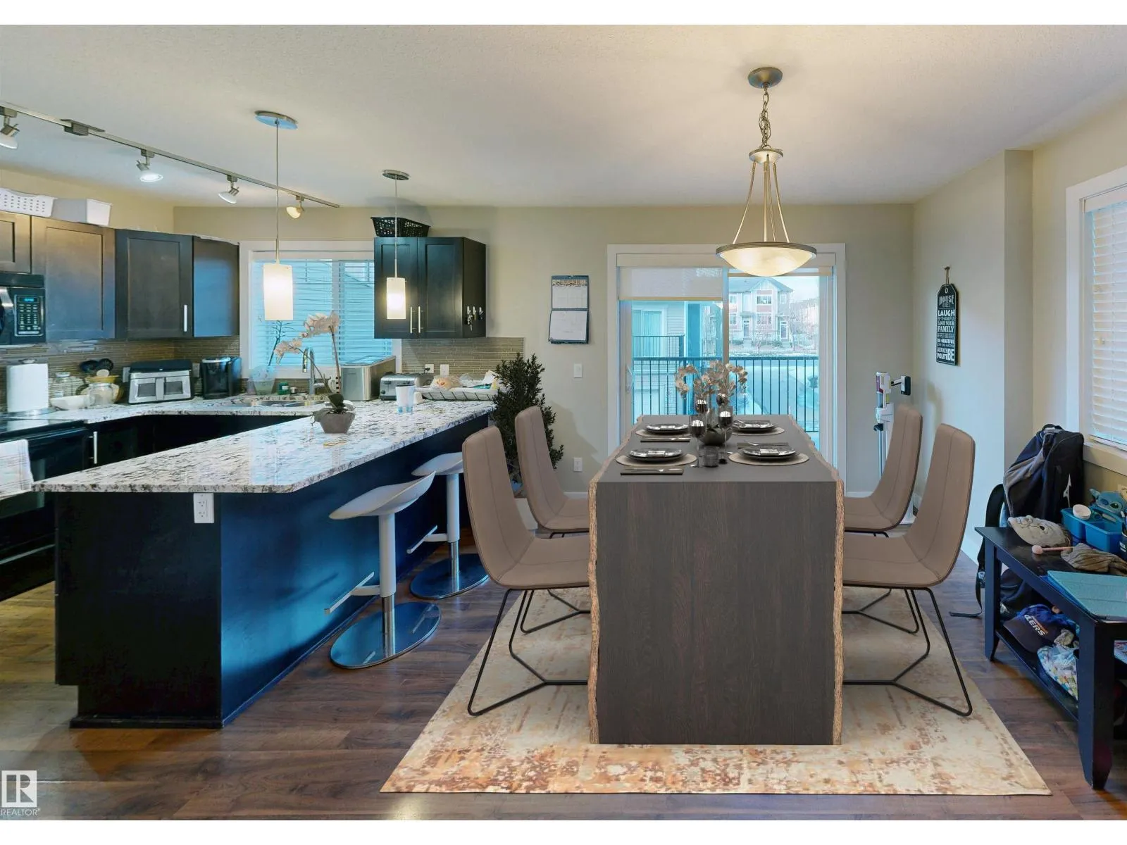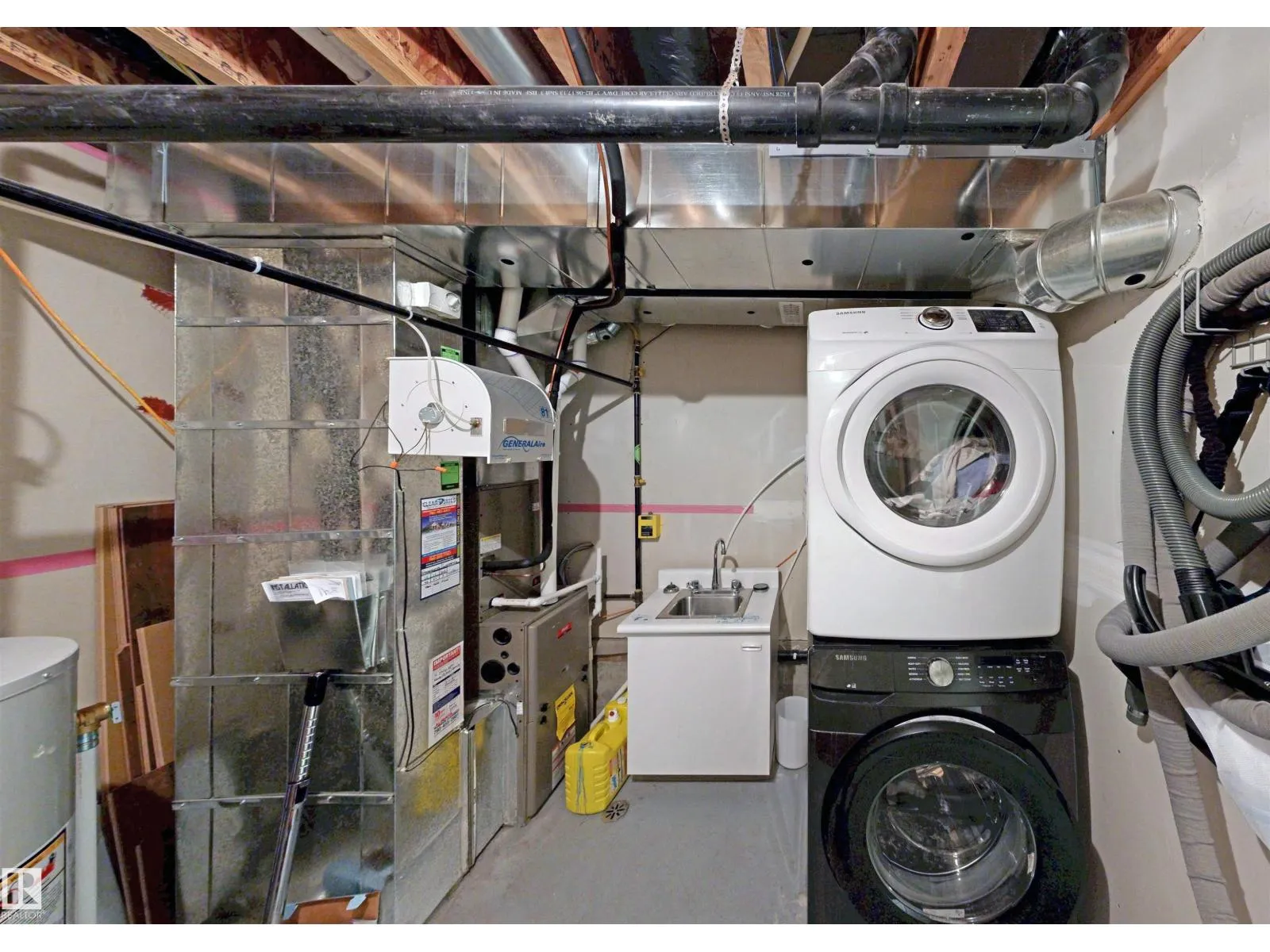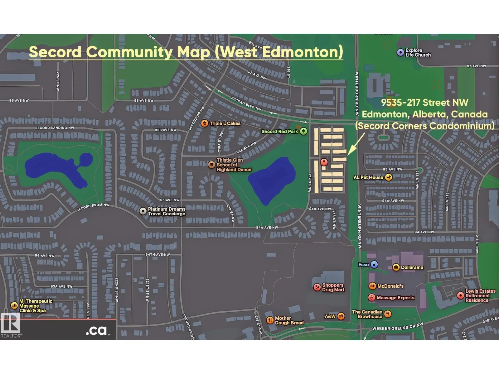 Nice 2-Storey Townhouse Condo End Unit in Secord Corners -- great for first-time home Buyers! Unit features: * 3 Bedrooms & 2.5 Baths * Feature Glass Stairway Divider Wall * Nicely Carpeted Staircases * Upgraded Cabinetry * Granite Countertops * Stainless Steel & Black Appliances * Balcony Access Off Kitchen / Dining Room (With Gas BBQ Outlet) * Sizeable Primary Bedroom with Full En Suite Bathroom and Walk-in Closet * Air Conditioning * Built-in Vacuum System * New Hot Water Tank * Attached and Oversized Double Attached Garage with Basement Access. Secord Corners Condominium is a quality 2013-built complex by Footprint Developments & professionally managed by CORE Management. Over $480K reserve fund (Feb. 2026) with current condo documents package available for review. 45-day possession. Located in West Edmonton (Community of Secord) with easy access to Winterburn Road, Stony Plain Road, Retail, Professional Services, Ranch Golf & Country Club, Whitemud Drive, & Anthony Henday Drive. (id:27476)