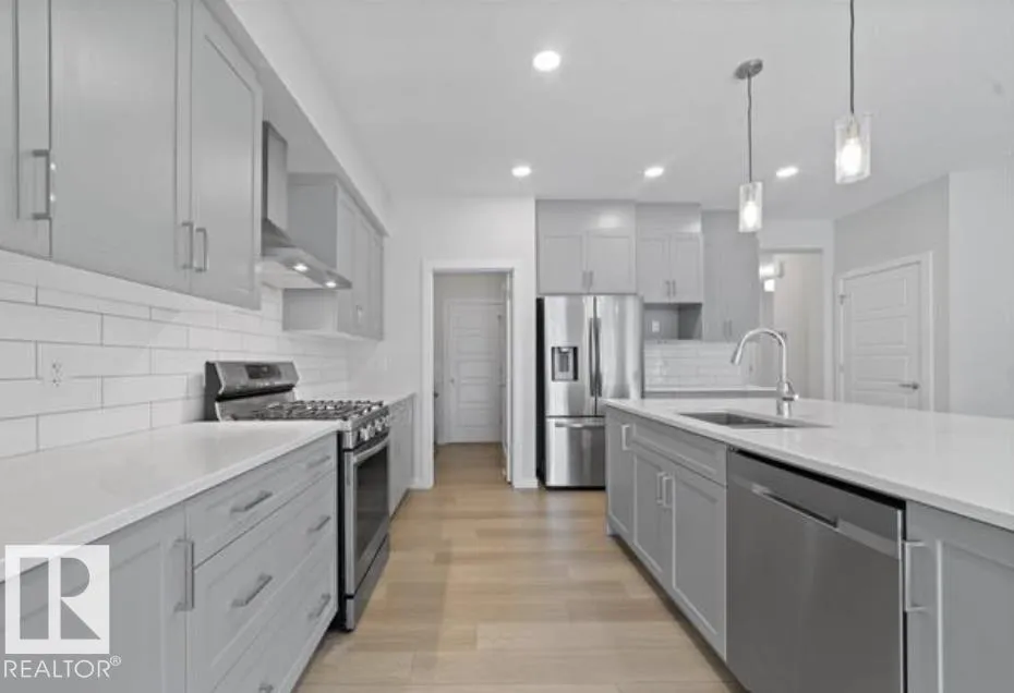 Welcome home â Iâve been waiting for you. Iâm a brand new custom-built home in the beautiful community of The Uplands, Edmonton, offering 2,356 sq ft of thoughtfully designed living space. Inside, youâll find 3 bedrooms, 2.5 bathrooms, a bright living room with a cozy fireplace and large window, plus a spacious dining area perfect for gathering. My upgraded kitchen features stunning quartz countertops, modern cabinets, and a pantry, along with a separate spice kitchen for all your cooking needs. The main floor boasts elegant 9-ft ceilings, while upstairs I offer the convenience of laundry and comfortable bedrooms designed for relaxing. I also come with a side entrance to the basement, giving you great future potential. On the outside, Iâm dressed with stone accents, premium vinyl siding, and welcoming concrete steps. Best of all, Iâm just steps from a pond, scenic walking trails, a creek, and beautiful green space. Iâm more than a house â Iâm a place to call home. (id:27476)