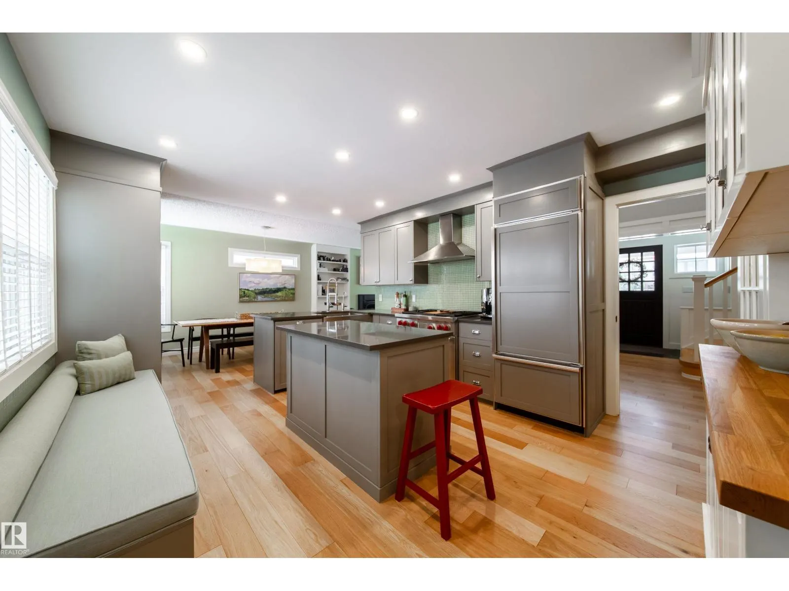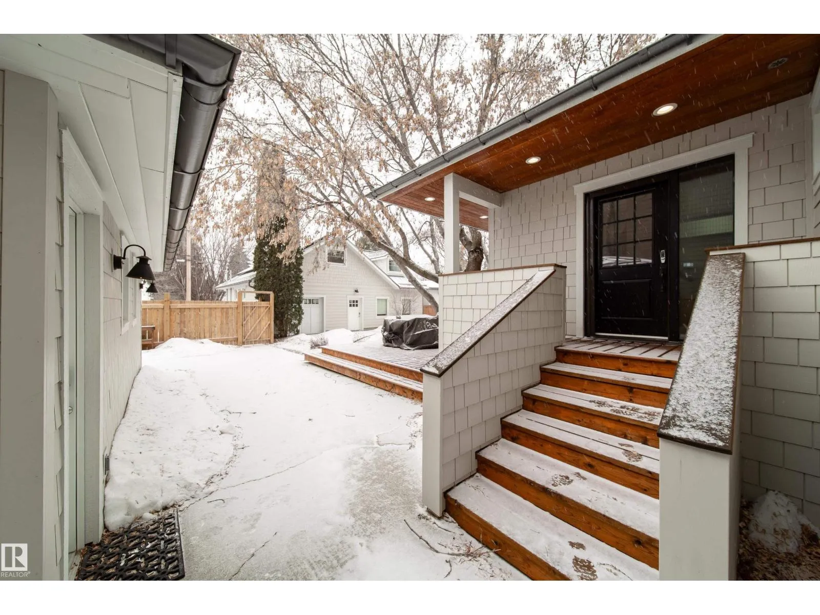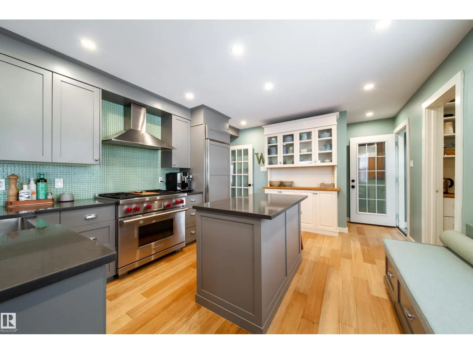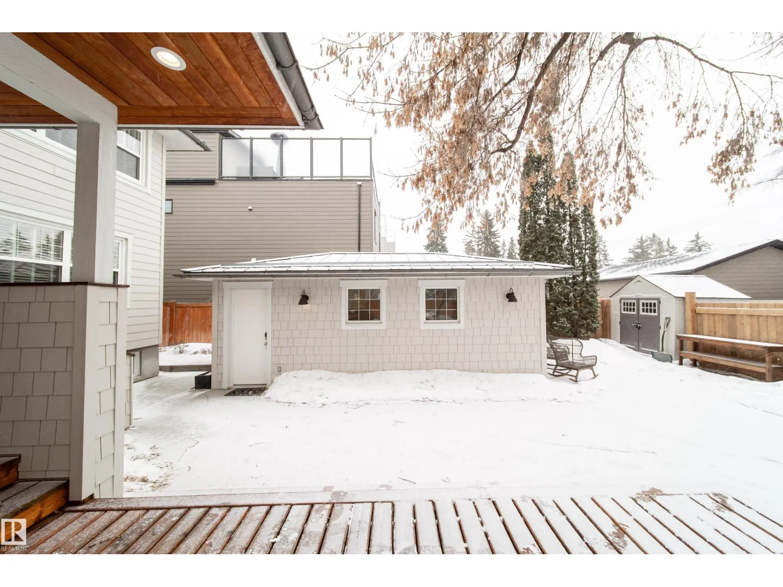 Exceptional Windsor Park home just minutes from the University of Alberta and river valley trails. This upgraded 5 bedroom, 4 bath residence offers premium finishes, energy efficiency and rare flex spaces. Steam shower in 4 pce. bathrm. Main floor features new engineered hardwood, Vermont Castings wood-burning fireplace and heated tile floors at front and rear entries. Chefâs kitchen with Wolf gas range + griddle, Fabre hood fan, Sub-Zero fridge and wine fridge, Miele dishwasher and walk-in pantry. Energy upgrades include 10 kW solar panels, dual furnaces, dual A/C and a durable 10 mm metal clad roof with European Lindab eaves. Fully landscaped yard with underground irrigation, cedar strip hot tub, new fencing and dual RV parking. Heated triple detached garage with vaulted loft, 3 overhead doors and 220V EV charger. Separate heated detached studio with French doors ideal for office, gym or art space. Prime location close to the University of Alberta, parks, schools and amenities. Exceptional home. (id:27476)