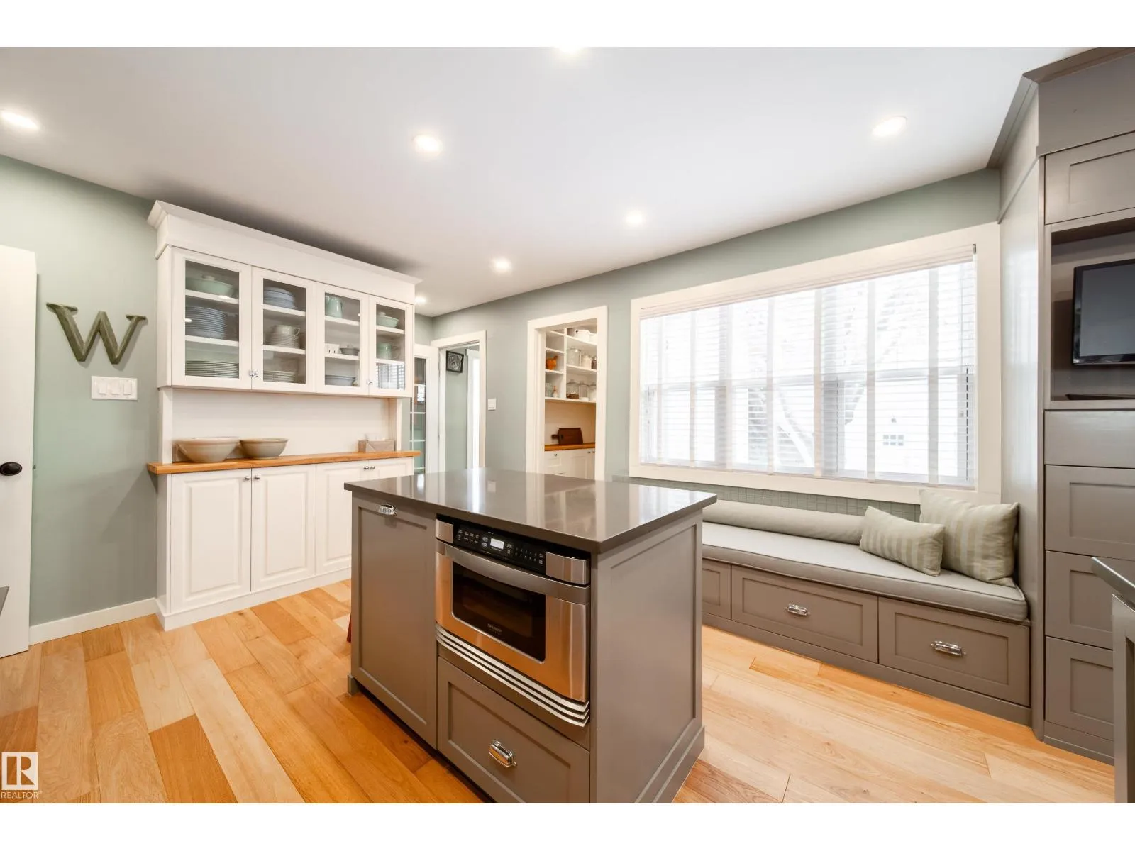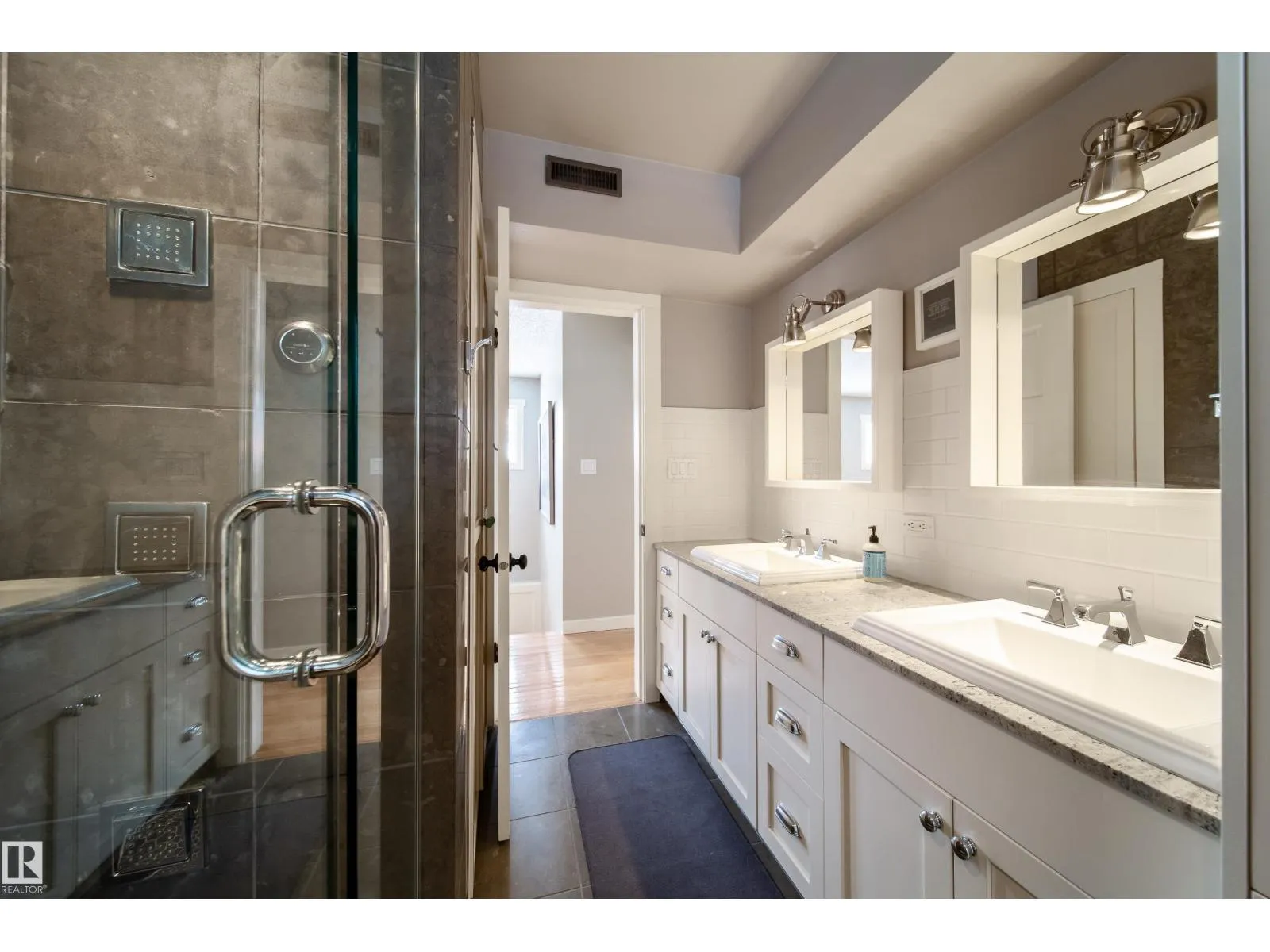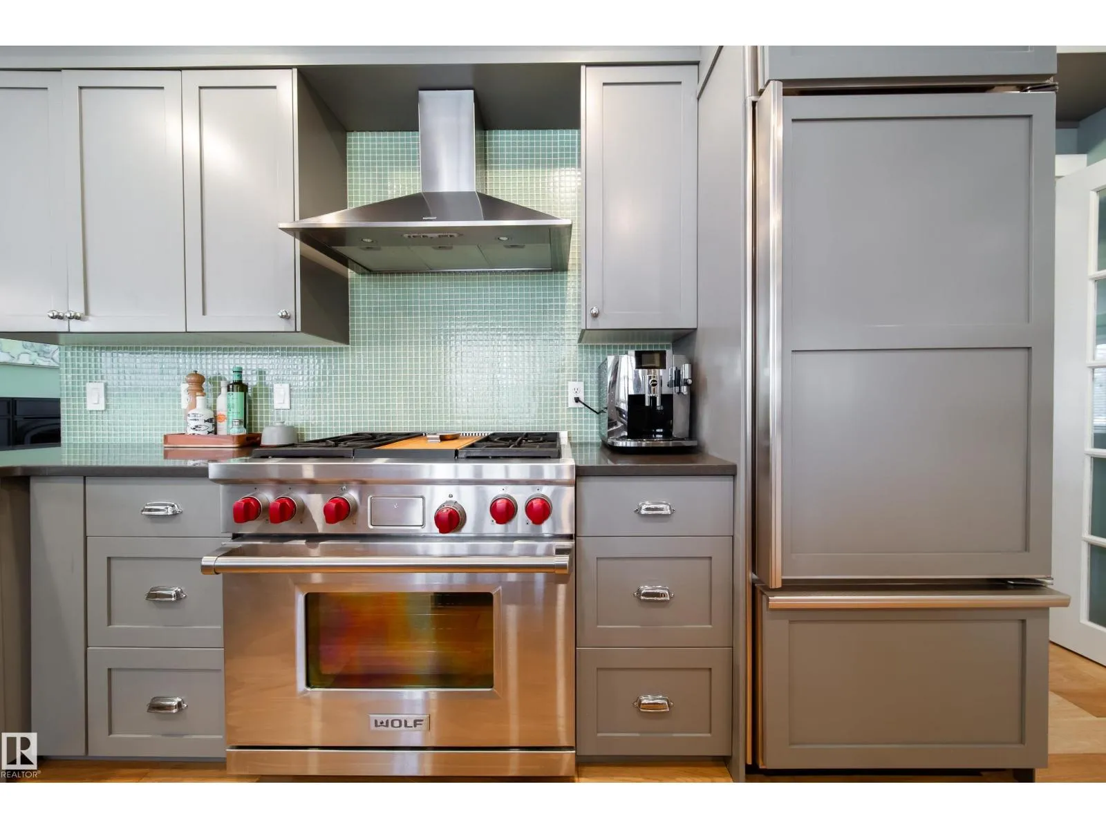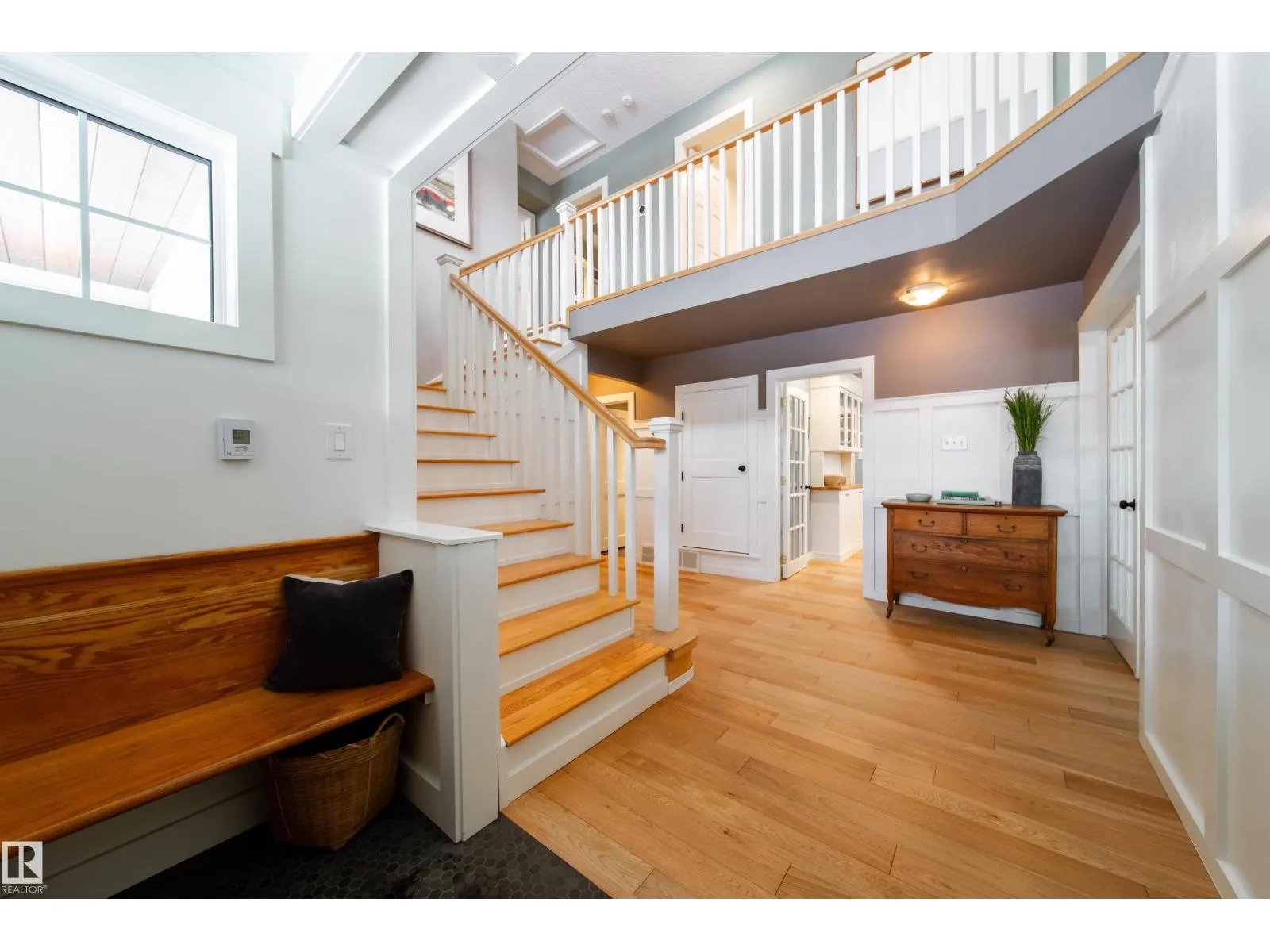 Exceptional Windsor Park home just minutes from the University of Alberta and river valley trails. This upgraded 5 bedroom, 4 bath residence offers premium finishes, energy efficiency and rare flex spaces. Steam shower in 4 pce. bathrm. Main floor features new engineered hardwood, Vermont Castings wood-burning fireplace and heated tile floors at front and rear entries. Chefâs kitchen with Wolf gas range + griddle, Fabre hood fan, Sub-Zero fridge and wine fridge, Miele dishwasher and walk-in pantry. Energy upgrades include 10 kW solar panels, dual furnaces, dual A/C and a durable 10 mm metal clad roof with European Lindab eaves. Fully landscaped yard with underground irrigation, cedar strip hot tub, new fencing and dual RV parking. Heated triple detached garage with vaulted loft, 3 overhead doors and 220V EV charger. Separate heated detached studio with French doors ideal for office, gym or art space. Prime location close to the University of Alberta, parks, schools and amenities. Exceptional home. (id:27476)
