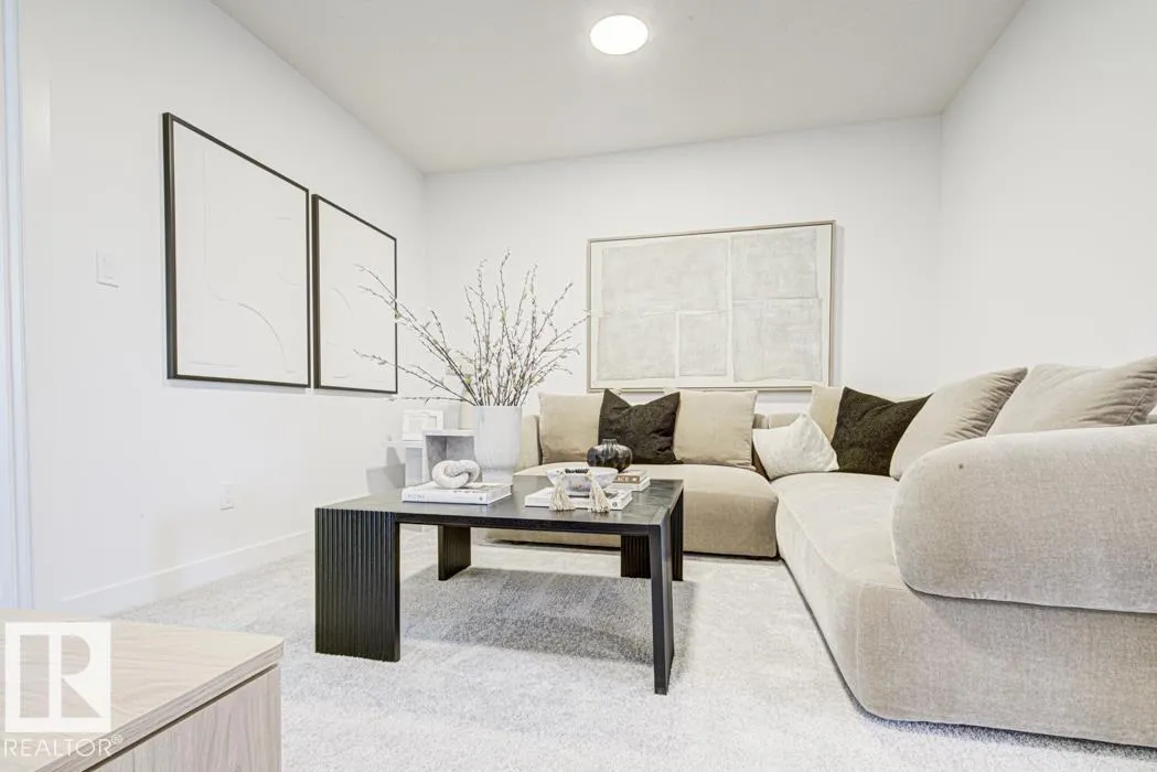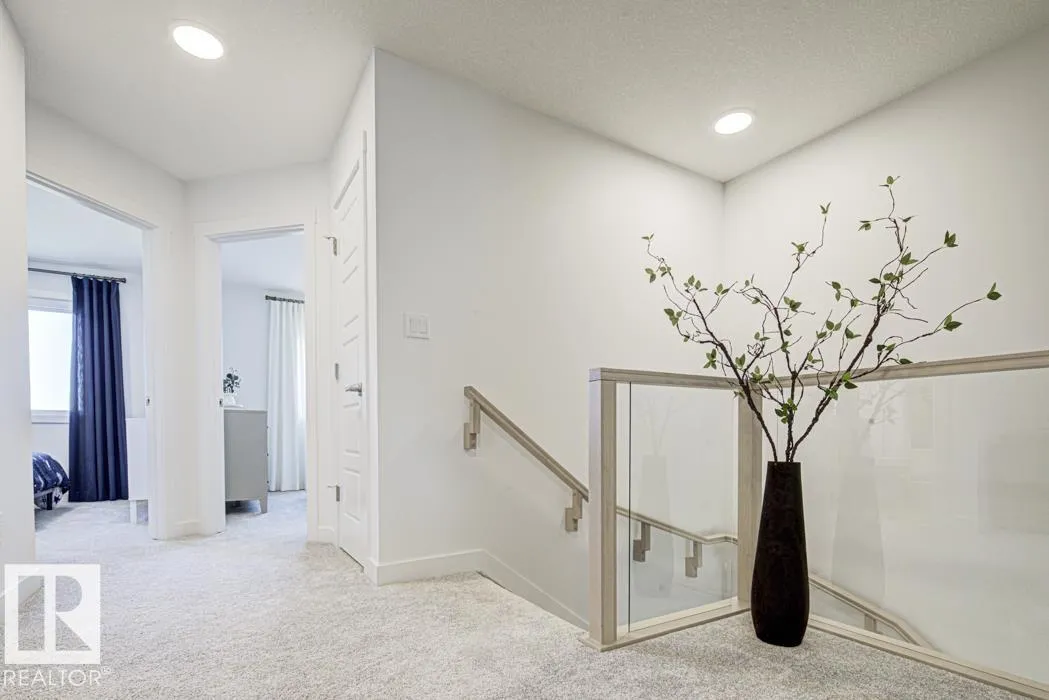 Built by Sterling Homes, this front-attached home in College Woods at Lakeview offers bright, modern living in a quiet, nature-rich community. Triple pane windows and 9â ceilings create an open main floor, beginning with a welcoming foyer and flexible denâperfect for a home office or playroom. The kitchen features quartz counters, a large island with pendant lighting, ceiling-height cabinetry, a chimney hood fan, built-in microwave, full-height backsplash, and a corner pantry. The great room includes an electric fireplace, while the dining nook and sliding patio doors bring in plenty of natural light. Upstairs, the primary suite offers a substantial walk-in closet and a luxurious 5-piece ensuite with a freestanding tub, double sinks, and a glass-door shower. A central bonus room, upper-floor laundry, full bath, and two additional bedrooms complete the level. With luxury vinyl plank flooring, upgraded railings, a separate side entrance, a garage with floor drain, and basement rough-ins, this has it all! (id:27476)
