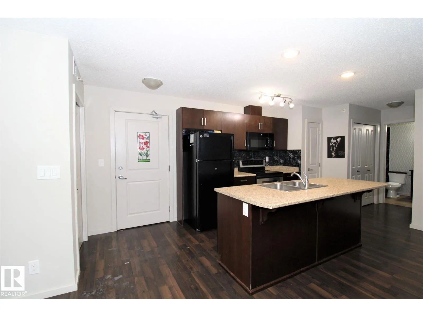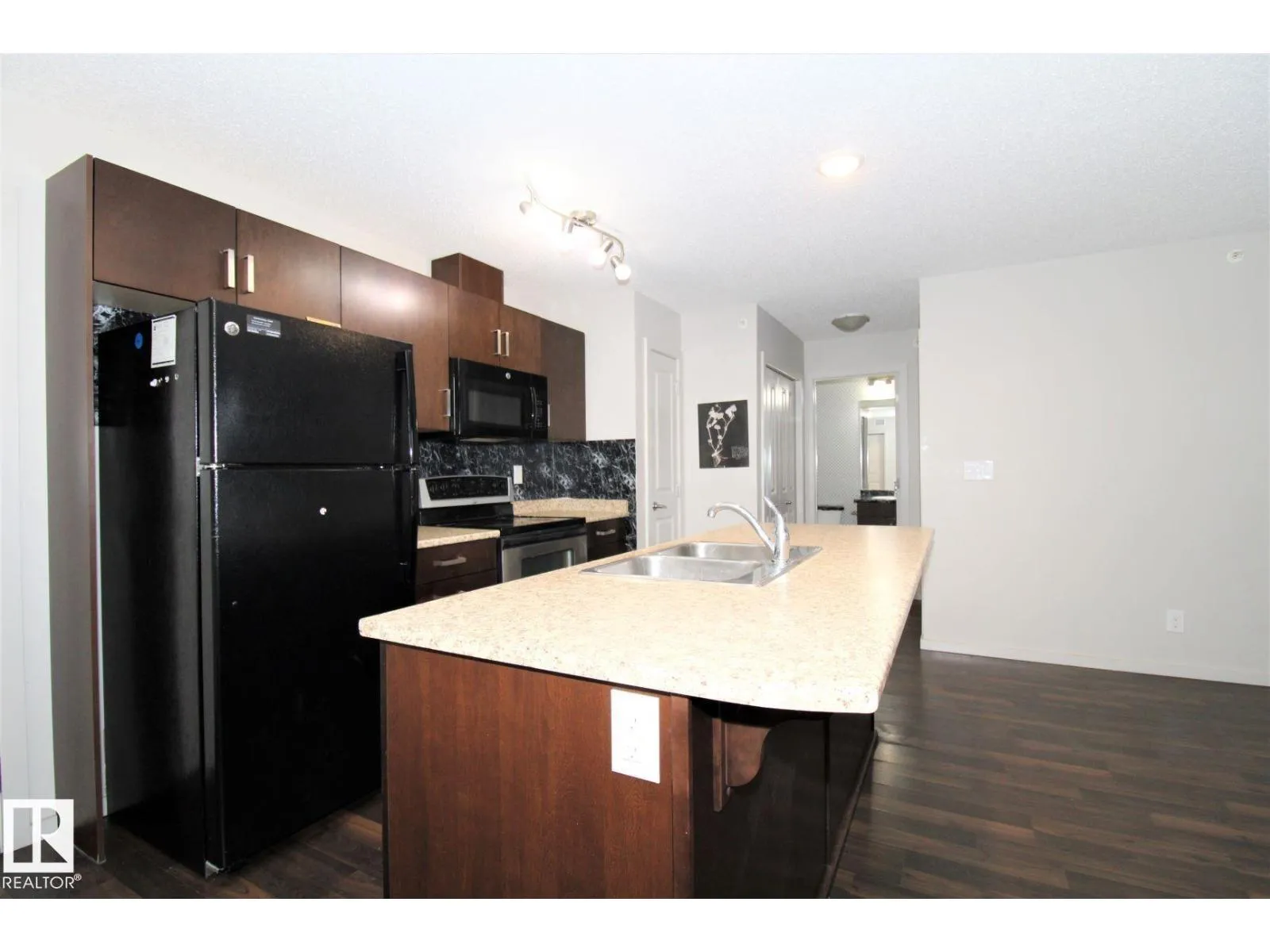 Welcome to this beautiful modern condo in Elements at Willowhaven, ideally located in Charlesworth, SW Edmonton. This well-maintained 2-bedroom, 2-bathroom unit offers a bright open-concept layout with the bedrooms and full bathrooms on opposite sides for added privacy. The stylish kitchen features ample cabinetry, generous storage, and a large island that flows seamlessly into the dining and living areasâperfect for everyday living and entertaining. Step onto your west-facing covered balcony and relax while enjoying beautiful sunset views. The building offers a spacious lobby, large elevator, and wide hallways. Includes two titled underground parking stalls. Conveniently located minutes from Anthony Henday Drive and within walking distance to shopping, restaurants, and everyday amenities. Ideal for first-time buyers or investors. Recent upgrades include brand-new fridge, washer, and dryer. (id:27476)