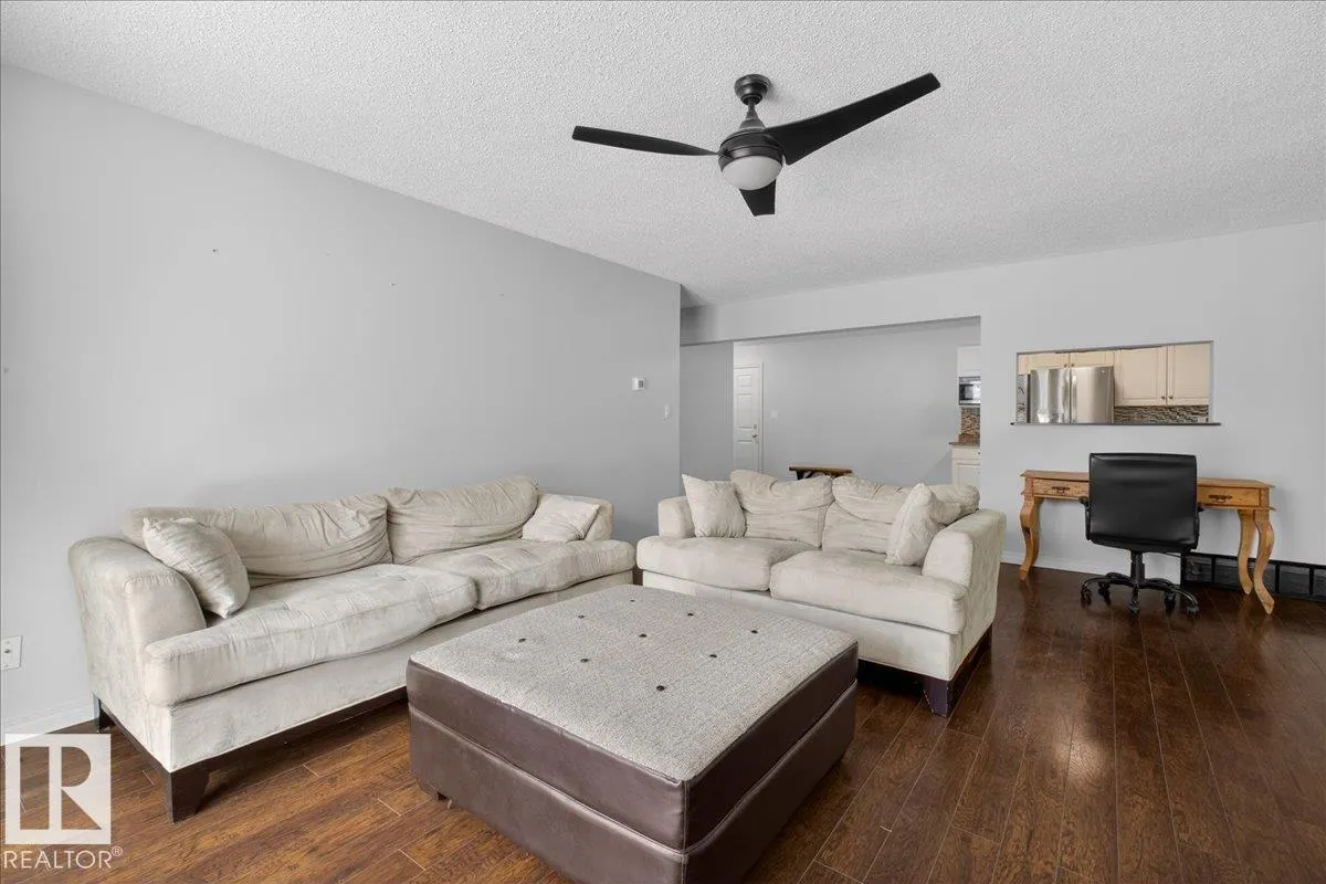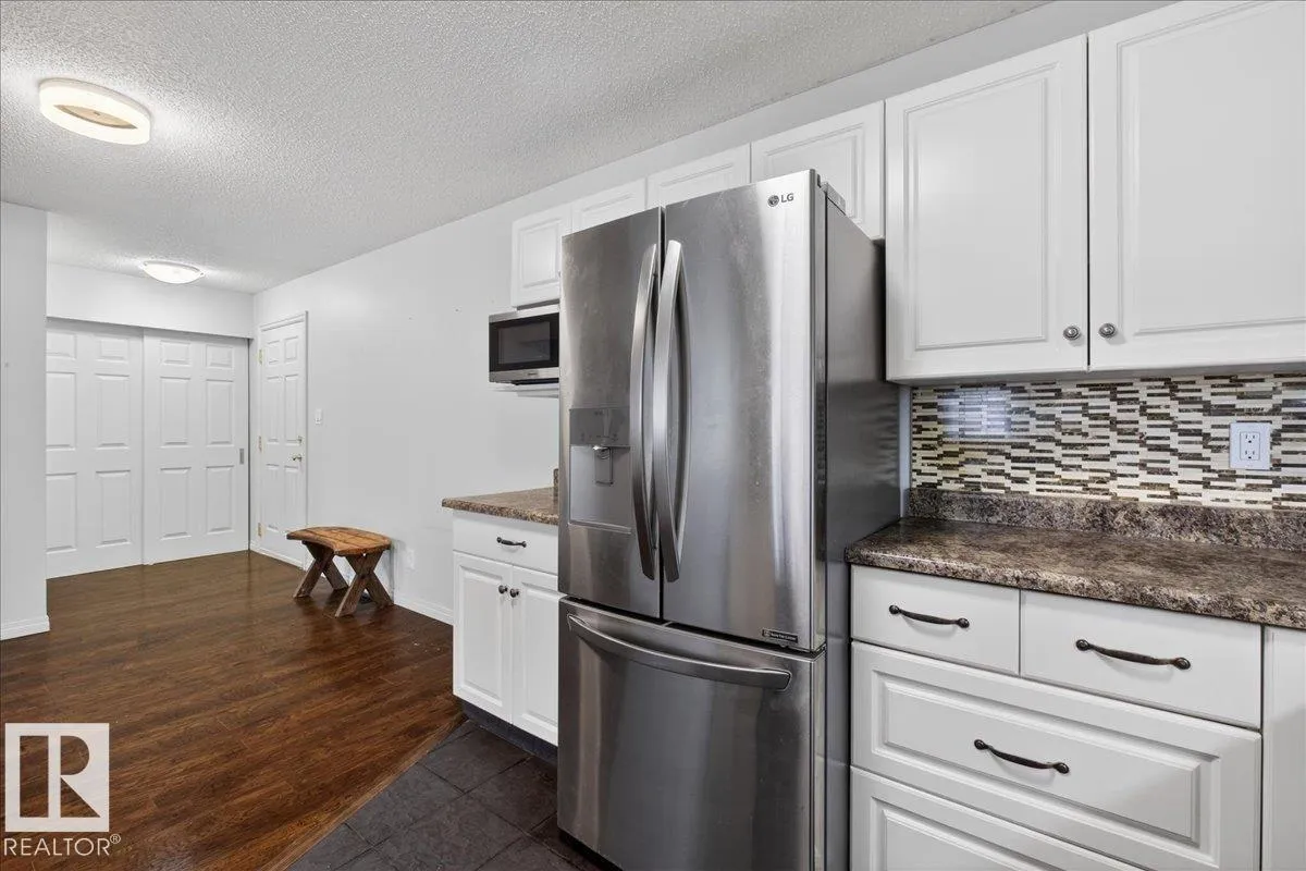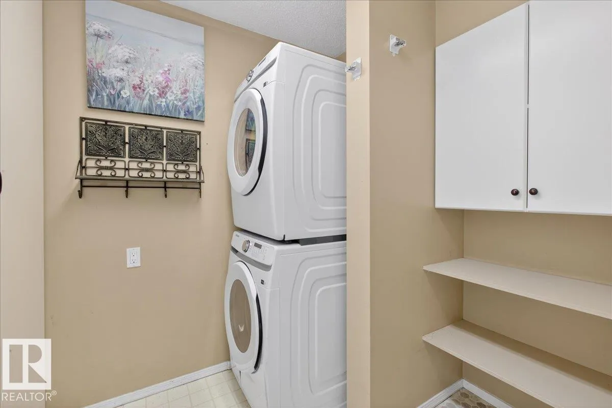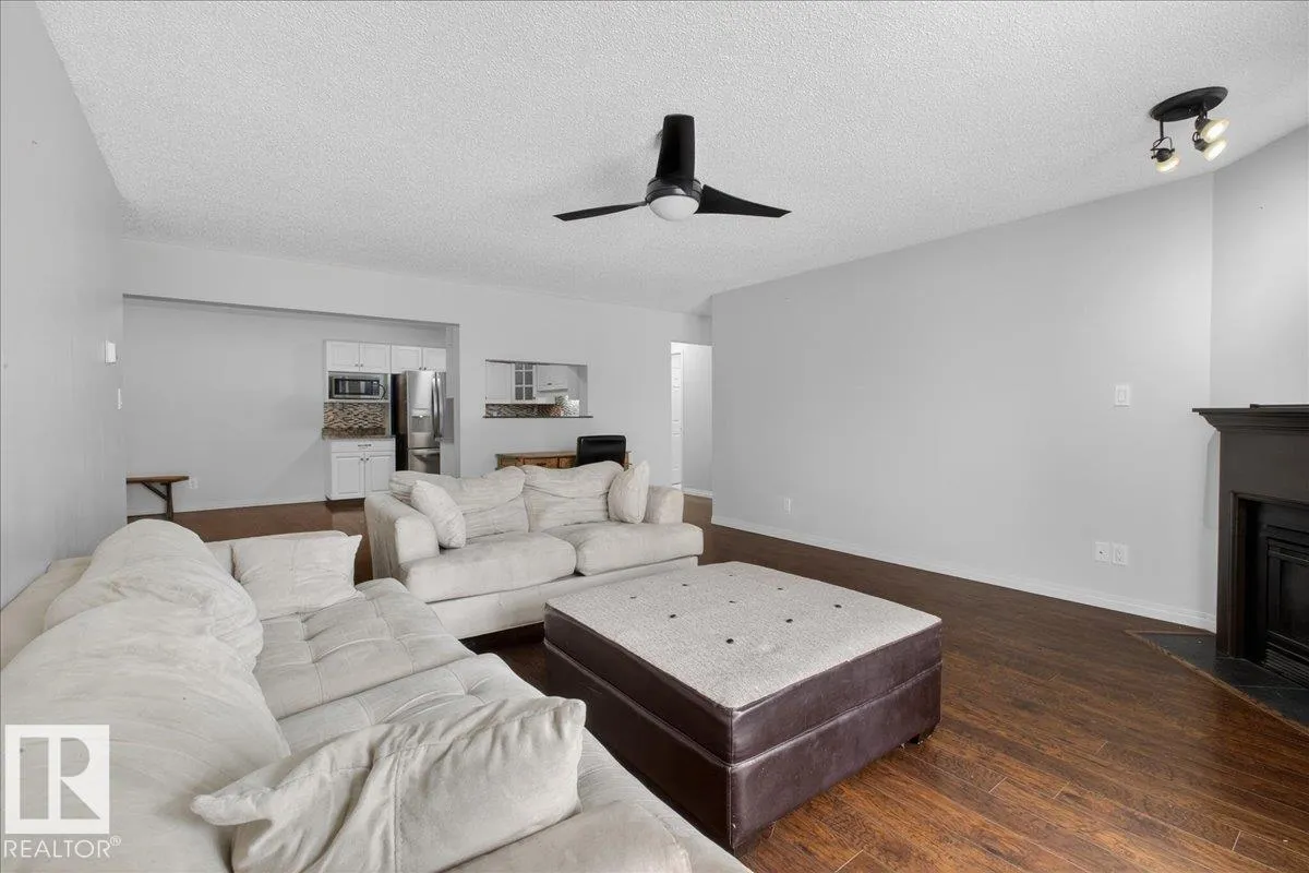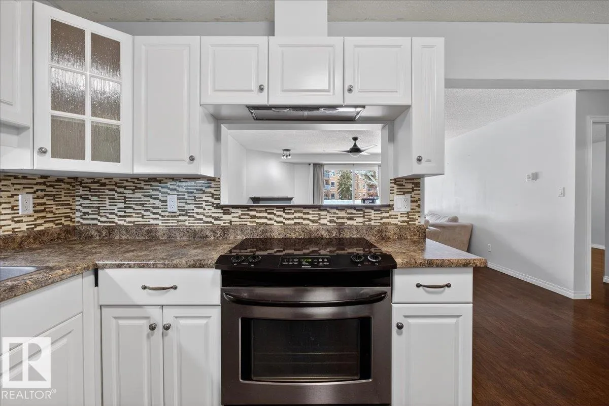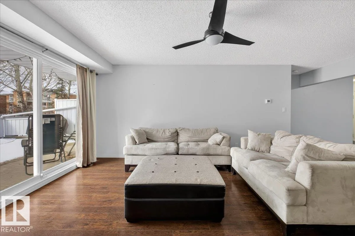 Enjoy downtown living without sacrificing space in this spacious condo offering over 1,300 sq ft of living space, just steps from the River Valley. This bright 3 bedroom, 2 full bathroom unit features a large exclusive-use south-facing patio/deck overlooking the courtyardâperfect for summer, complete with a natural gas BBQ line and additional storage. The updated kitchen offers white cabinetry, newer stainless steel appliances, ample counter space, and laminate flooring, opening to the dining area with a passthrough to the expansive living room filled with natural light from patio doors. The primary bedroom fits a king-sized bed and includes a 4-piece ensuite. Additional highlights include central A/C, a gas fireplace, in-suite laundry, and TWO heated underground parking stalls. Building amenities include an exercise room and sauna. Ideally located minutes to Downtown, Rogers Place, LRT, Little Italy, and Commonwealth Stadium. (id:27476)