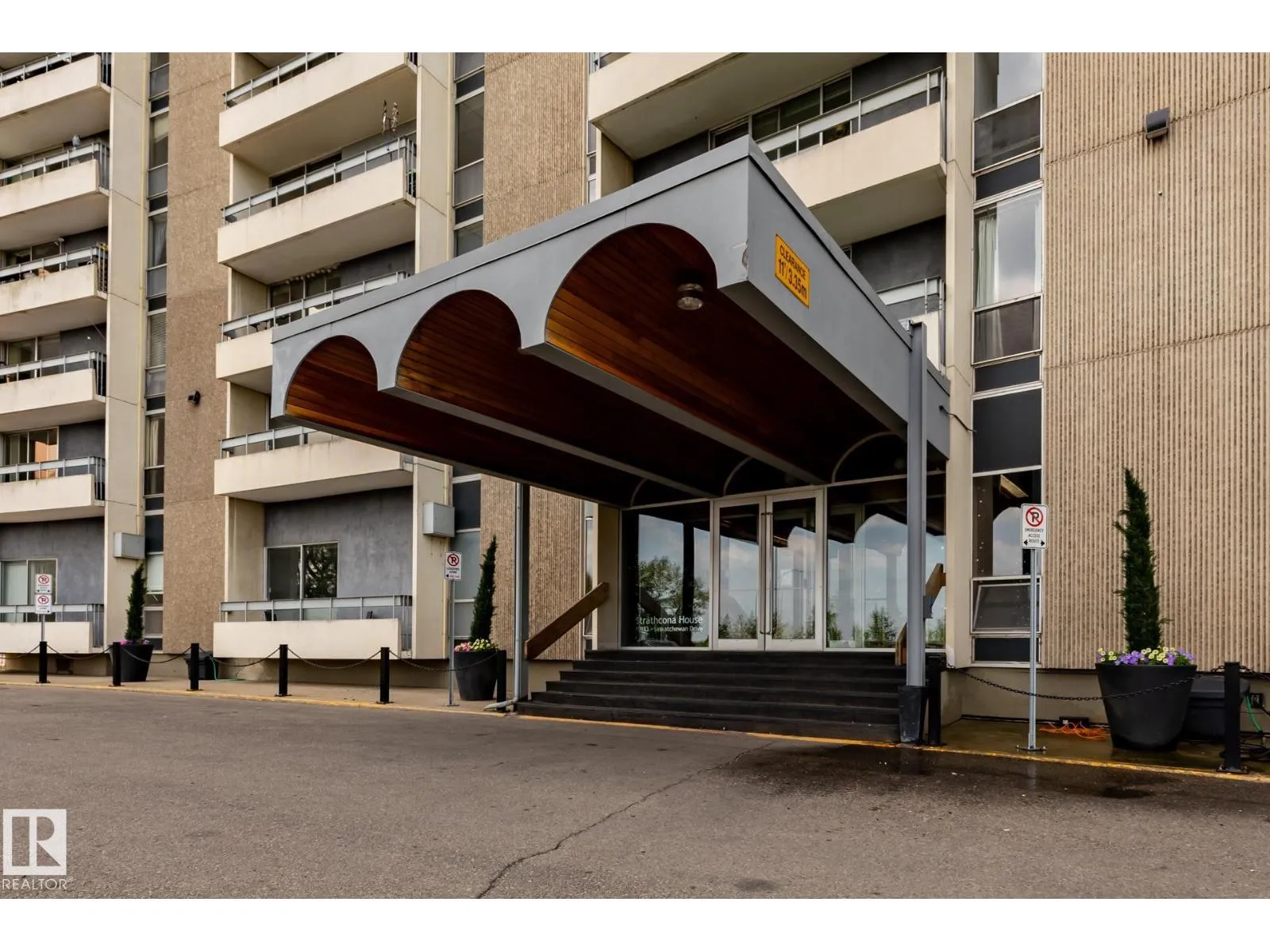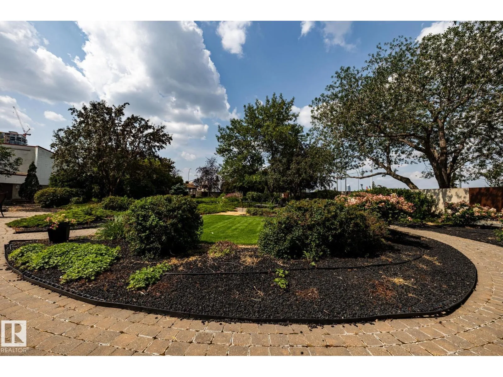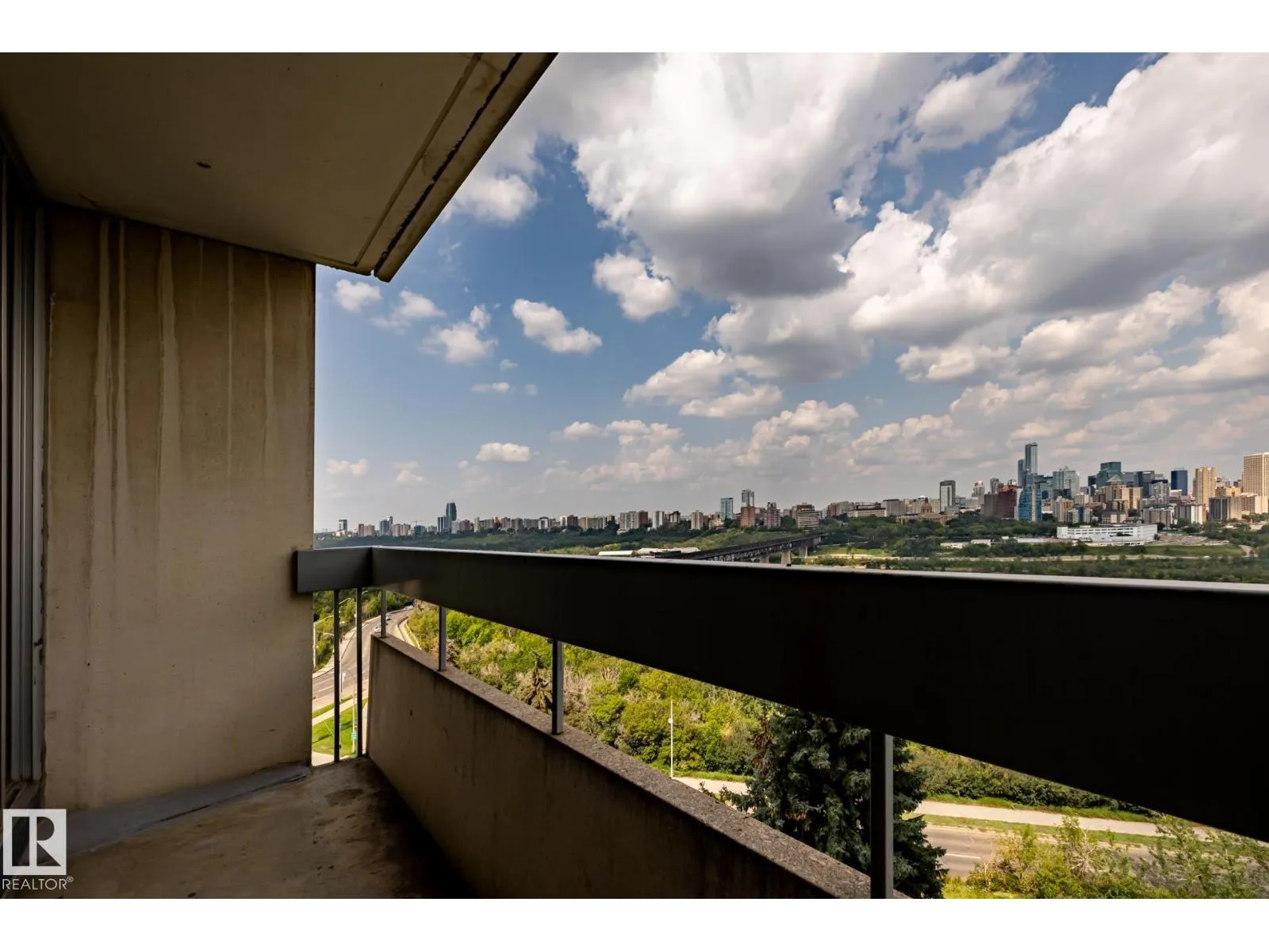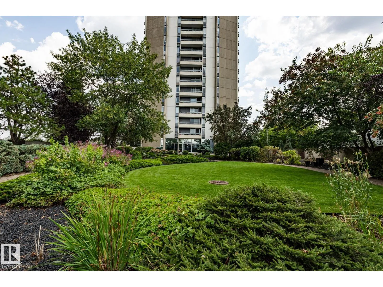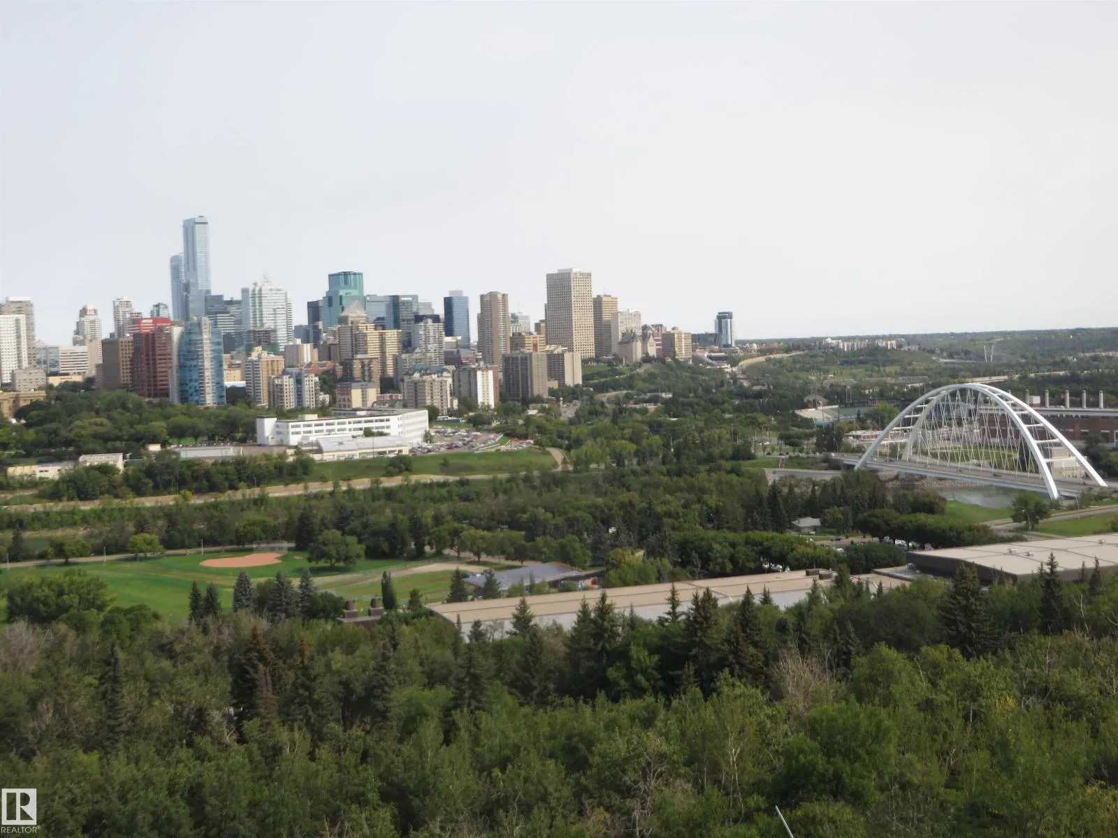Excellent & best buy hi-rise condo on prestigious Saskatchewan Drive. This fabulous one bedroom corner unit features a stunning open floor plan with a spectacular & unobstructed panoramic view of city skyline, river valley and the beautiful night view of Downtown. Bright and spacious layout with nice sized rooms, open kitchen w/painted maple cabinetry, island w/raised eating bar & stainless steel appliances. Upgraded laminated & tiled floorings, an oversized balcony perfect for outdoor enjoyments. Walk to the U of A, Kinsman Sport & Rec Centre, River valleyâs bike/walking trails just steps from the front doors. Exceptional university and river front location, well maintained building has fitness/social rooms, private garden court yard w/ gazebo and BBQ facilities, visitor parking, in-site mail delivery. Condo fee includes heat, water, power, private parking stall & more. Fabulous condo style living for starter/revenue home (great tenant in place), much affordable & priced for great upside value. (id:27476)