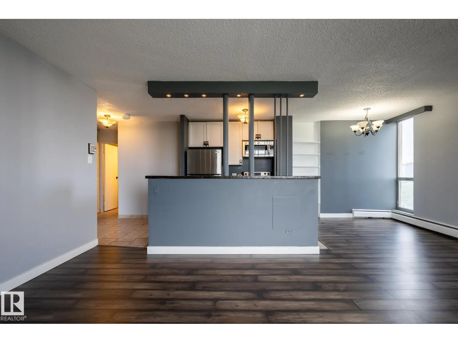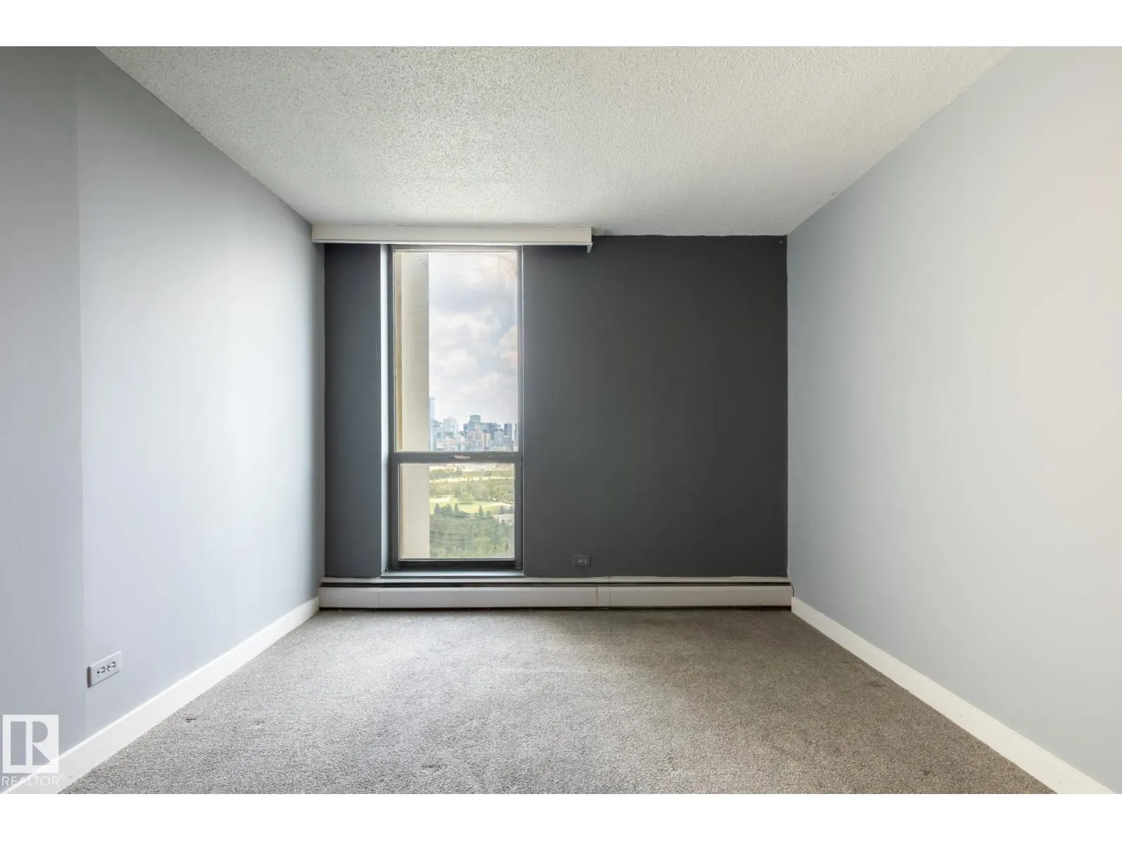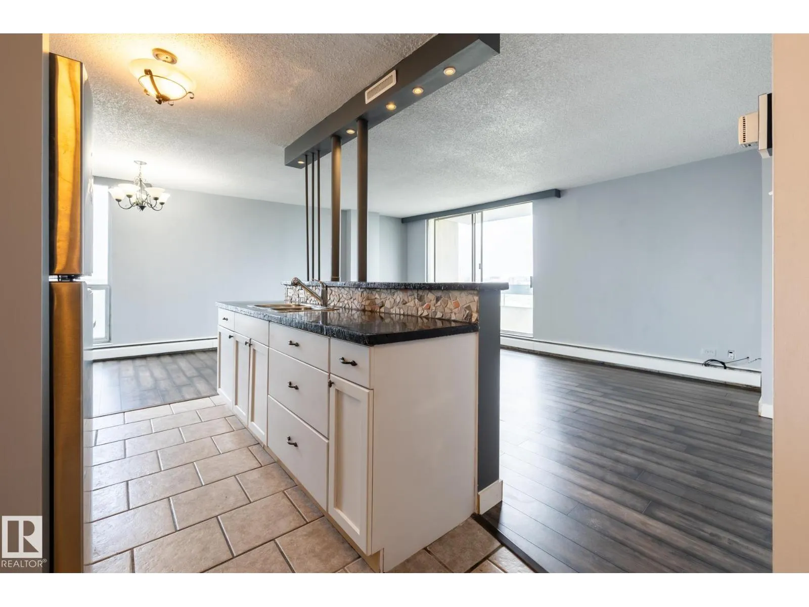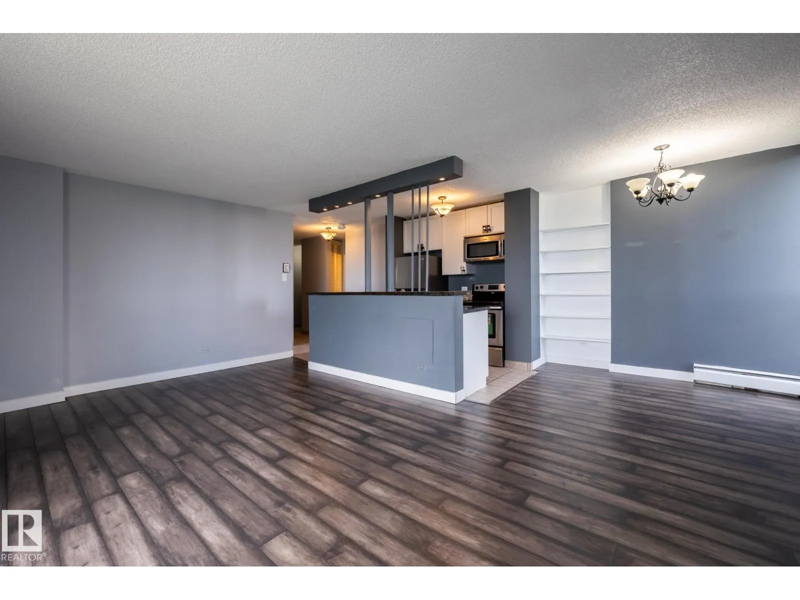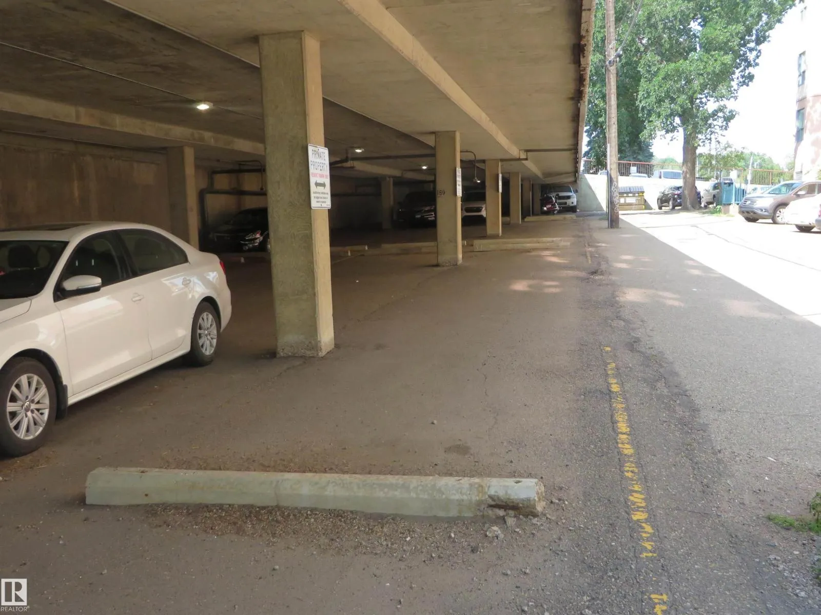 Excellent & best buy hi-rise condo on prestigious Saskatchewan Drive. This fabulous one bedroom corner unit features a stunning open floor plan with a spectacular & unobstructed panoramic view of city skyline, river valley and the beautiful night view of Downtown. Bright and spacious layout with nice sized rooms, open kitchen w/painted maple cabinetry, island w/raised eating bar & stainless steel appliances. Upgraded laminated & tiled floorings, an oversized balcony perfect for outdoor enjoyments. Walk to the U of A, Kinsman Sport & Rec Centre, River valleyâs bike/walking trails just steps from the front doors. Exceptional university and river front location, well maintained building has fitness/social rooms, private garden court yard w/ gazebo and BBQ facilities, visitor parking, in-site mail delivery. Condo fee includes heat, water, power, private parking stall & more. Fabulous condo style living for starter/revenue home (great tenant in place), much affordable & priced for great upside value. (id:27476)