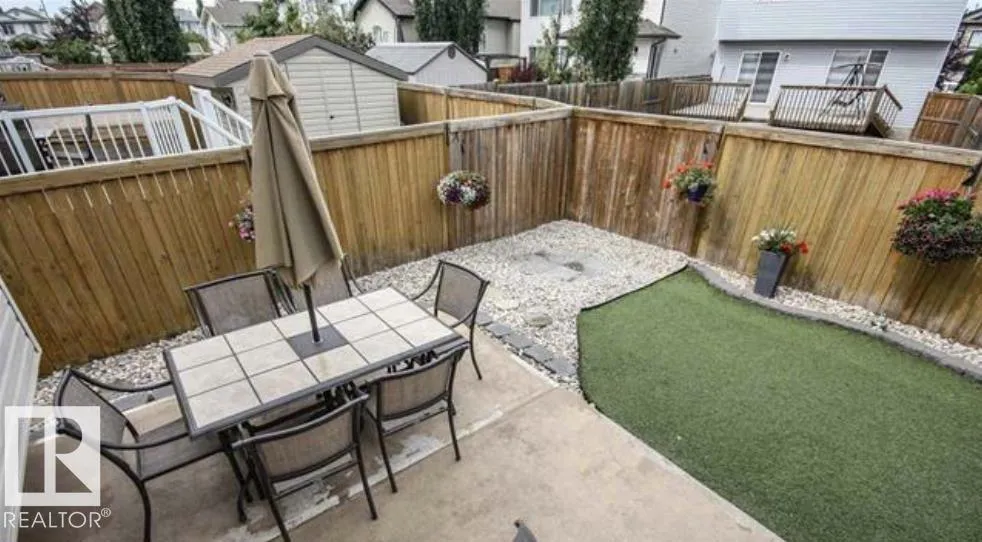 This thoughtfully designed half duplex is tucked into a quiet cul-de-sac in family friendly Brintnell, w/AC, a double attached garage & an unbeatable location close to the Henday, schools, parks, & all amenities. Find a rare layout w/dual primary suites upstairs, each offering SPACIOUS bedrms, generous closets, & private 4 pc ensuites, perfect for roommates, young professionals, guests, or a growing family. The main floor welcomes you w/a BRIGHT, open concept, while the kitchen flows seamlessly into the dining & living areas, anchored by a cozy GAS fireplace and filled with natural light. A convenient 2-pc powder room completes the level. A finished basement adds valuable bonus space, ideal for a home office, gym, rec room, or movie nights, + the added convenience of a 1/2 bath located in the laundry area. Enjoy a fully fenced, low maintenance yard perfect for summer BBQs, evenings on the patio, & the look of green space without the upkeep thanks to faux turf. This one checks all the boxes, call it home! (id:27476)