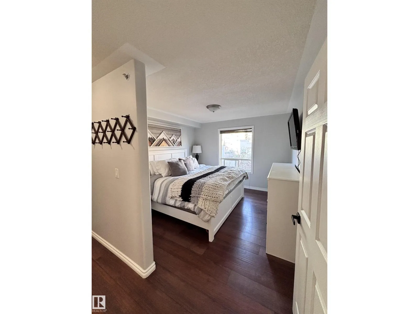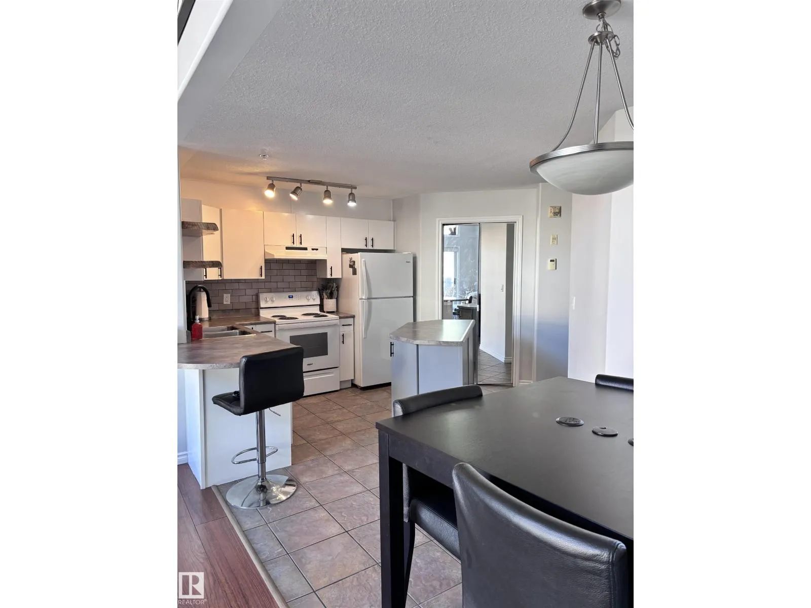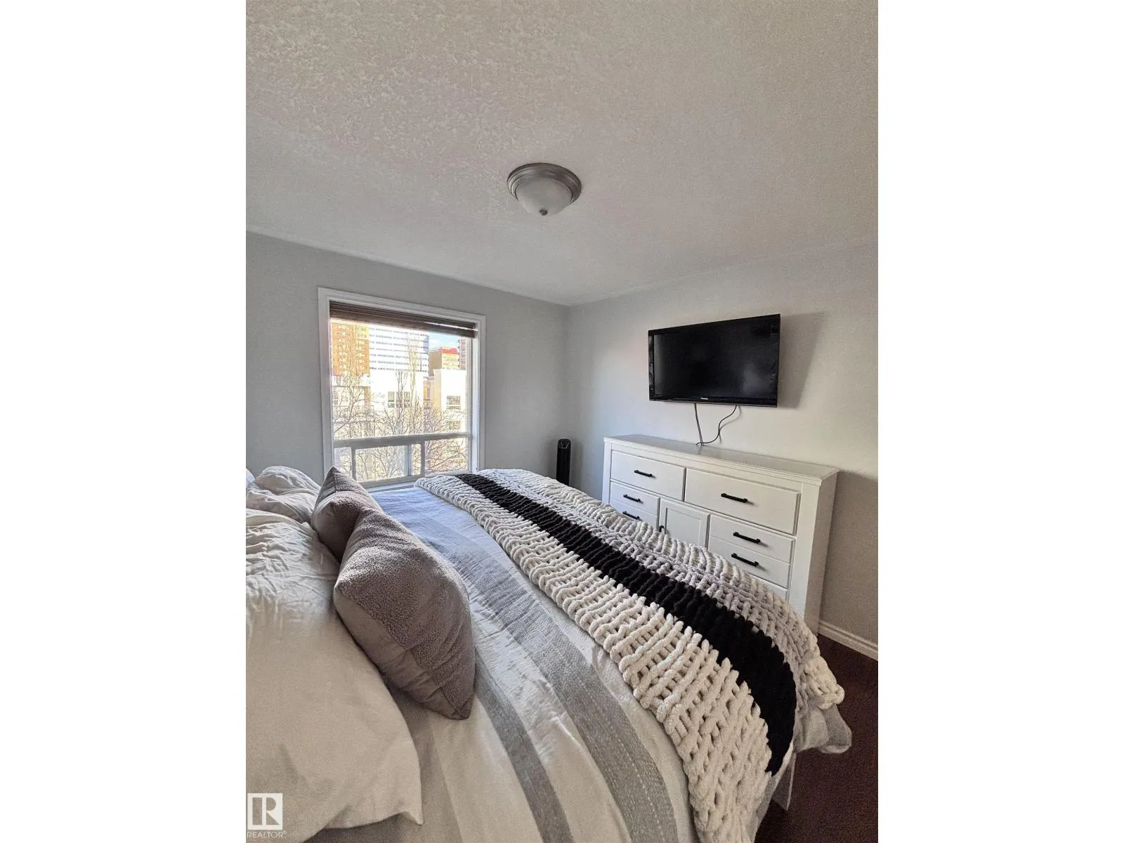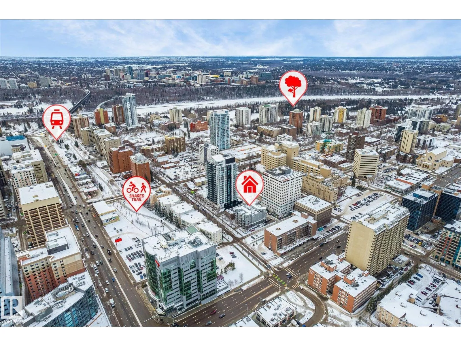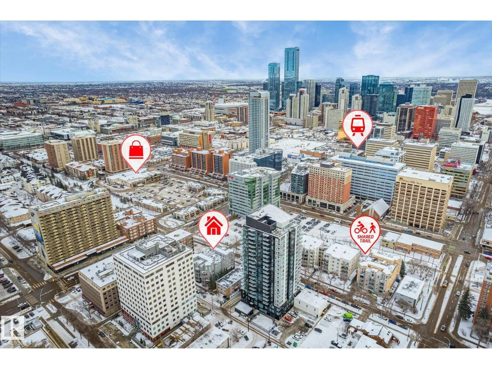 Recently renovated top floor loft style condo in Grandin! This East facing 2 bedroom and 2 full bath open concept floor plan is great for room mates. Features include infloor heating, soaring 12' ceilings, ceramic tile and laminate floor, rounded corners, lots of natural light, insuite laundry & storage. Kitchen has sharp white cabinetry, island and eating bar. Large primary bedroom has walk-in closet and 4 piece ensuite. The huge balcony off the living room has a gas line for bbq. Titled underground parking stall comes with the unit. Located in the ultra convenient Grandin area of Oliver one of Edmonton's most sought after communities. You are steps off Jasper Ave, 1 block to a grocery store, walk 5 mins to LRT (light rail transit) Government Centre stop, 6 mins to Corona LRT, restaurants, the river valley trail system, and parks. Excellent setup for students with University of Alberta, Grant MacEwan and NAIT easily accessible by car or transit. The seller will also repaint the unit prior to possession. (id:27476)
