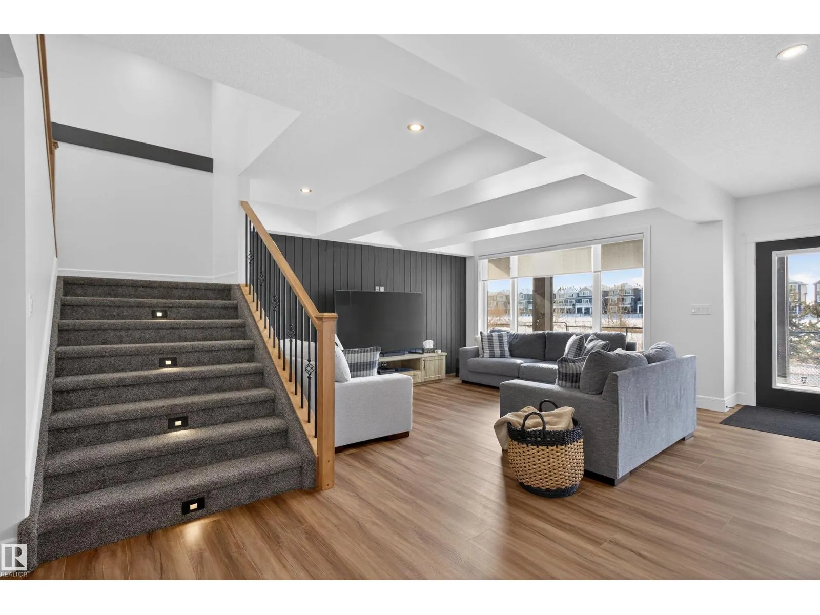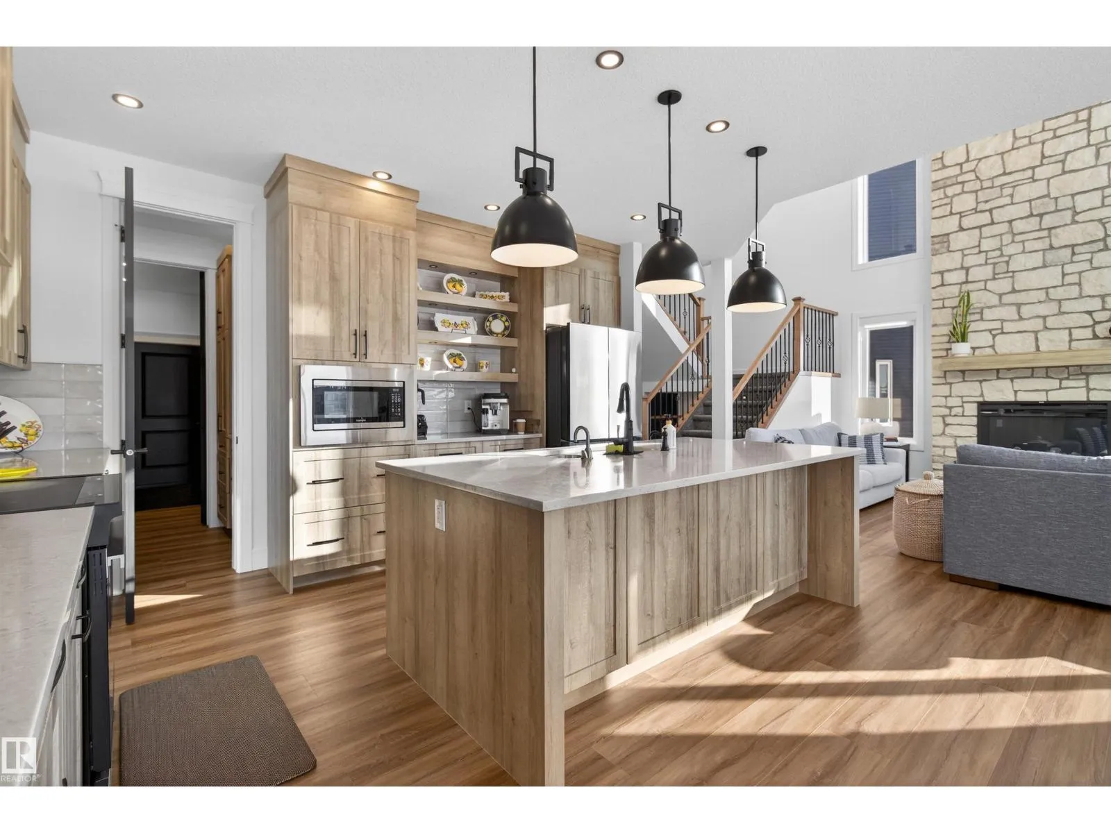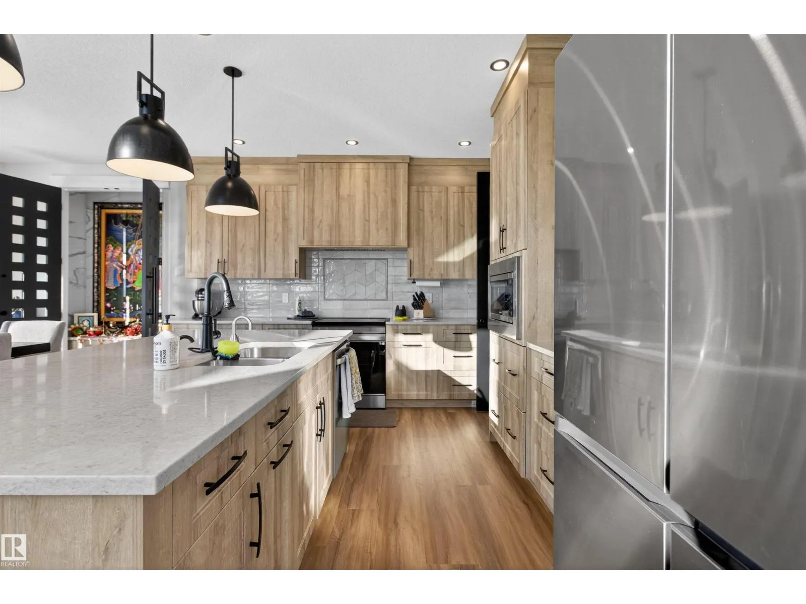 GORGEOUS CUSTOM BUILT 2 STOREY WALKOUT! BACKING THE POND! Welcome to Glenridding Ravine in south Edmonton. Prime location situated in a quiet cul-de-sac. Featuring an open concept with 2500 sq ft plus a FULLY FINISHED walkout basement. Modern design with HIGH QUALITY finishings throughout! Huge entry way, hardwood floors & spacious living room with soaring ceilings. Stunning stone-featured floor to ceiling fireplace! An abundance of windows to enjoy the views! CHEF'S DREAM KITCHEN! Beautiful cabinetry, Quartz countertops, highend appliances & a walk-through pantry. Main floor bedroom, 3 piece bathroom, mud room and dog wash. Large dining area & a massive deck that looks over the pond. Upstairs are 3 bedrooms, a 5 piece bathroom, large laundry room and a LUXURIOUS 5-PIECE ENSUITE in the Primary Bedroom plus huge walk-through closet! Entertain your friends in the basement Rec Room! AWESOME GYM, & 3 piece bathroom. LOVE THE PRIVATE BACKYARD! Double attached garage & beautiful curb appeal! OUTSTANDING VALUE!! (id:27476)