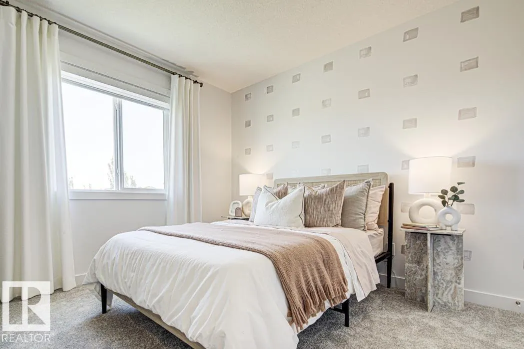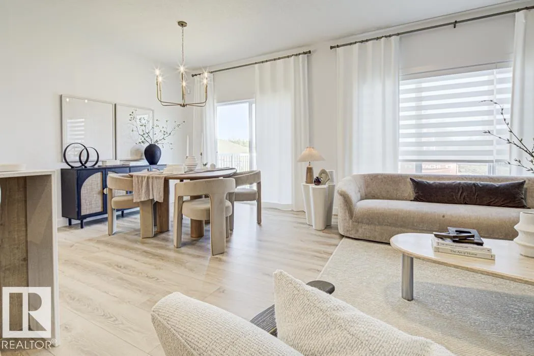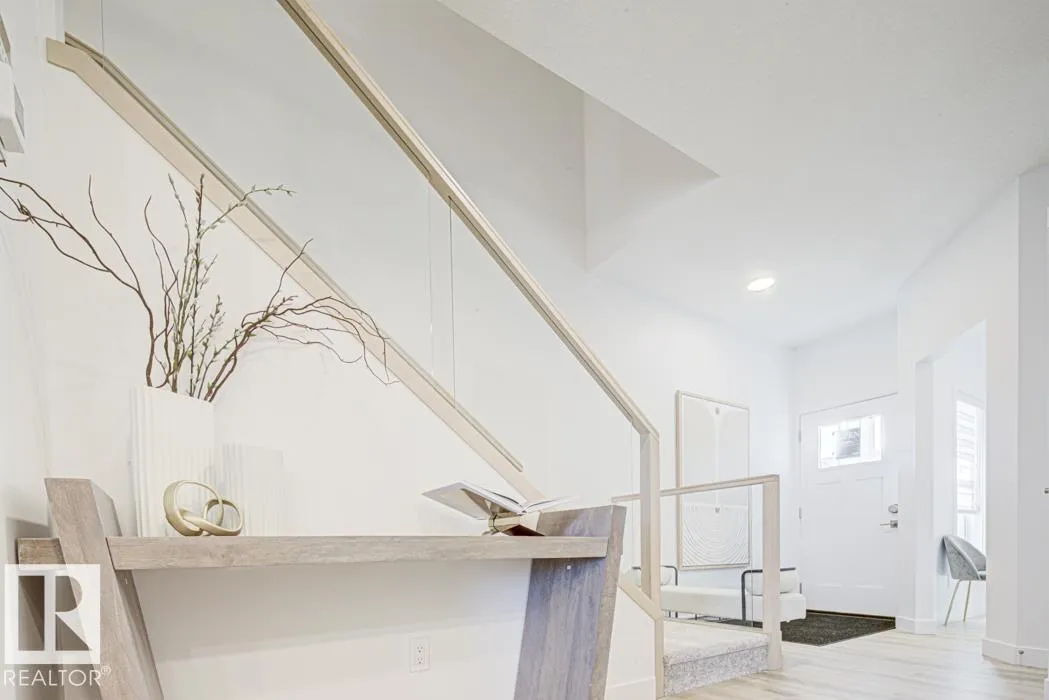 Built by Sterling Homes, this front-attached home in Rivers Edge offers bright, modern living with a dramatic open-to-below great room. Triple pane windows and 9â ceilings create an airy main floor, featuring a stylish kitchen with quartz counters, a large island, ceiling-height cabinetry, chimney hood fan, full-height backsplash, and a walk-through pantry leading to the mudroom. The great room includes an electric fireplace and sliding patio doors to the backyard. Upstairs, the primary suite has a spacious walk-in closet and 3-piece ensuite. A bonus room, full bath, laundry area, and two additional bedrooms complete the layout. With a separate side entrance, upgraded railings, a garage with floor drain, luxury vinyl plank flooring, and basement rough-ins, this home blends comfort and design in a scenic community. (id:27476)