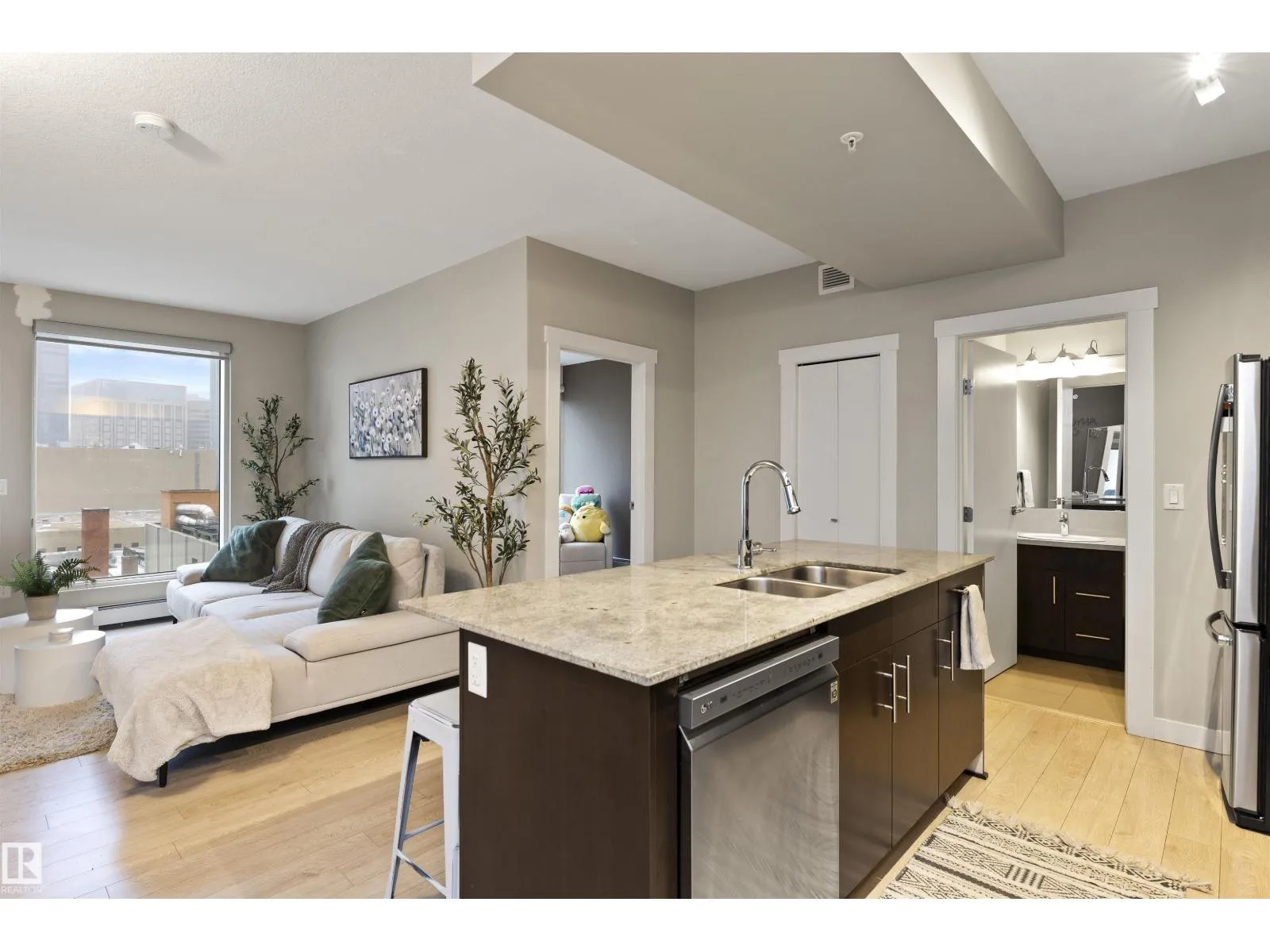 Live in the Heart of Downtown Edmonton! Welcome to Fox 1, where style, convenience & skyline views meet. This 788 sqft 2 bed, 2 bath condo puts you right in the centre of the actionâsteps from the Ice District, Rogers Place & Edmontonâs best dining, nightlife, & entertainment. Featuring a bright open-concept layout, this unit offers floor-to-ceiling windows that flood the space w/ natural light while showcasing incredible views. The modern kitchen includes s/s appliances, sleek cabinetry, a large island & plenty of counter spaceâperfect for cooking or entertaining. The primary suite is complete w/ a private 4pce ensuite, while the 2nd bedroom is ideal for guests, a home office or a roommate setup w/ the 2nd full bathroom. Enjoy in-suite laundry & an oversized balcony to take in the energy of downtown. A Titled underground parking stall completes this amazing unit! Whether youâre a young professional, investor, or downsizer this condo delivers urban living at its finest! (id:27476)
