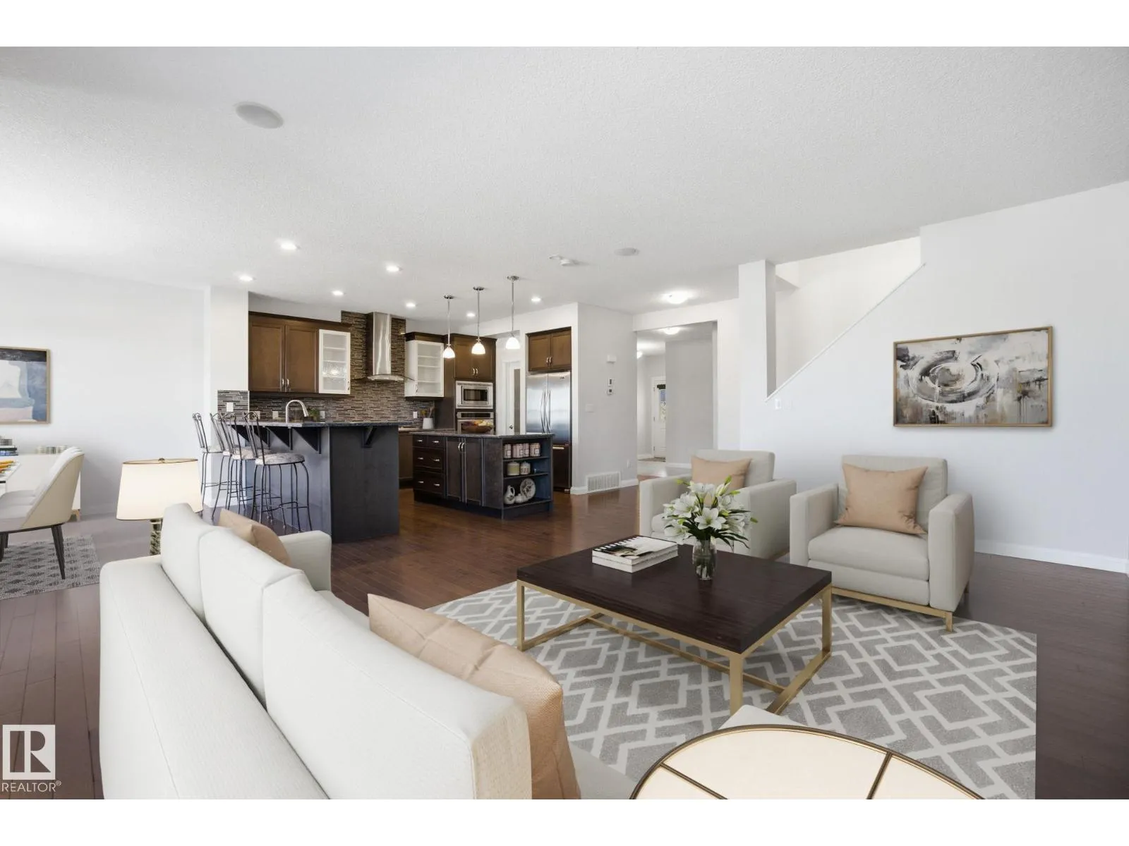 Feel at home the moment you walk through the door of this 2500 sq ft 2-storey, PLUS finished basement. Backing onto a pond & greenspace, the main floor features a great open floor plan. Massive windows for tons of west facing natural light. Large kitchen with granite countertops & oversized pantry is perfect for meal prep. Huge living room with gas fireplace & hardwood floors. Dining area is a great spot to host family & friends. Upstairs you'll find a perfect size bonus room with surround sound wiring. Master suite is HUGE! Massive room plus a ensuite fit for a castle & HIS & HERS walk in closets! 2 more bedrooms are ideal for guests or kids or a home office. Basement is fully finished with large rec room, a 4th bedroom & a bonus den space! Double attached insulated garage. AMAZING location backing onto a pond & walking path. Close to the NEW rec centre, shopping, schools, Costco & more! some photos are virtually staged (id:27476)