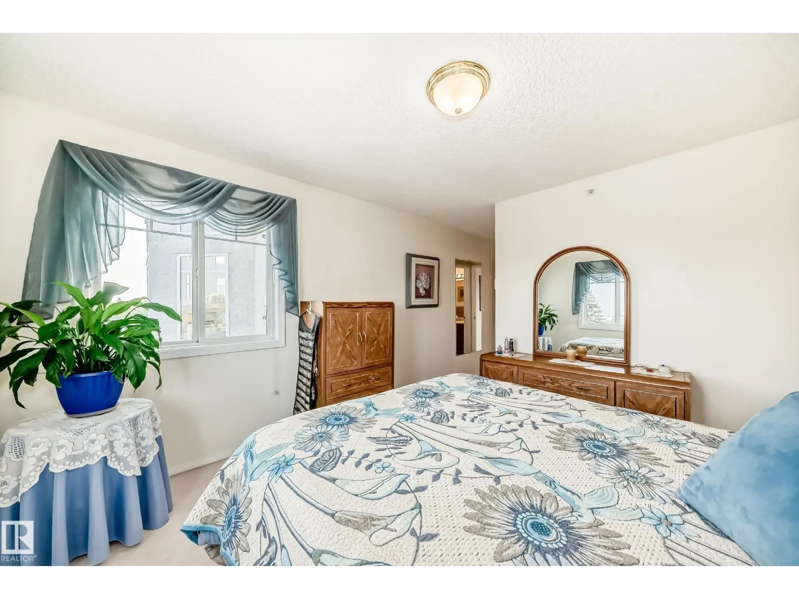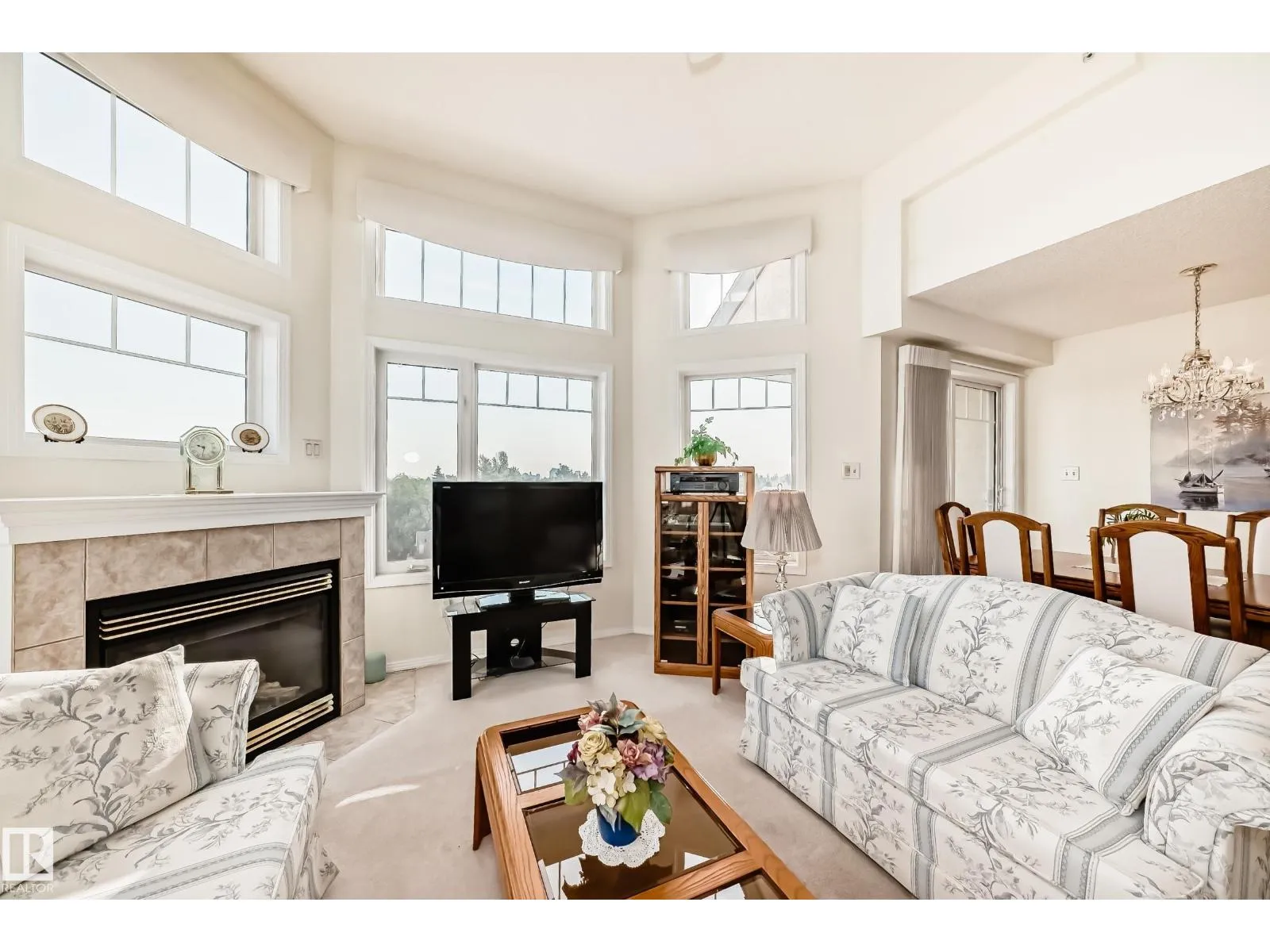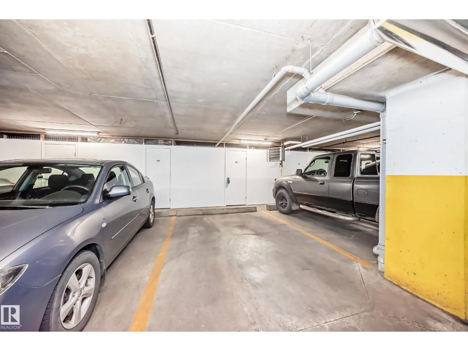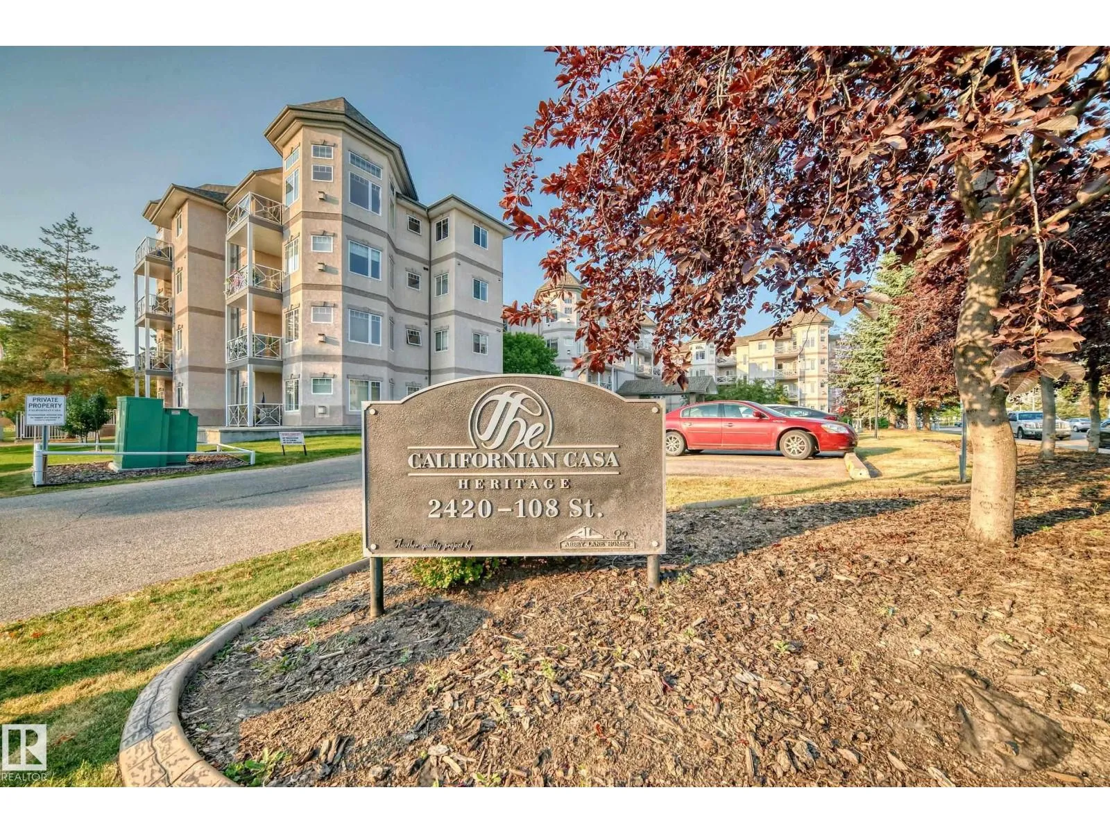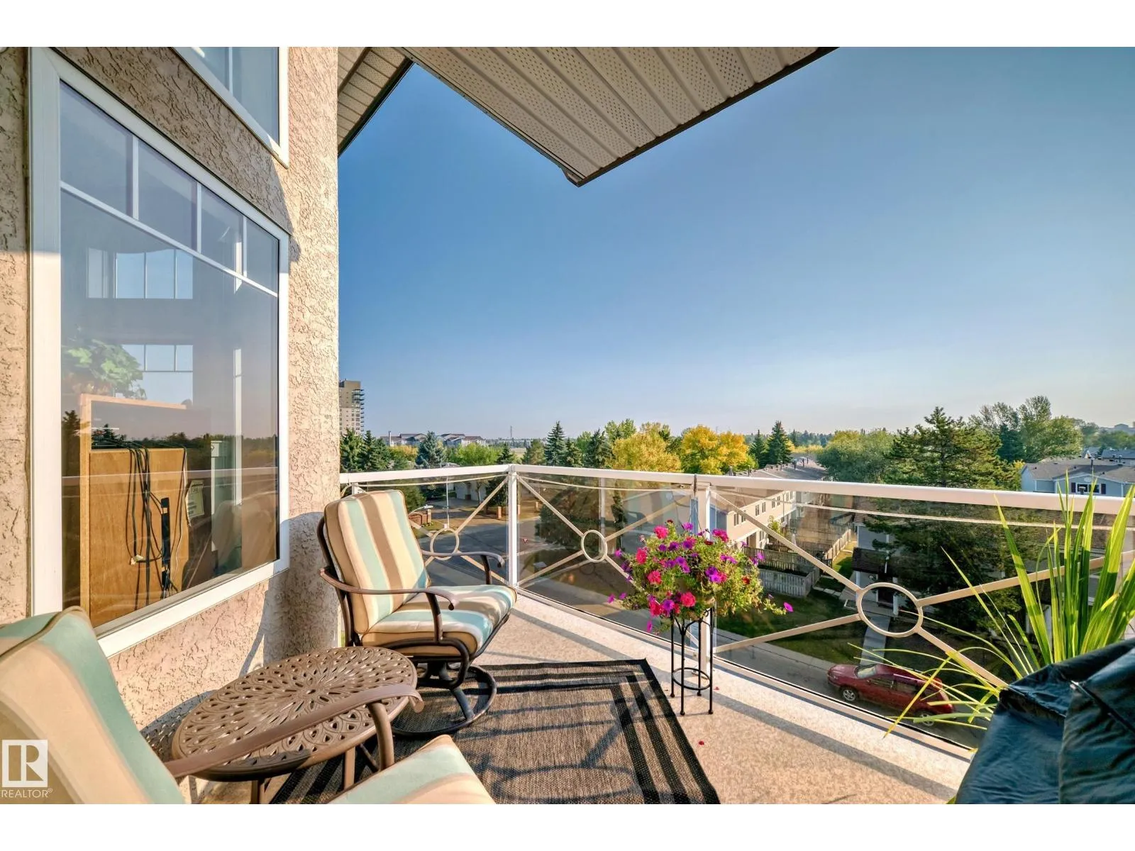 Immaculate Californian Casa beautifully maintained top floor condo with unobstructed views of the city. The 2 bedroom, 2 bathroom, 1,048 sq ft with 12 ft ceilings, and big windows with endless natural light, and a private northeast facing balcony. The main level has infloor heating a open floor plan with oak kitchen, eat up island kitchen, 4 kitchen appliances included, dining room, and a large livingroom area with a gas fireplace. The 2 spacious bedrooms are very private from eachother, and the primary bedroom has a 3 piece ensuite jacuzzi tub and 4 piece main bath. The titled parking stall included is #143 with storage room and a car wash for your convenience. The location of the unit is on the quiet side of building very cool, century park LRT, shopping, YMCA. The main floor has a Party/Social Room that can be booked, Exercise Room, and a Guest Room that can be booked for a small charge. This unit needs nothing and is in a great private corner cool and not hot in the summer location. (id:27476)