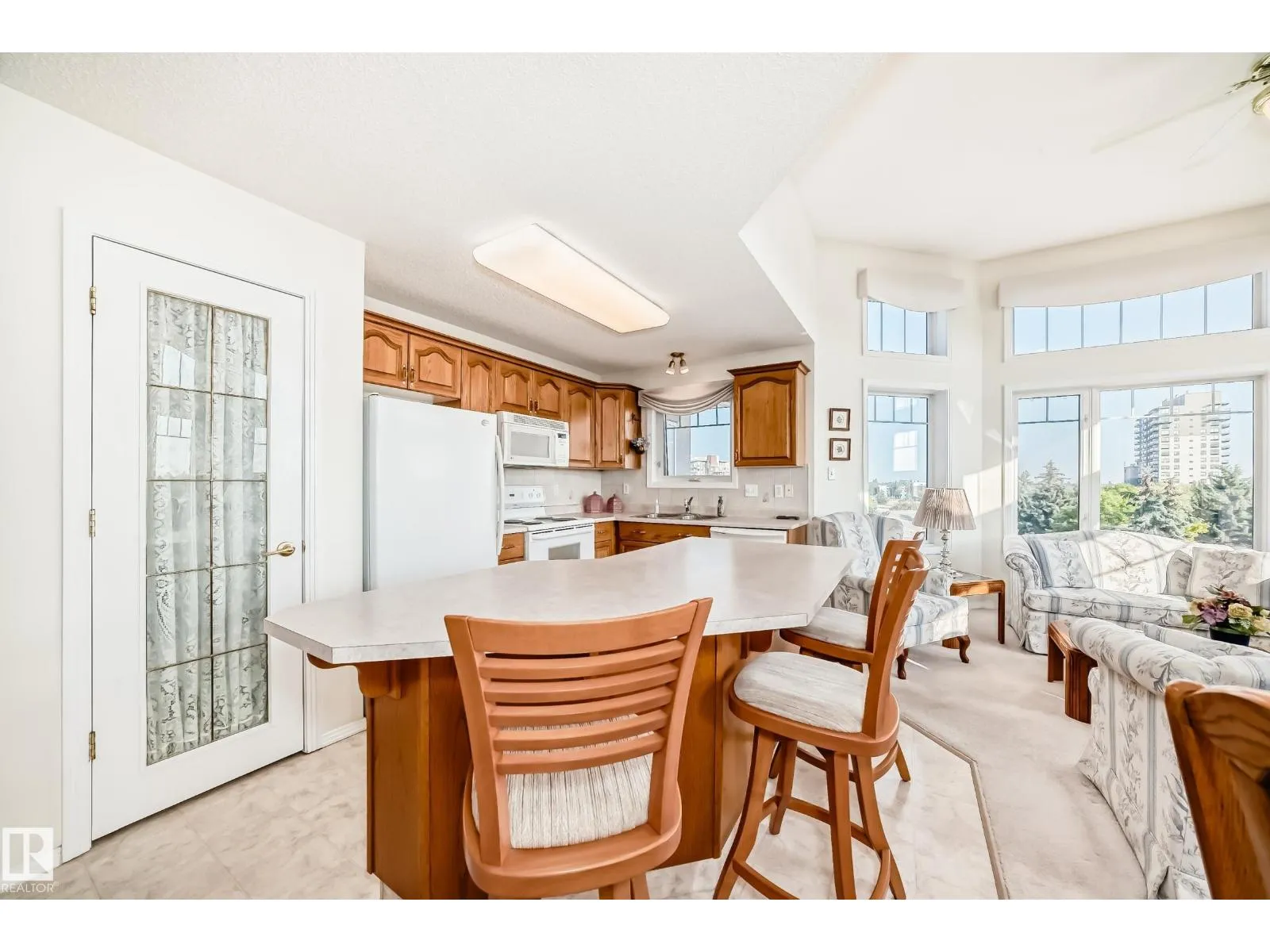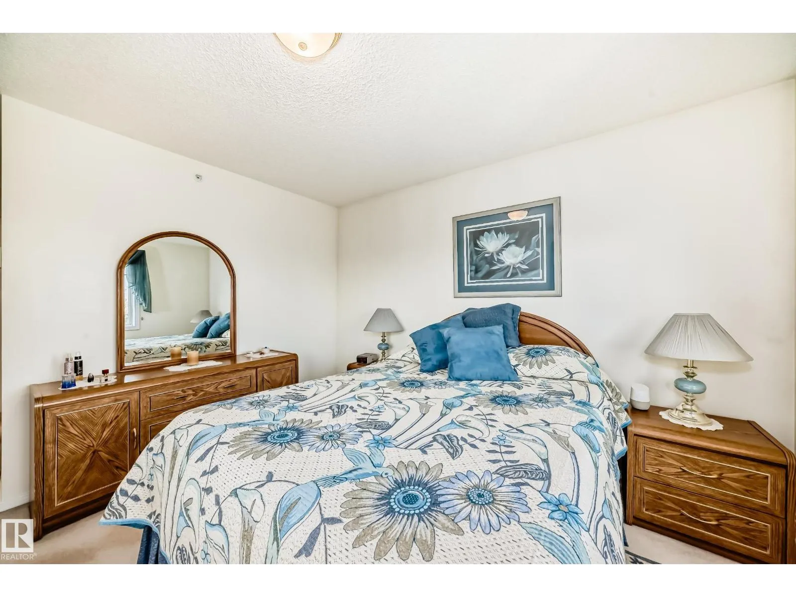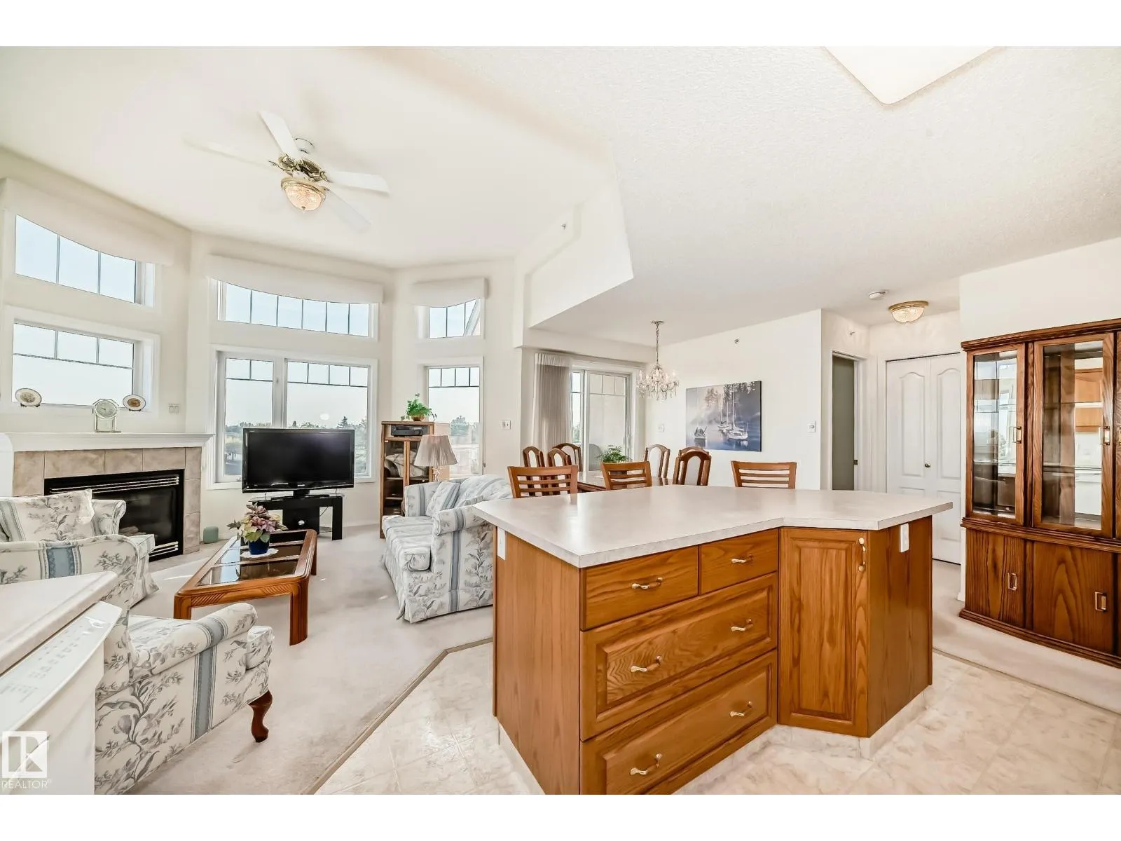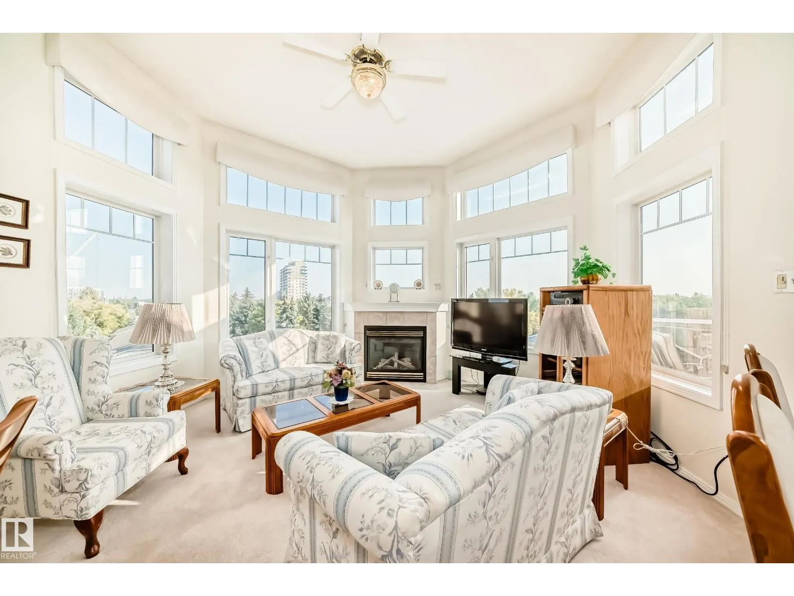 Immaculate Californian Casa beautifully maintained top floor condo with unobstructed views of the city. The 2 bedroom, 2 bathroom, 1,048 sq ft with 12 ft ceilings, and big windows with endless natural light, and a private northeast facing balcony. The main level has infloor heating a open floor plan with oak kitchen, eat up island kitchen, 4 kitchen appliances included, dining room, and a large livingroom area with a gas fireplace. The 2 spacious bedrooms are very private from eachother, and the primary bedroom has a 3 piece ensuite jacuzzi tub and 4 piece main bath. The titled parking stall included is #143 with storage room and a car wash for your convenience. The location of the unit is on the quiet side of building very cool, century park LRT, shopping, YMCA. The main floor has a Party/Social Room that can be booked, Exercise Room, and a Guest Room that can be booked for a small charge. This unit needs nothing and is in a great private corner cool and not hot in the summer location. (id:27476)