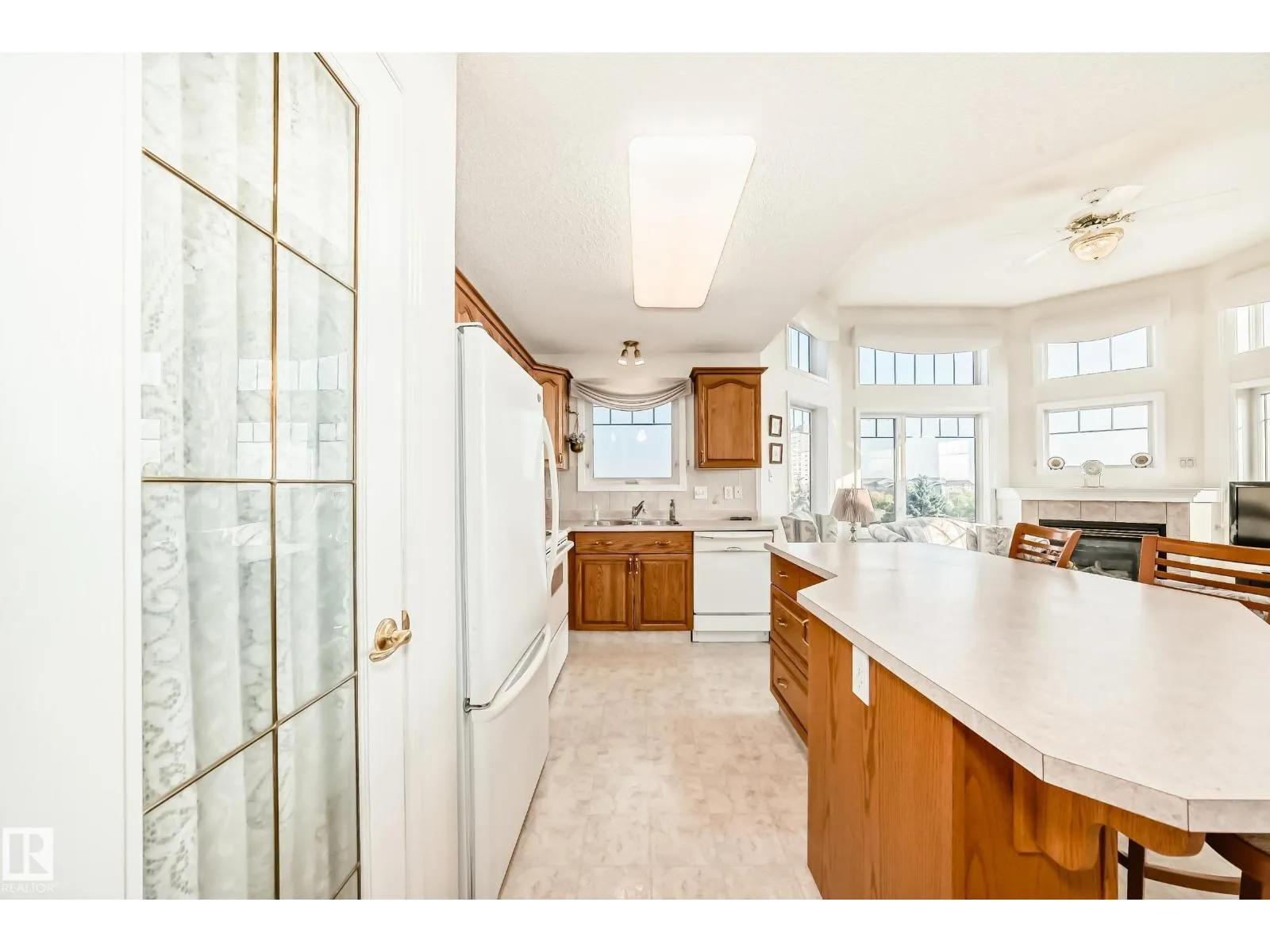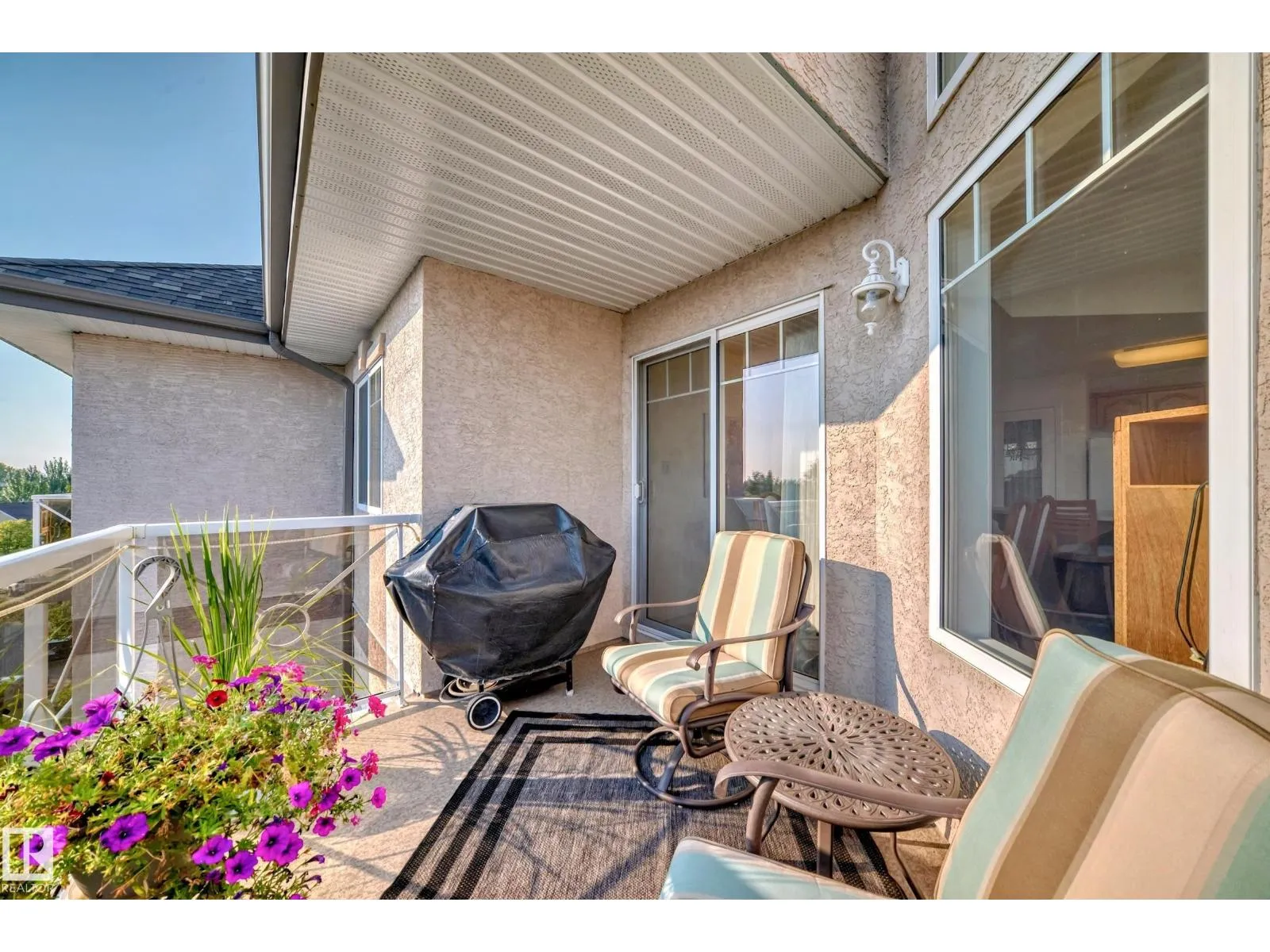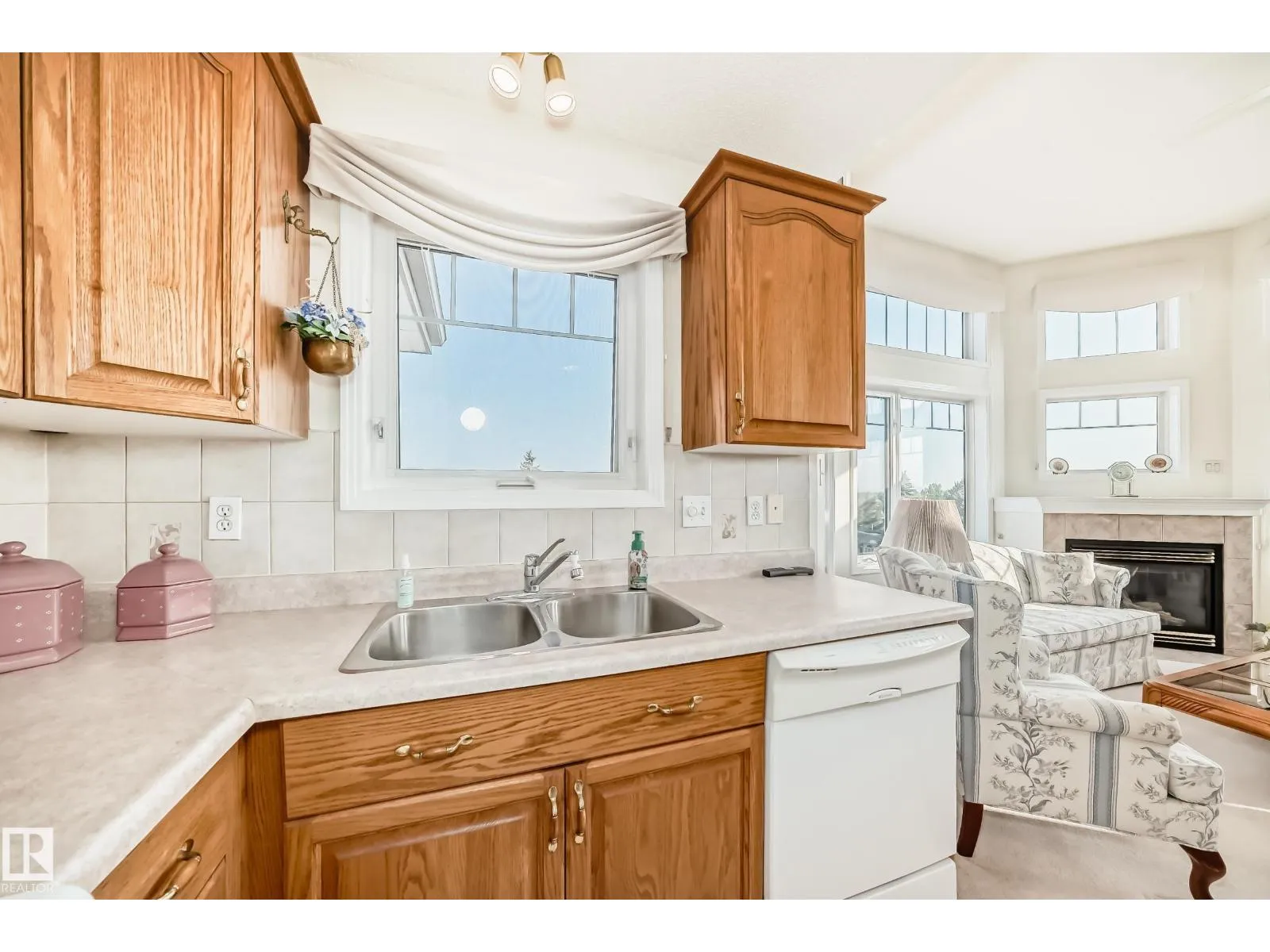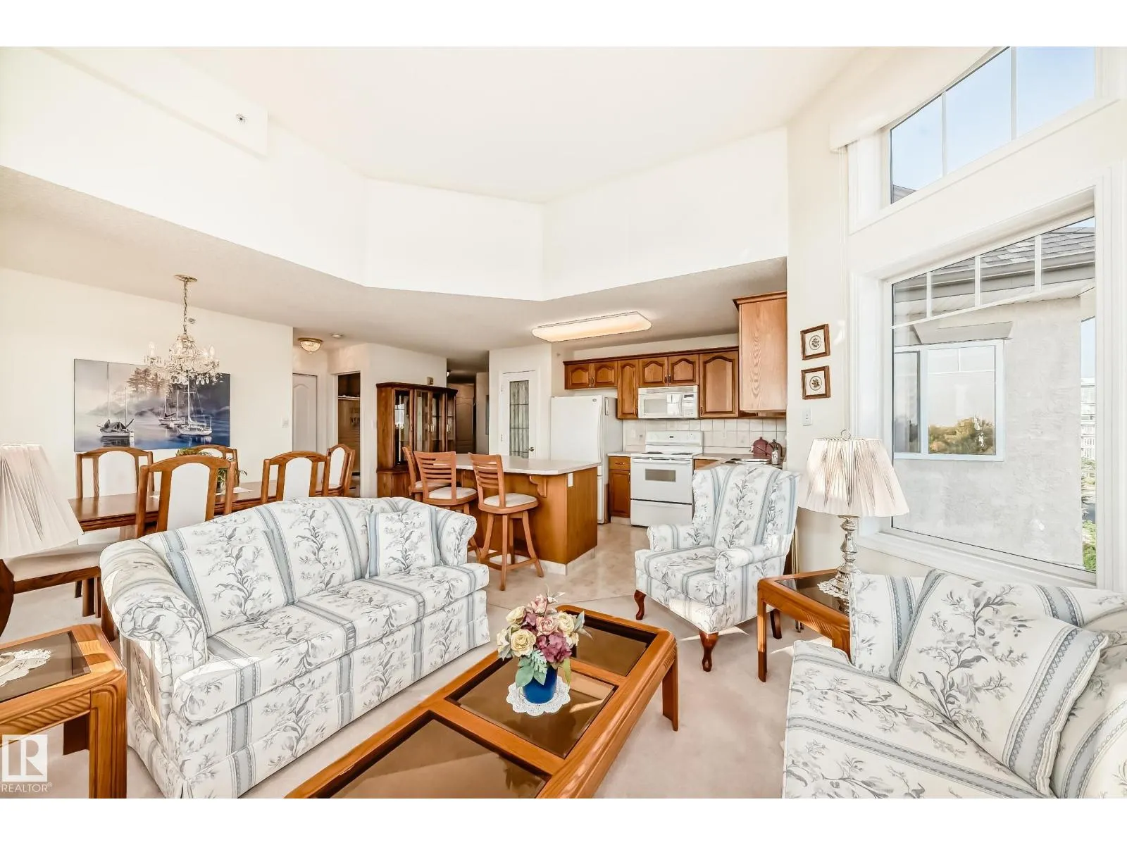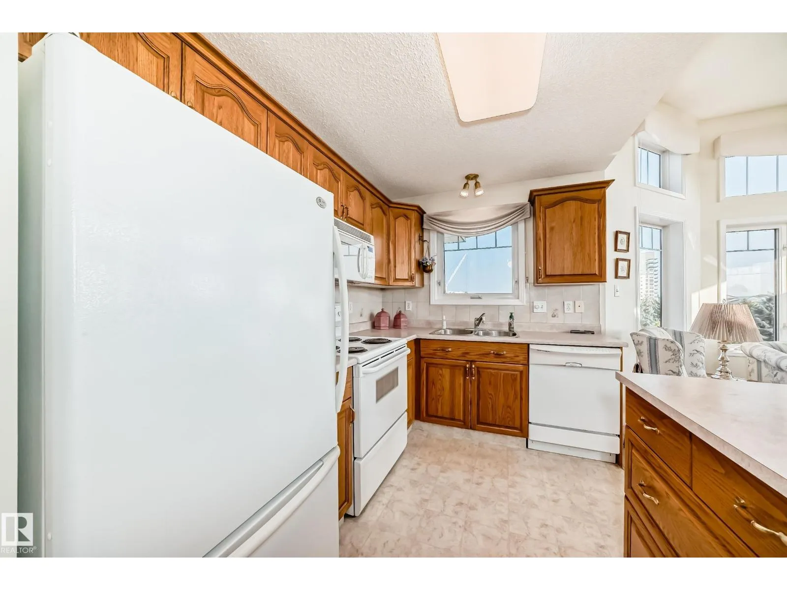 Immaculate Californian Casa beautifully maintained top floor condo with unobstructed views of the city. The 2 bedroom, 2 bathroom, 1,048 sq ft with 12 ft ceilings, and big windows with endless natural light, and a private northeast facing balcony. The main level has infloor heating a open floor plan with oak kitchen, eat up island kitchen, 4 kitchen appliances included, dining room, and a large livingroom area with a gas fireplace. The 2 spacious bedrooms are very private from eachother, and the primary bedroom has a 3 piece ensuite jacuzzi tub and 4 piece main bath. The titled parking stall included is #143 with storage room and a car wash for your convenience. The location of the unit is on the quiet side of building very cool, century park LRT, shopping, YMCA. The main floor has a Party/Social Room that can be booked, Exercise Room, and a Guest Room that can be booked for a small charge. This unit needs nothing and is in a great private corner cool and not hot in the summer location. (id:27476)