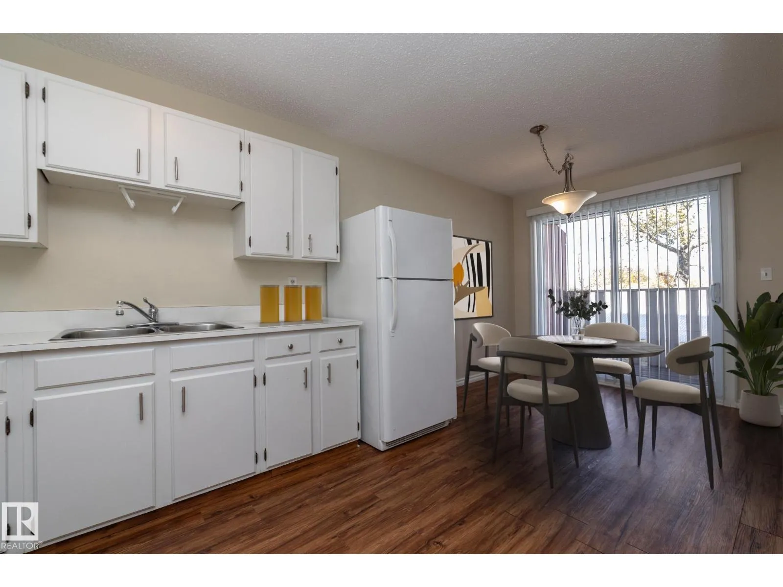 This well cared for bungalow style townhome has the ultimate prime positioning within the complex. Being the end unit backing onto a park setting, green space bordering the east property line and surrounded by privacy fencing create a rare opportunity. As you drive through this complex it is very apparent that pride of ownership is a priority to all its owners. Two expensive upgrades in recent years are the new vinyl windows and roof shingles. The interior is immaculate and move-in ready. The main floor has a four piece bath, two good sized bedrooms, a large kitchen with designated dining space, and a generous living room. The lower level is fully finished with two large multi purpose rooms, a second bath and laundry room. Other key features include, A high efficiency furnace and Hardsurface plank flooring throughout both levels . Show with confidence ! Virtual staging used in presentation. (id:27476)