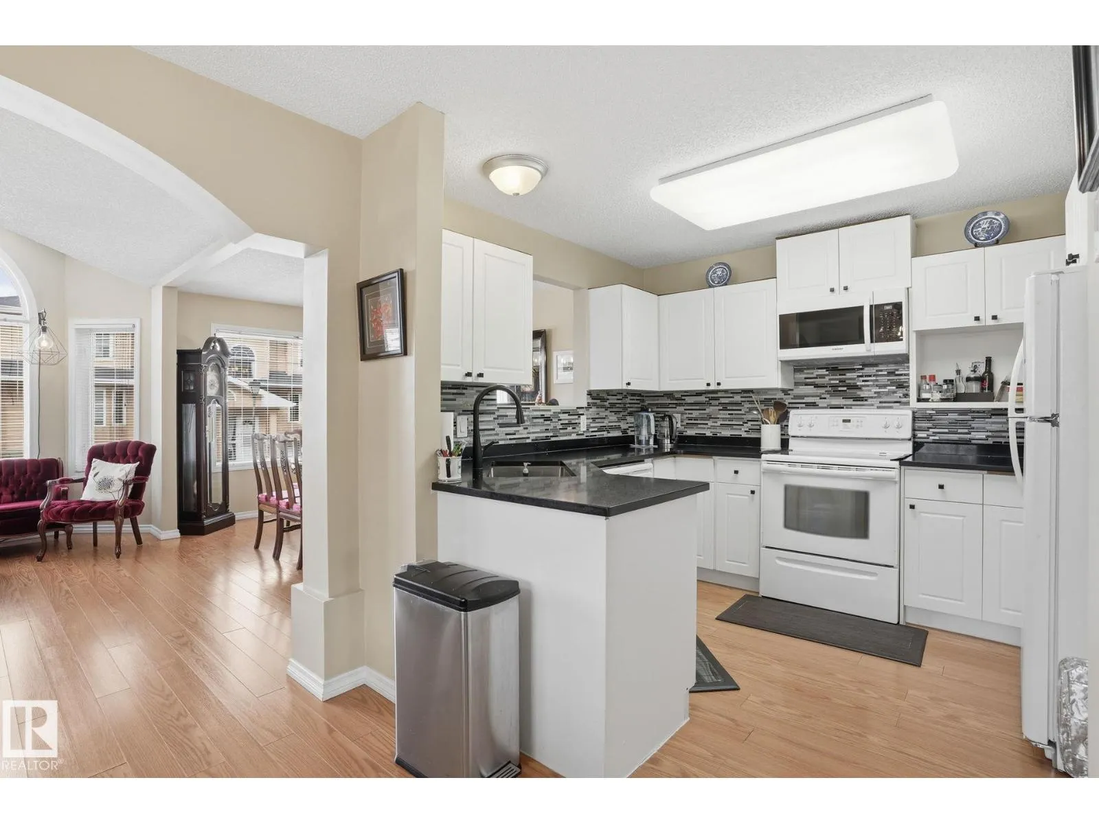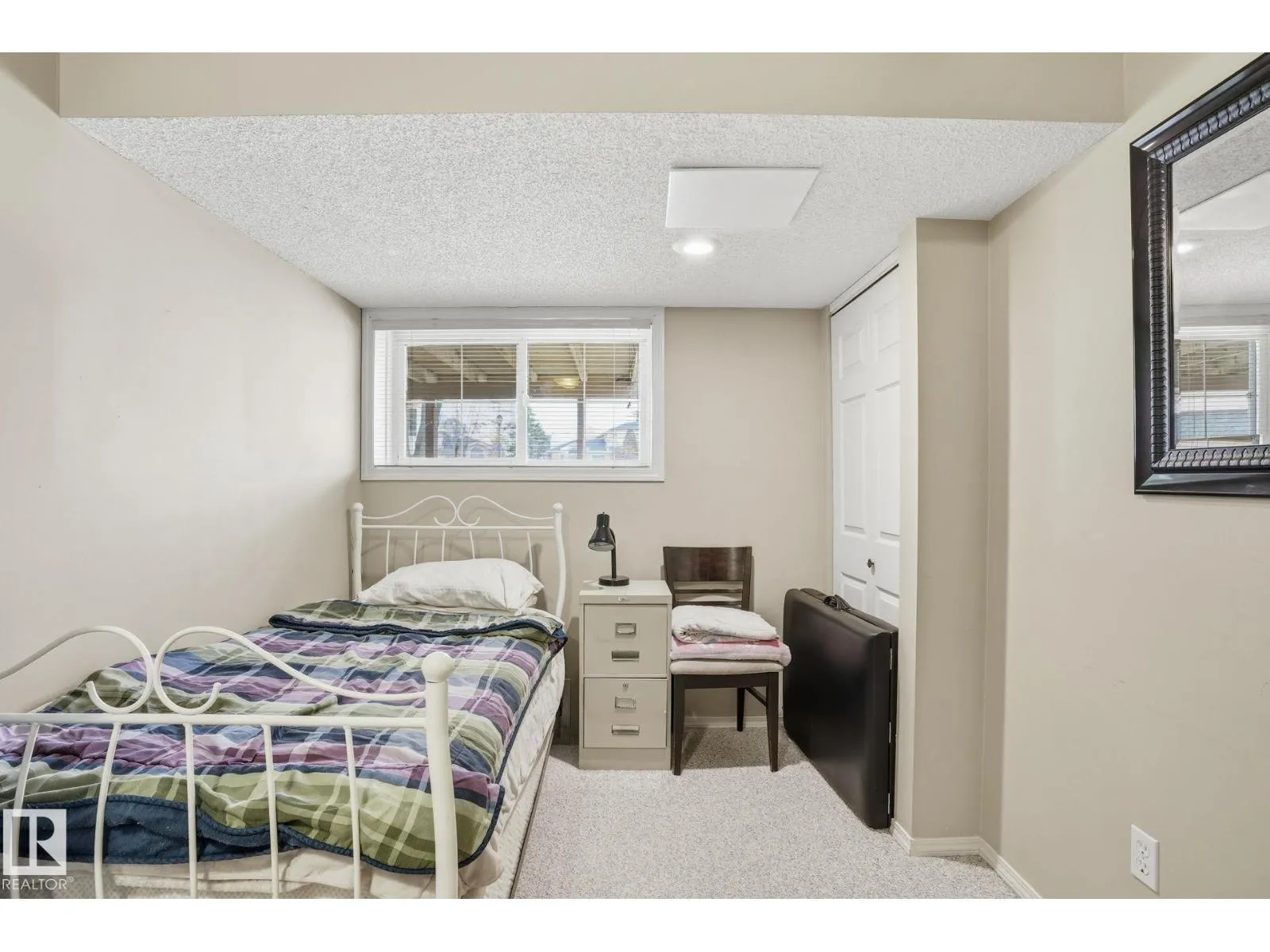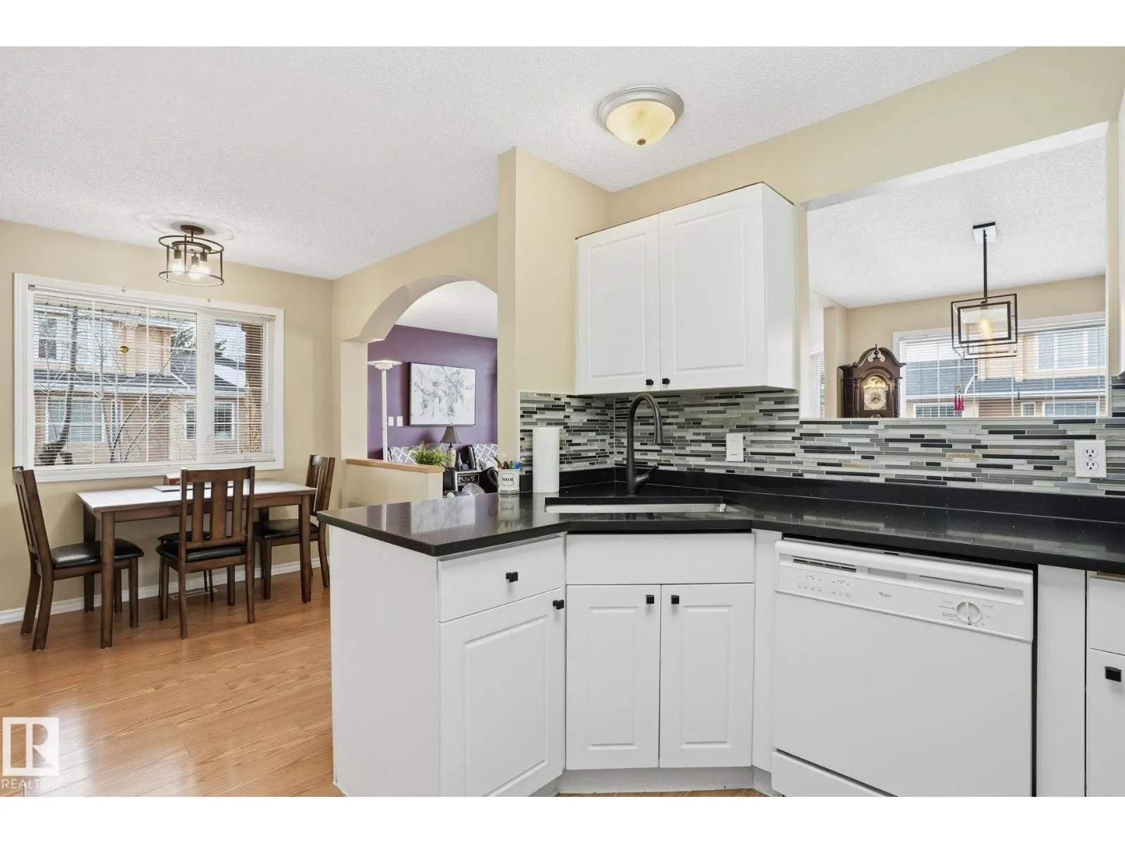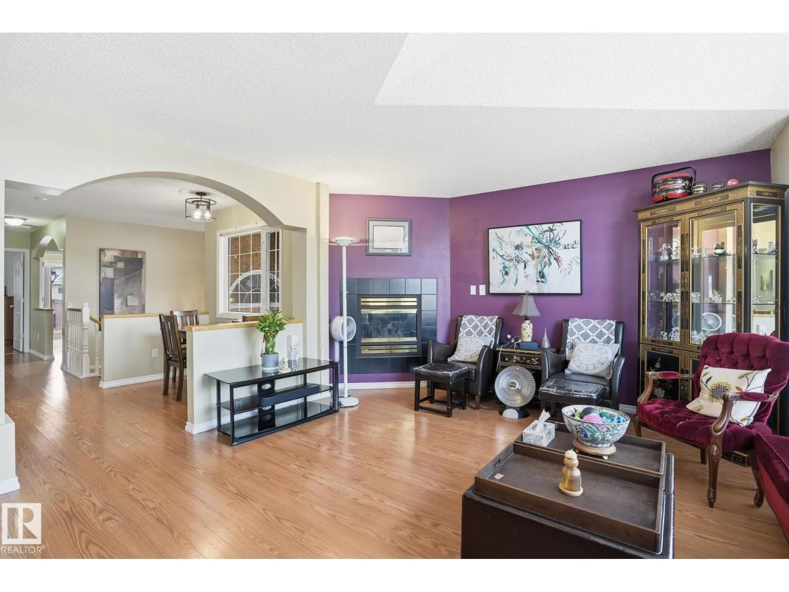 Welcome home to this bright and inviting corner bi-level townhouse in Ravenwood Court, offering over 1,800 SqFt of finished living space. Large windows and a vaulted ceiling in the living room create an airy, open feel while the gas fireplace adds the perfect touch of warmth. With 4 bedrooms and 3 full bathrooms, this home provides plenty of room for families, guests, or a home office. The spacious primary bedroom features a walk-in closet and private 4-piece ensuite, while the second bedroom offers sliding doors leading to a private patio complete with built-in benches and privacy screensâa great space to relax outdoors. The fully finished basement adds even more flexibility with two additional bedrooms, a full bathroom, and laundry area. Recent updates include a new furnace (2021) and microwave hood fan (2023). Located close to schools, transit, major roadways, easy access to the Anthony Henday and a quick ride to the airport, this home offers the perfect balance of space, comfort, and convenience! (id:27476)