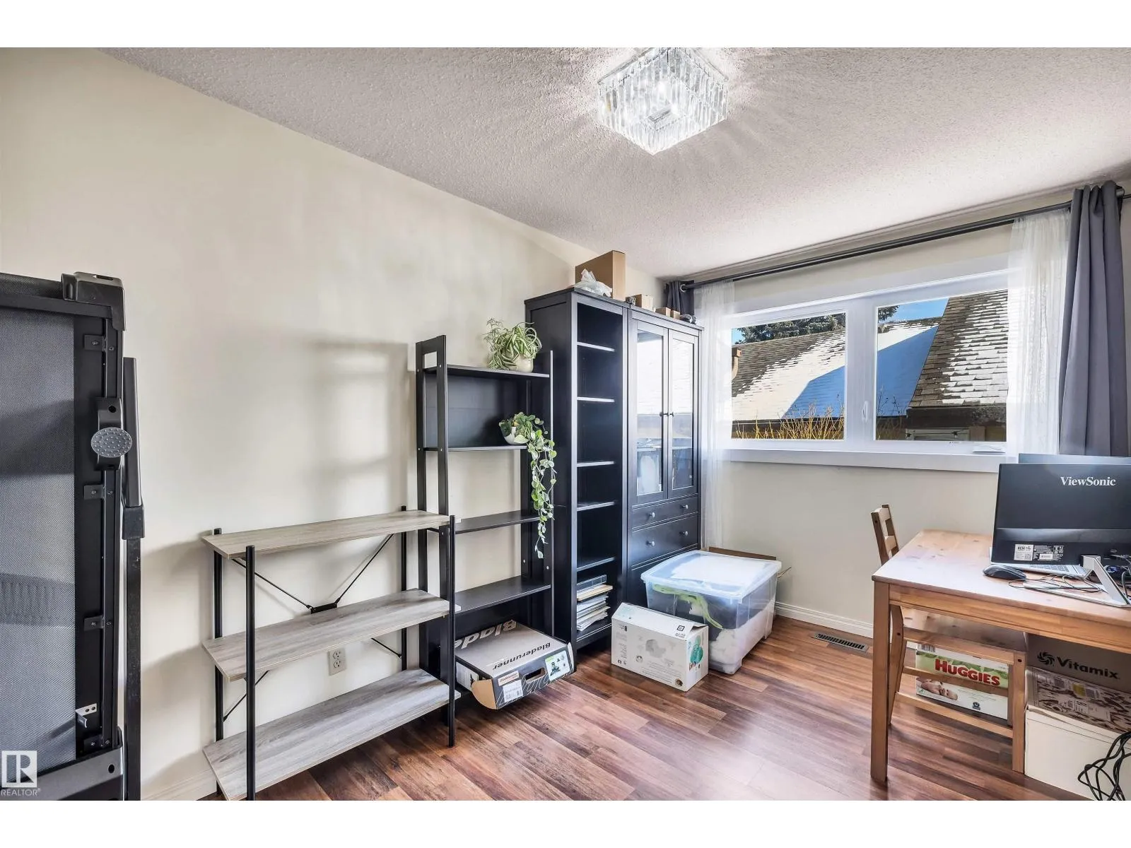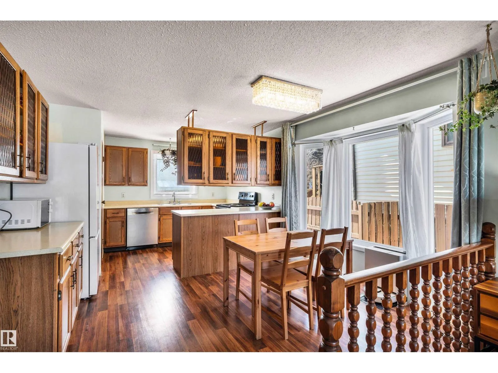 Rare Aldergrove Bungalow, Updated & Move-In Ready! Charming west-end bungalow featuring a spacious south-facing backyard w large storage shed. Open-concept main floor offers 3 generous bedrooms, durable laminate flooring, and two bright bay windows. Finished front-attached double garage boasts 8' overhead door and plenty of storage. Partially finished basement w separate rear entrance, ideal for legal suite development. Loaded with recent upgrades: roof (2023, transferable warranty), high-efficiency furnace & AC (2022, 10-yr parts/labor warranty), high-efficiency water heater (2021, 12-yr warranty), windows (2022), thermostat (2022), front door (2023), Bosch 800 Series dishwasher (2022), fridge (2022), washer (2022), dryer (2024), garage door opener & spring (Dec 2024). Amazing location, just off Henday, and less than 5 minutes drive to Whitemud Dr, multiple schools, many major grocery stores, WEM, and Misericordia Hospital. Close to bus stops and future west valley LRT stations. Great neighbours too! (id:27476)