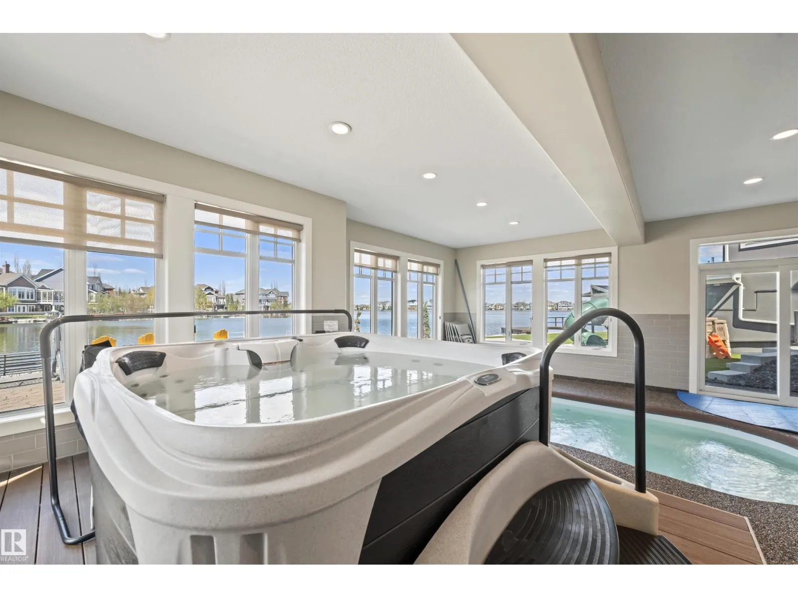 Lakefront, in the city. This is where everyday life starts to feel like something more. Wake up to still water and soft light pouring through soaring windows. Spend your mornings in the sunroom, your afternoons on the lake, and your evenings entertaining in a home designed to bring people together. A kitchen built to perform, a dining space that hosts 16, and living areas framed by views that never get old. Step outside and youâre in your own private resort. Low-maintenance landscaping, multiple gathering spaces, and your own dock create a setting that feels like a getaway without ever leaving home. When the weather turns, the experience doesnât stop. Your private indoor pool, hot tub, and sun-filled retreat carry it through every season. With over 6,000 SF of finished living space, an elevator connecting each level, a triple garage, and solar already in place, this home balances scale, comfort, and efficiency in a way few can. This is more than a home. Itâs a shift in how life feels. (id:27476)