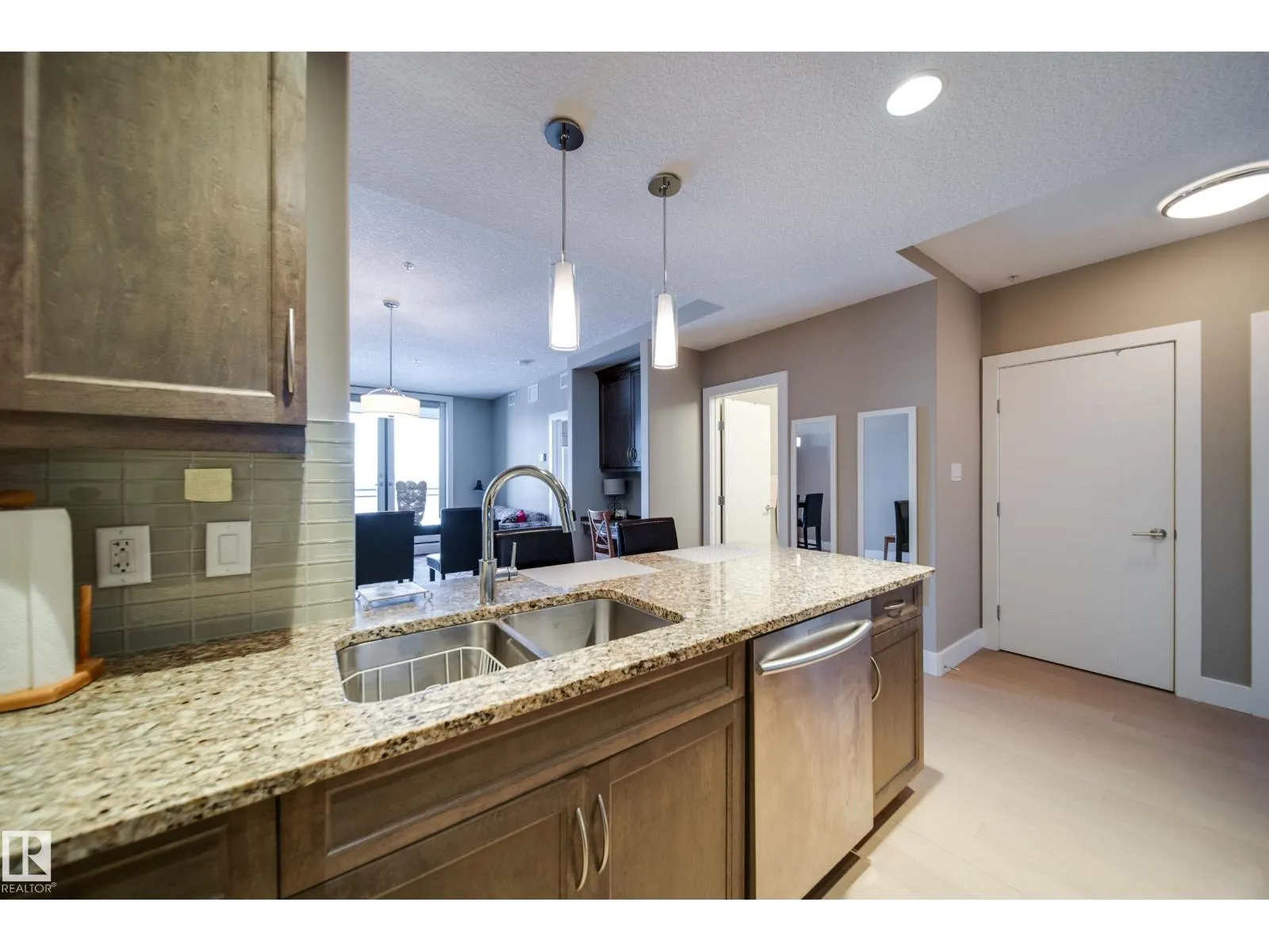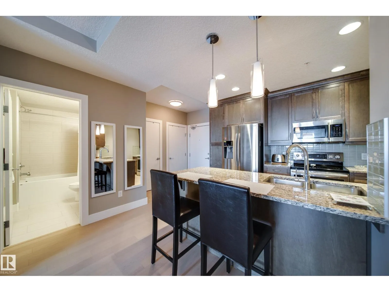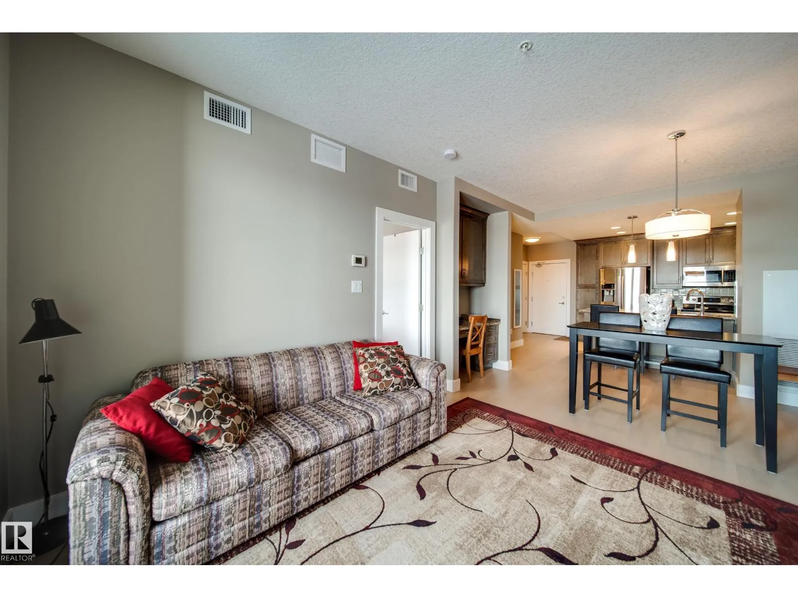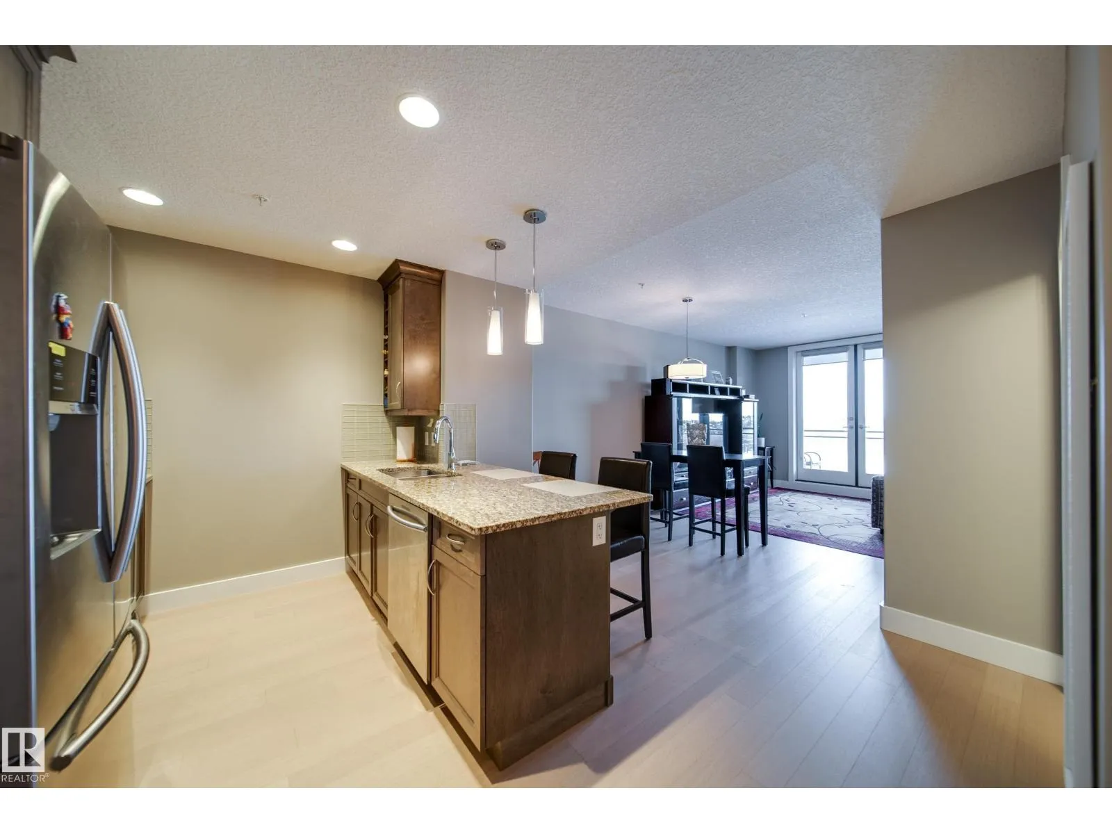 1 BED, 1 BATH, 1 UNDERGROUND PARKING STALL, 5TH FLOOR LOCATION IN THIS POPULAR AND STYLISH BUILDING - E'SCAPES! This unit has barely been lived in and can be purchased with all the furniture included. What's the best part of this condo you ask, how about the concrete and steel construction!? You will love the well laid out space this one bed condo offers. The kitchen is contemporary and features s.s. appliances, granite counters and has a breakfast bar for quick meals. This open concept living space also has a dining nook, tech desk, in suite laundry with storage and a living room with views looking NorthEast. The bedroom has the perfect amount of space and a walk in closet. The building offers so much including: gym, social room, conference room and two roof top patios. Pets allowed with board approval. This is a better option then renting and is move in ready! (id:27476)