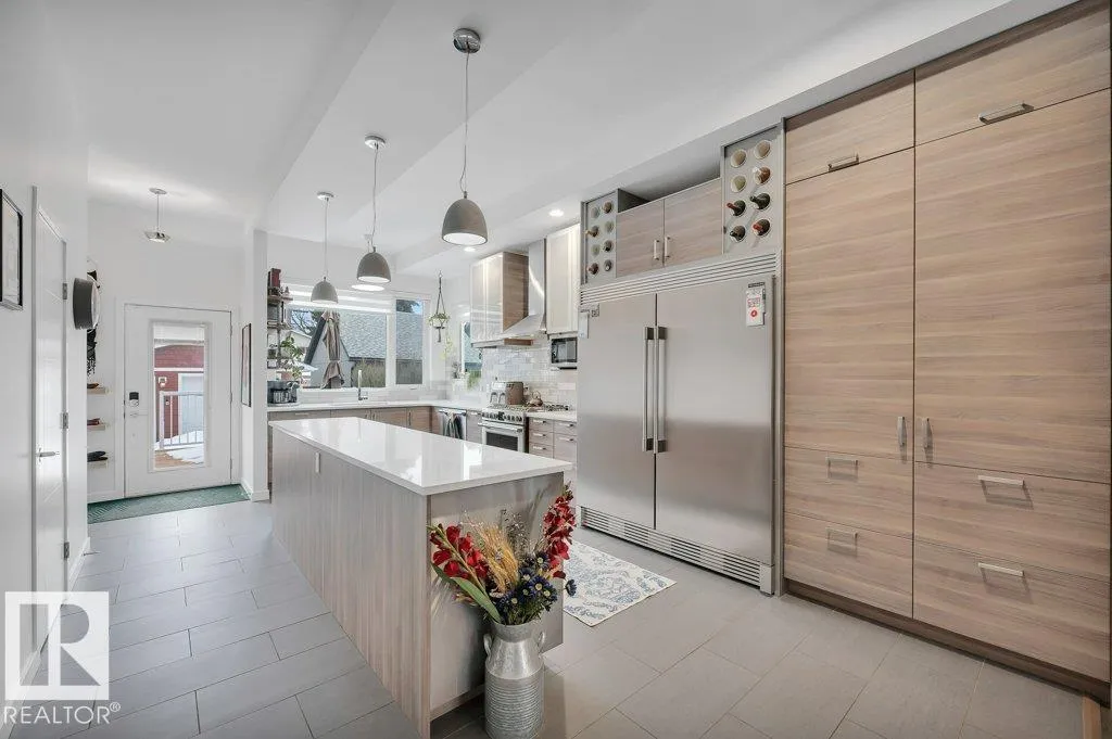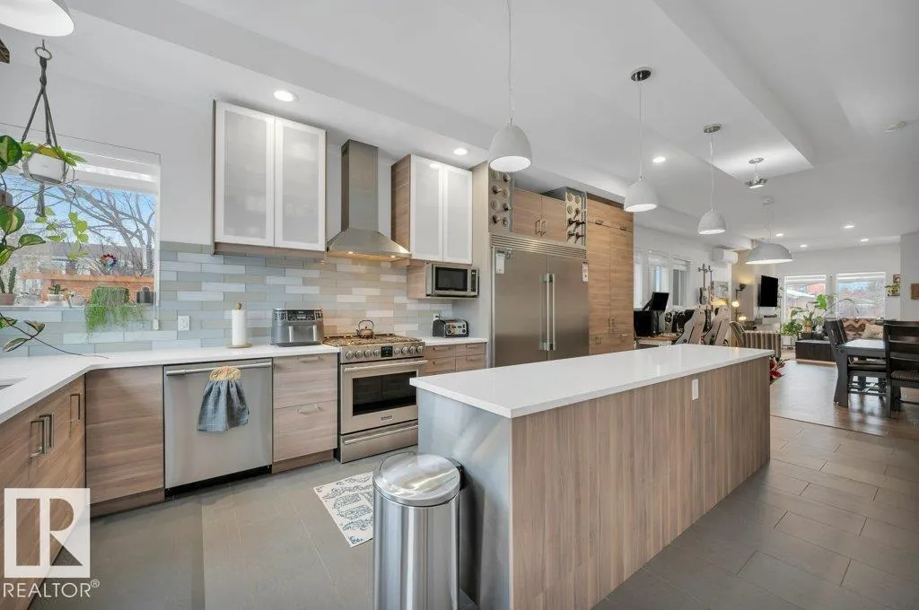 Welcome to this beautiful 5-bedroom, 3.5-bathroom home with a legal basement suite in the desirable community of Westmount. Ideally located just steps from cafés, restaurants, and amenities, with quick access to Downtown, this property offers style, comfort, and income potential. A charming covered front veranda welcomes you inside to a main floor featuring 10 ft ceilings, engineered hardwood flooring, and a cozy gas fireplace. The chef-inspired kitchen includes a side-by-side fridge/freezer, gas stove, granite countertops, and a large picture window overlooking the backyard. Upstairs offers 3 bedrooms, including a spacious primary retreat with a private balcony and a luxurious 5-piece ensuite with a double-sided fireplace. The fully finished basement features a legal 2-bedroom suite with 9 ft ceilings. Additional highlights include solar panels, triple pane windows, in-floor heating on all three levels, a rear deck, and a double detached garage with pull-through access. (id:27476)