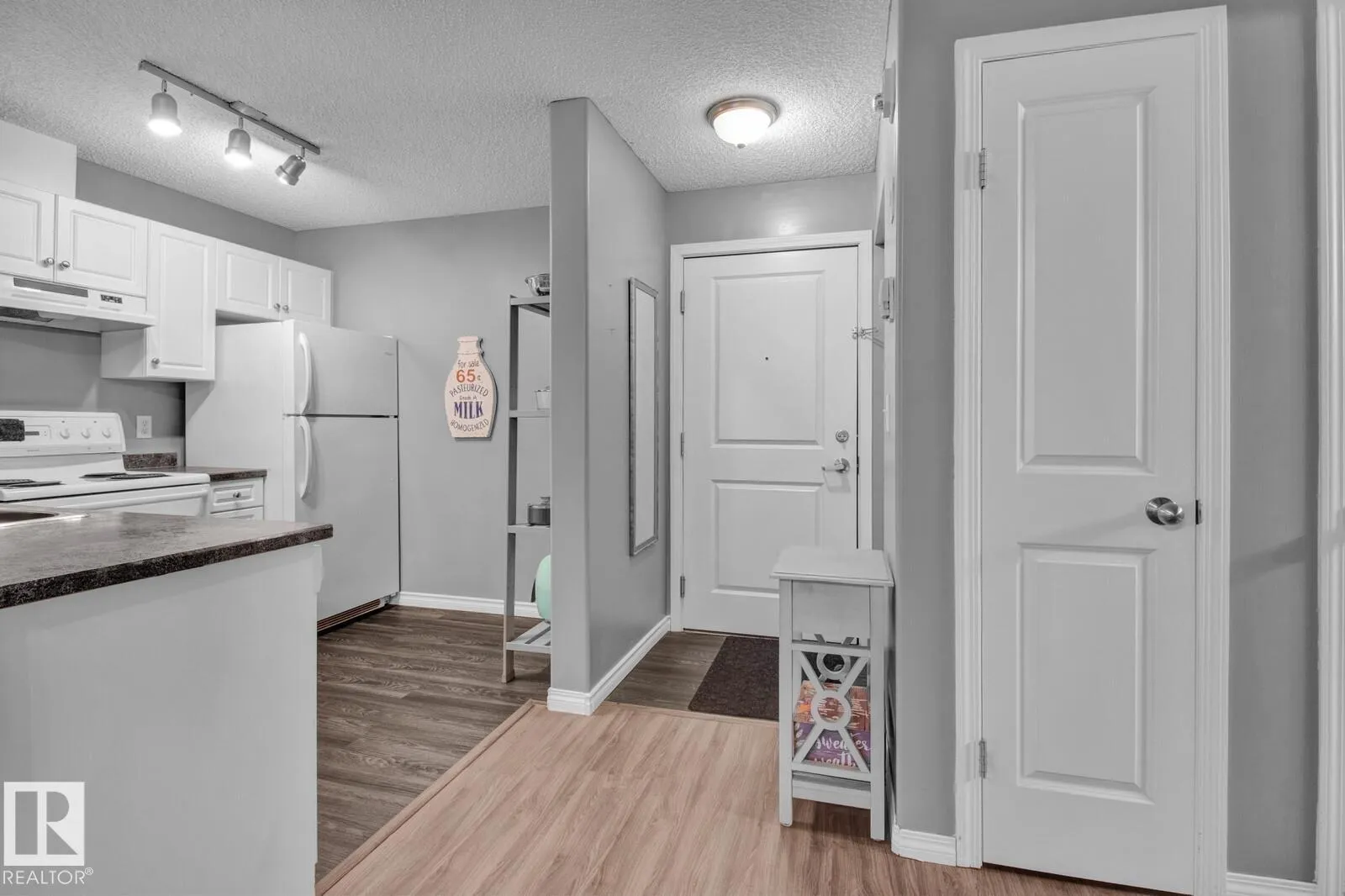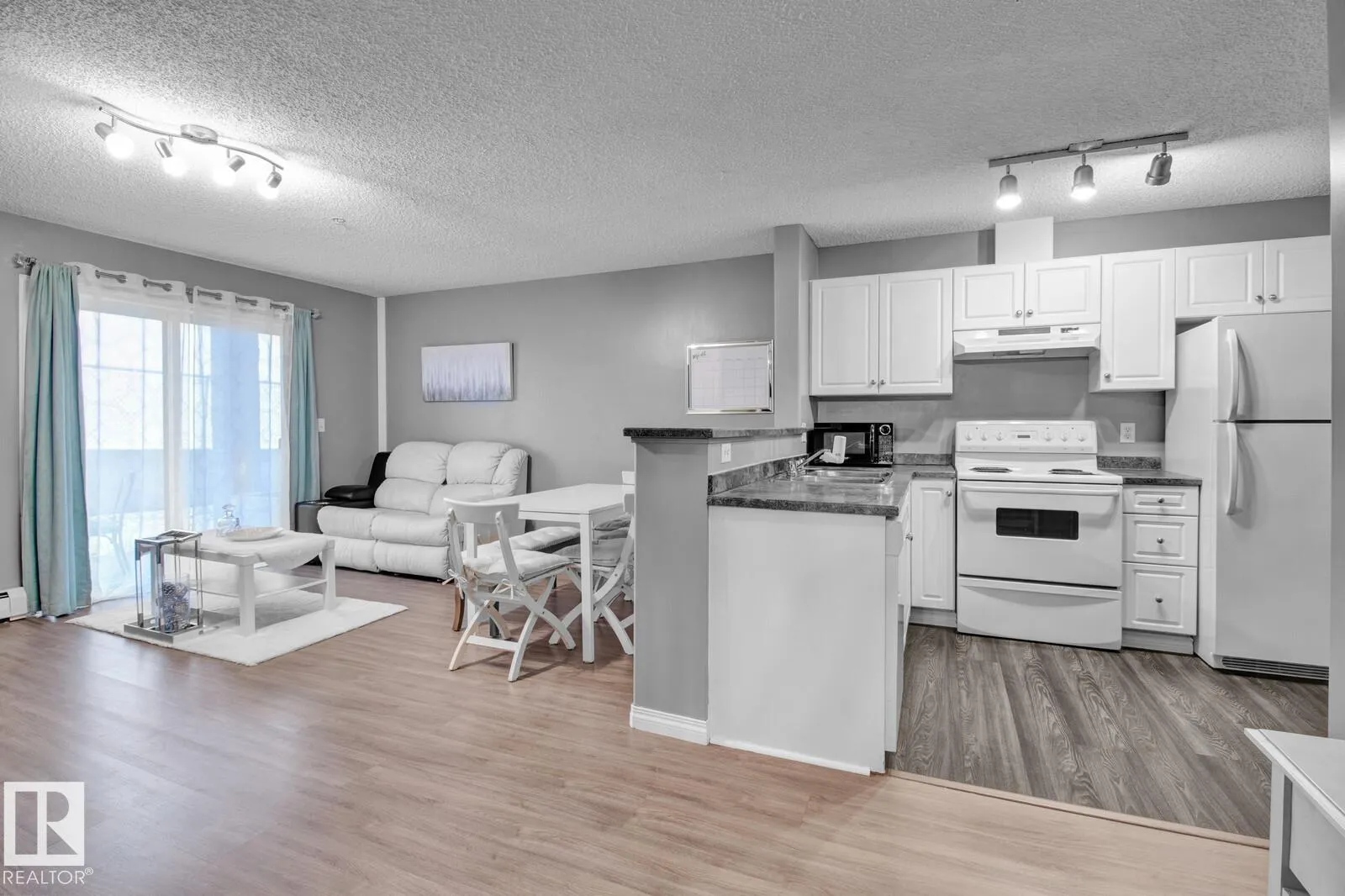 UPGRADED condo unit BACKING A FIELD w/ 2 PARKING SPOTS. Upon entering this unit, you will love how bright it feels with the open concept floor plan & large patio doors along the back. The kitchen features plenty of storage space w/ the modern white cabinetry & a newer countertop. The new laminate flooring & fresh paint throughout gives the space a modern feel. The patio doors along the back open up to your own PRIVATE patio surrounded by green space. Perfect for outdoor walks with your pet! Primary room has double closets. The 4pc bathroom has new flooring as well, and is right beside your IN-SUITE LAUNDRY. The building has been very well maintained and is close to stores, schools & public transportation. Condo Fee of $353.90 includes heat and water. Donât miss out! For more details please visit the REALTORâs® Website. (id:27476)