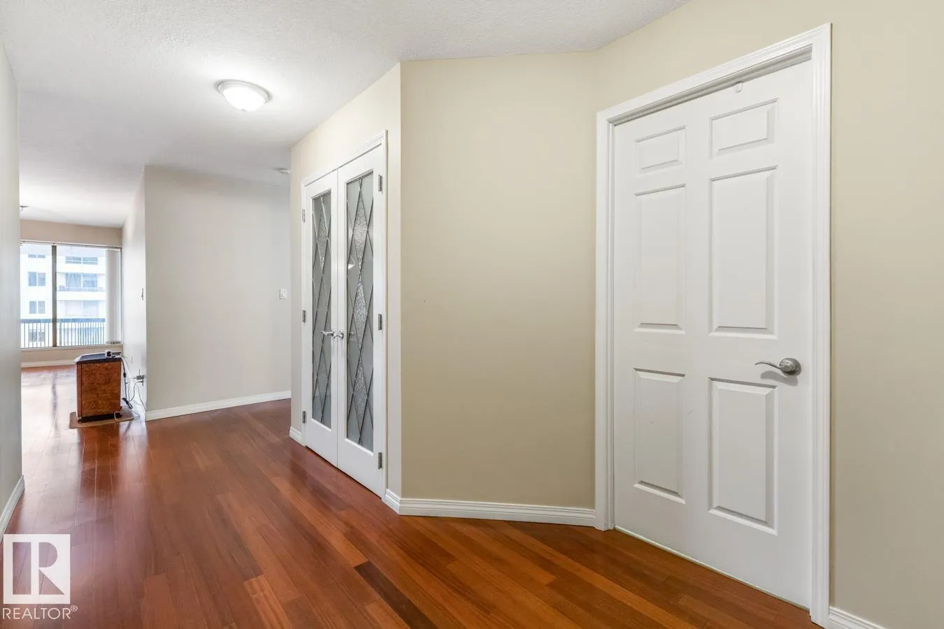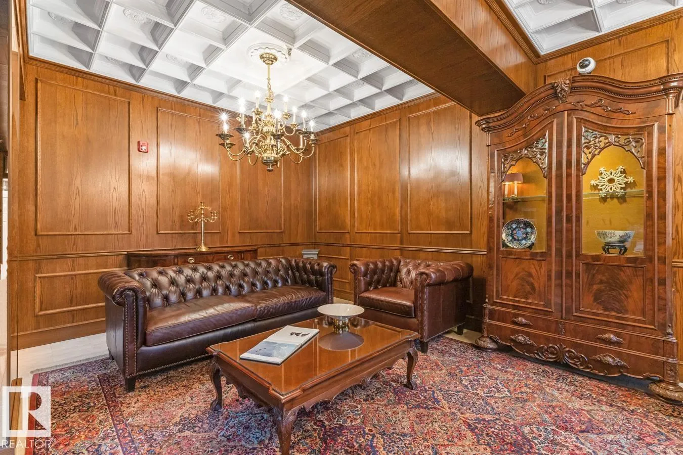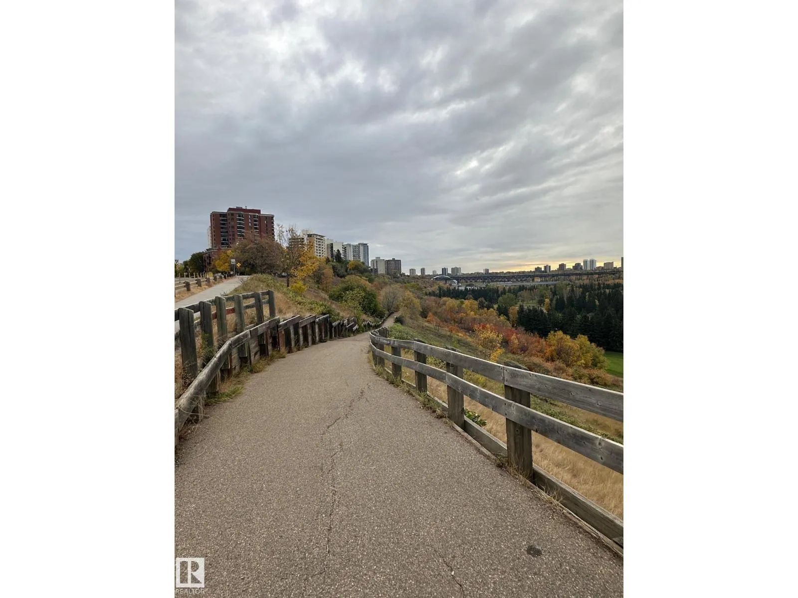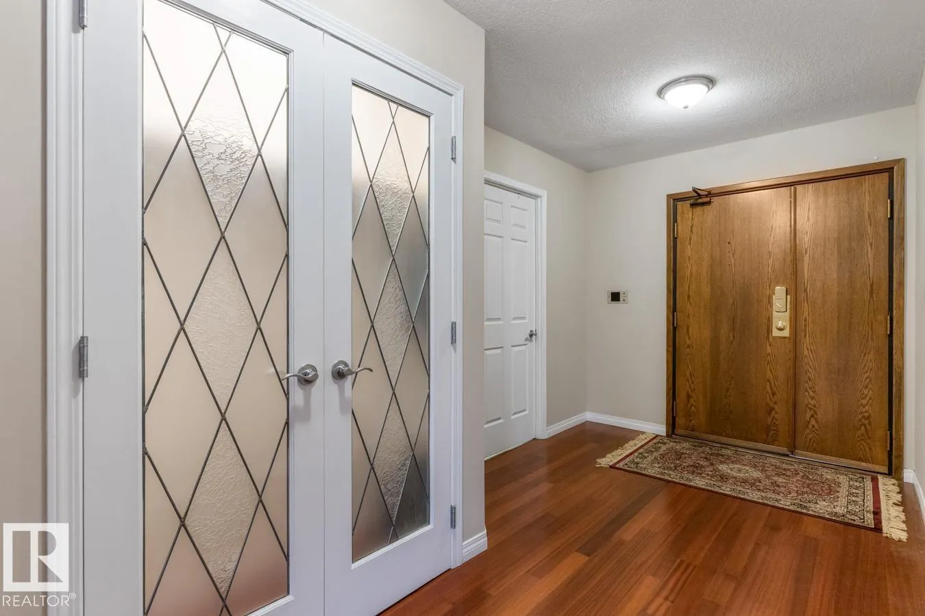 An exceptional opportunity to own a renovated 15th-floor residence in LeMarchand Tower offering over 1,900 sq ft of refined living beside the river valley. Redesigned into an open-concept layout by Anthem Construction, it features Brazilian hardwood floors, a welcoming foyer and a glass French-door coat closet. The sunken living room and formal dining room create an elegant, inviting space for entertaining. The custom kitchen boasts rich cabinetry, granite countertops, premium appliances, an island, breakfast nook, pot lighting and a butler's pantry. The primary bedroom has his-and-hers closets and a spa inspired ensuite. The second bedroom includes dual closets, and the main bathroom is a beautifully finished 4-piece. A generous laundry/storage room with newer washer and dryer and two underground parking stalls complete the home. Building amenities includes a chandeliered lobby, secure video entry and a multi-use social room, guest suite; all steps from the river valley, Victoria Golf Course, and trails. (id:27476)