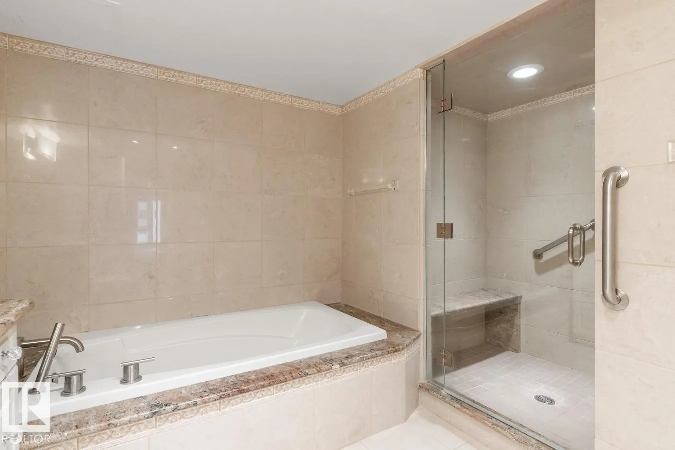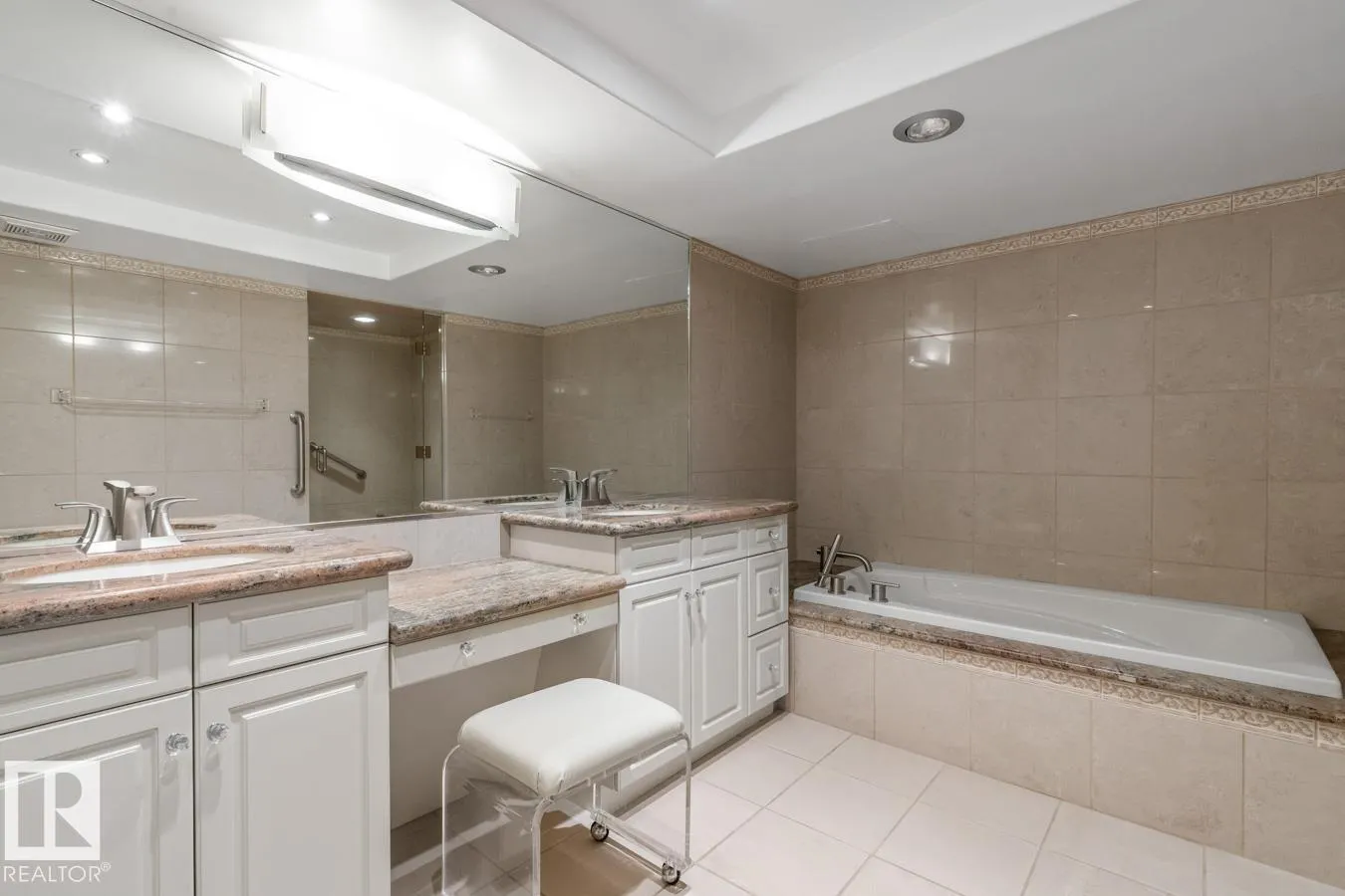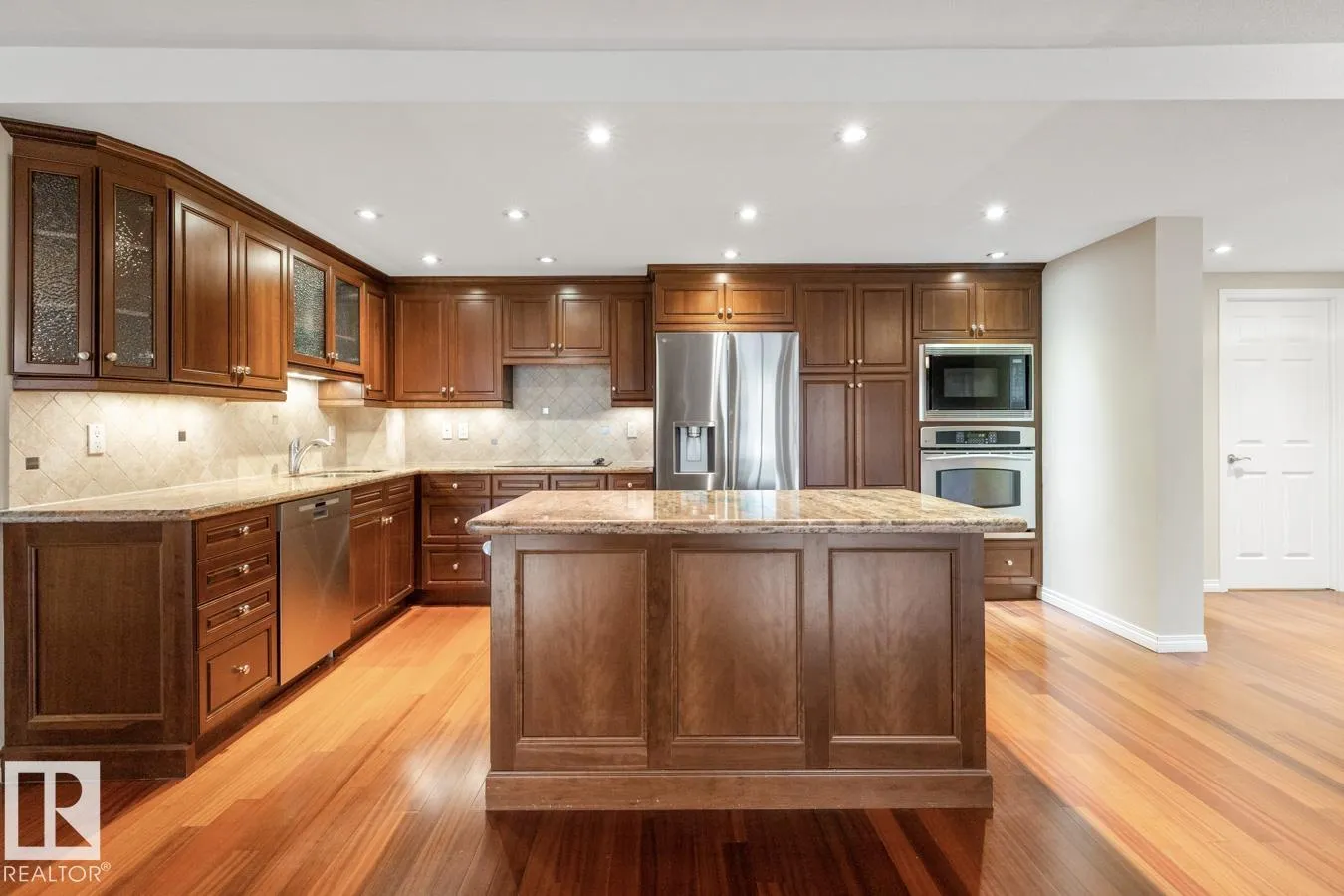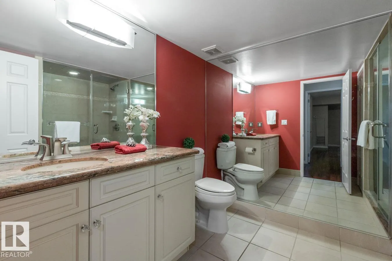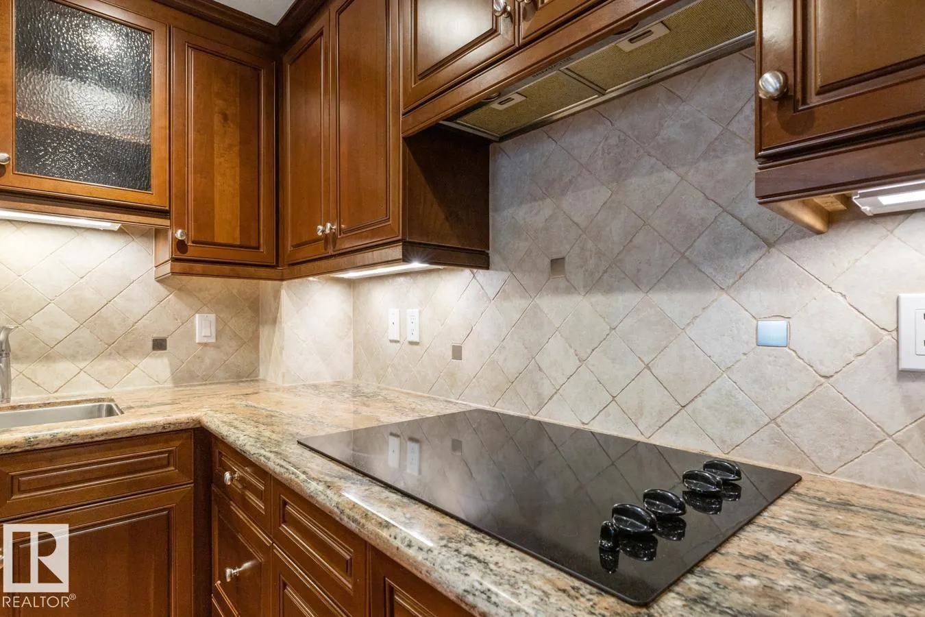 An exceptional opportunity to own a renovated 15th-floor residence in LeMarchand Tower offering over 1,900 sq ft of refined living beside the river valley. Redesigned into an open-concept layout by Anthem Construction, it features Brazilian hardwood floors, a welcoming foyer and a glass French-door coat closet. The sunken living room and formal dining room create an elegant, inviting space for entertaining. The custom kitchen boasts rich cabinetry, granite countertops, premium appliances, an island, breakfast nook, pot lighting and a butler's pantry. The primary bedroom has his-and-hers closets and a spa inspired ensuite. The second bedroom includes dual closets, and the main bathroom is a beautifully finished 4-piece. A generous laundry/storage room with newer washer and dryer and two underground parking stalls complete the home. Building amenities includes a chandeliered lobby, secure video entry and a multi-use social room, guest suite; all steps from the river valley, Victoria Golf Course, and trails. (id:27476)