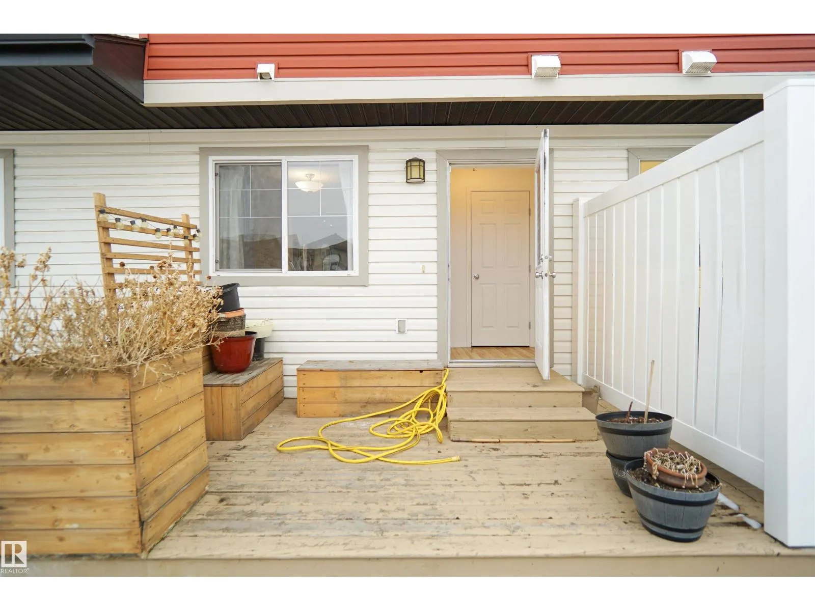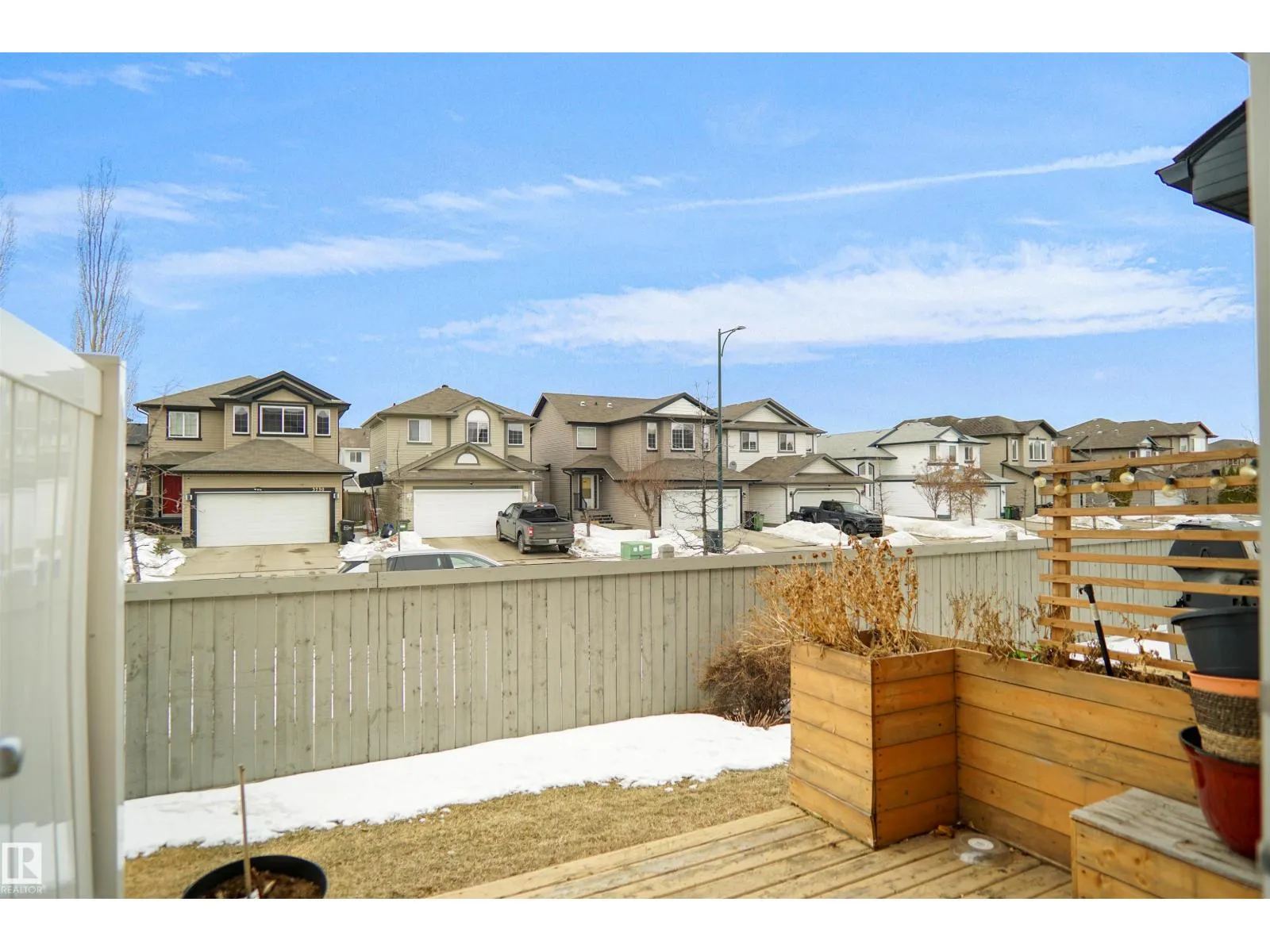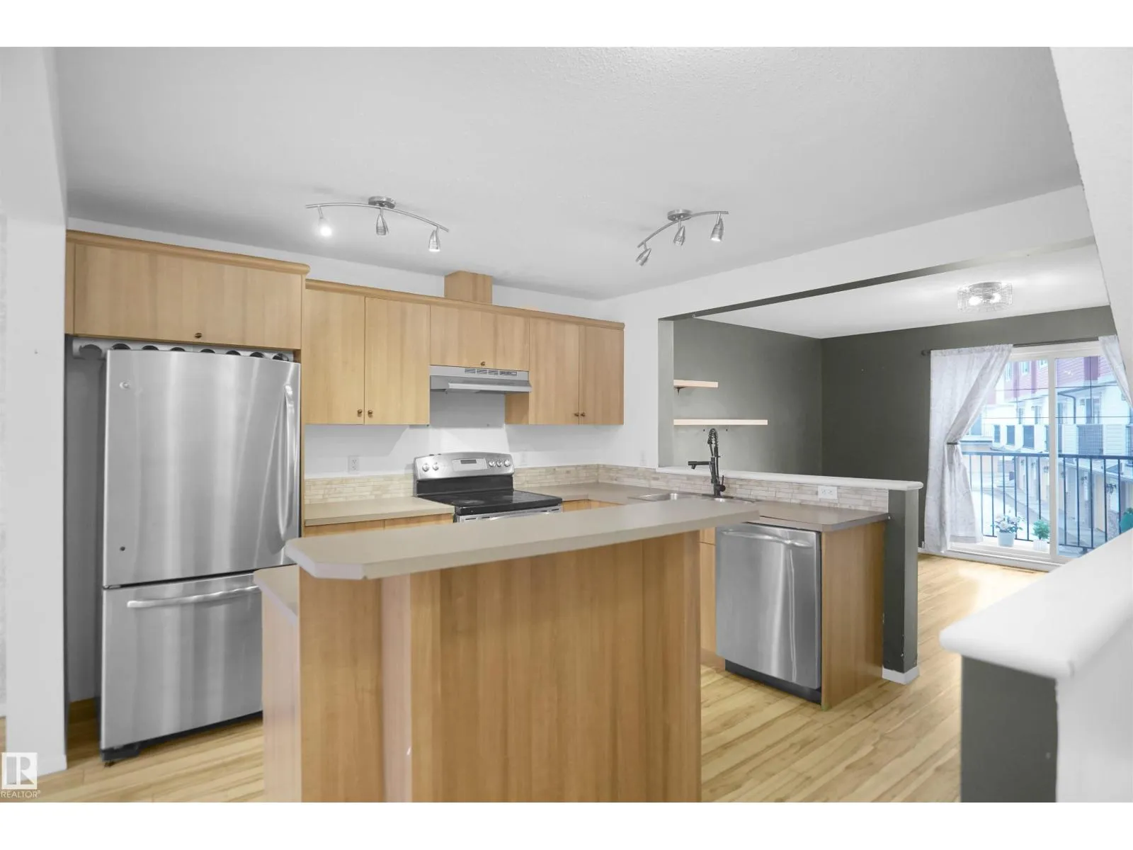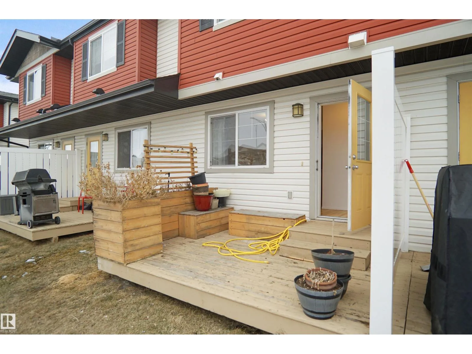 Welcome to this stunning townhouse in Tamarack! This upgraded 2-bedroom unit is sure to impress. The open-concept main floor features a spacious dinette with access to a private deck. The gourmet kitchen offers modern cabinetry, tile backsplash, an island with a raised eating bar, and upgraded stainless steel appliances. The main level is completed with a bright, functional living room with large windows and a convenient two-piece bath. Upstairs, youâll find stacked laundry and two generous bedroomsâeach with its own ensuite. This home also features brand-new luxury vinyl plank flooring on the upper level and new carpet on the stairs. Enjoy the convenience of a double tandem garage and ample visitor parking nearby. Low condo fees and a prime location close to all amenities, including the Meadows Rec Centre, transit, shopping, and easy access to Whitemud Drive and Anthony Henday. Donât miss outâthis opportunity wonât last long! (id:27476)